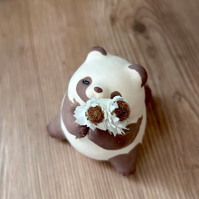 頭にお花を飾れるたぬきの置物です ちょっと抜けてるたぬき 玄関や窓辺、デスク、癒しが欲しい場所にそっと置いてあげてください うるうるな瞳で見つめてくれます 水は入れられません。ドライフラワーをさしてあげてください。 高さ9cmほど ※写真の花は付属しません ※小さなひびや焼きむらが出ることがございますが、焼き物の特性上避けられないものですので、気になる場合はご購入をお控え下さい。 ご注意 ・手捻りでひとつひとつ作っているため、個体差が出ます。 ・1200度以上の高温で焼いているため、焼き色に濃淡の差が出る場合がございます。一部柄の薄い部分があることがございます。 ・塩茹でなどは陶器に負担をかけますのでお控えください。 ・ご到着時の破損以外は補償できかねませんのでご注意ください。