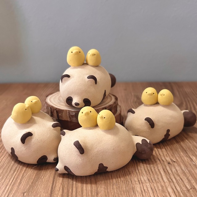 粘土の小さなかたまりから生まれまれた、小さくてころんとしたたぬきの置物です 3匹組なので届いてすぐにたぬだんごを見ることができます たぬきの暮らしのさまざまな瞬間を形にしているため、再販ごとに組み合わせやポージングに差異があります 新しい試みとして、泥ではなく粘土本体の色を調整して成形しました。いつものたぬきとはちがった質感に仕上げております。 手捻り特有の凹凸や塗りむらなど残しております。 サイズ 3cm前後 小さなひびや焼きむらが出ることがございますが、焼き物の特性上避けられないものですので、気になる場合はご購入をお控え下さい。 ご注意 ・手捻りでひとつひとつ作っているため、個体差が出ます。 ・1200度以上の高温で焼いているため、焼き色に濃淡の差が出る場合がございます。一部柄の薄い部分があることがございます。 ・塩茹でなどは陶器に負担をかけますのでお控えください。 ・ご到着時の破損以外は補償できかねませんのでご注意ください。