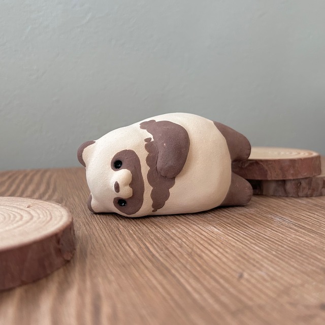 もう寝ることにしたたぬきの置物です。 寝転がったは良いけど眠れない。 だってさっき起きたから。 サイズ 8×5.5cmほど ※小さなひびや焼きむらが出ることがございますが、焼き物の特性上避けられないものですので、気になる場合はご購入をお控え下さい。 ご注意 ・手捻りでひとつひとつ作っているため、個体差が出ます。 ・1200度以上の高温で焼いているため、焼き色に濃淡の差が出る場合がございます。一部柄の薄い部分があることがございます。 ・塩茹でなどは陶器に負担をかけますのでお控えください。 ・ご到着時の破損以外は補償できかねませんのでご注意ください。