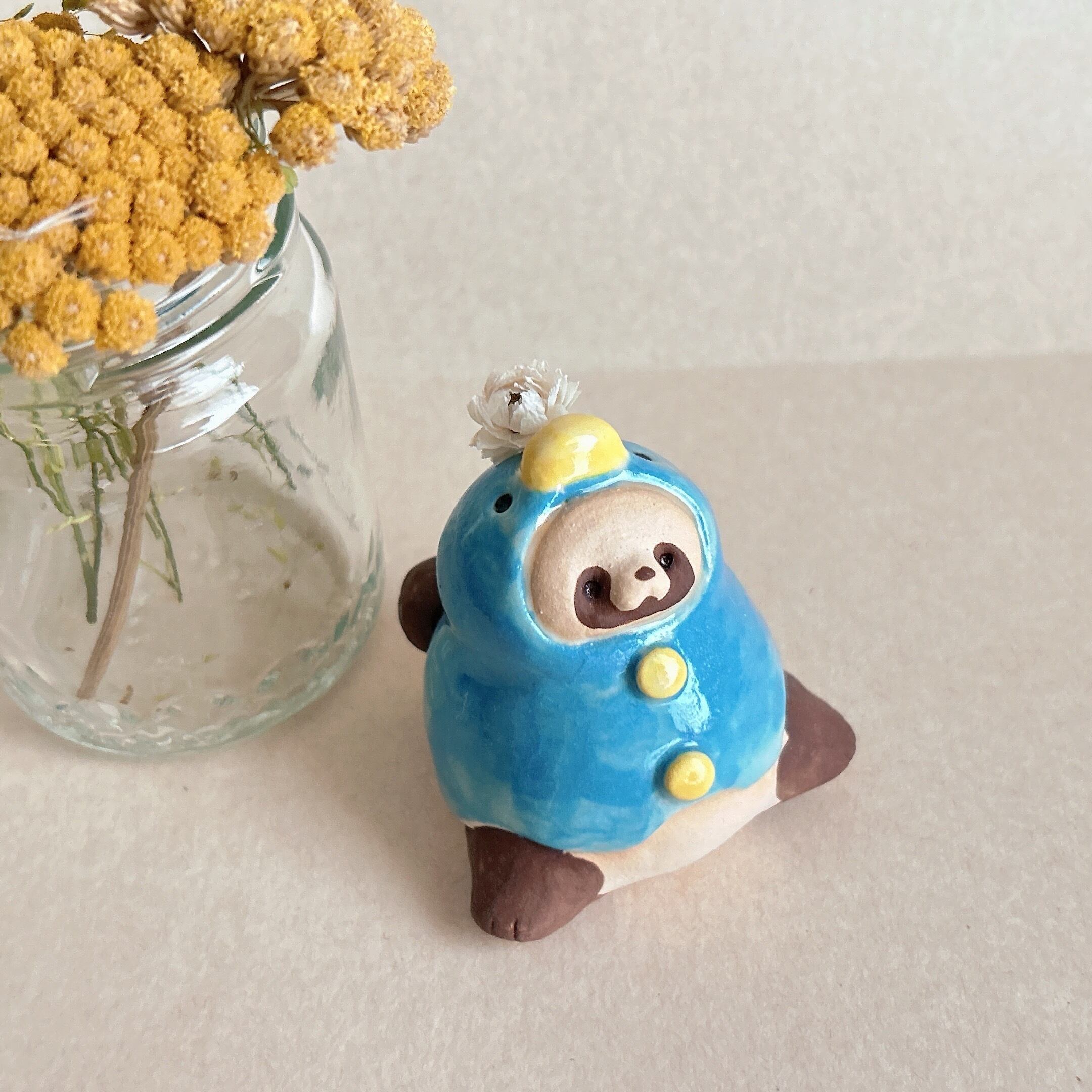 雨の日でも楽しむために選んだのは、夏空のような青い鳥のかっぱ