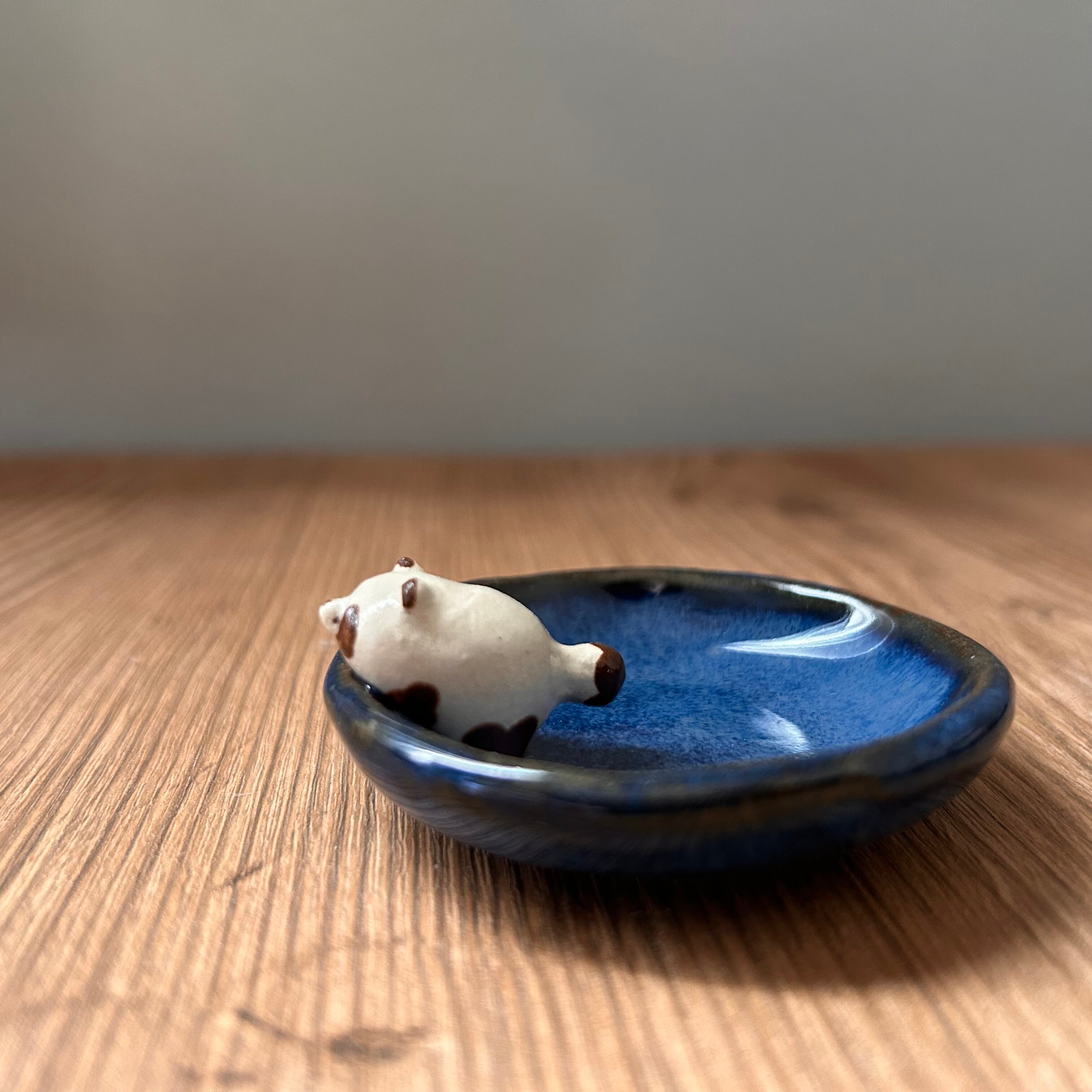 ・青い釉がたぬきにはねてしまっている場合がございます。製作上避けられない部分なのでご理解いただいた上でお迎えいただけますと幸いです。