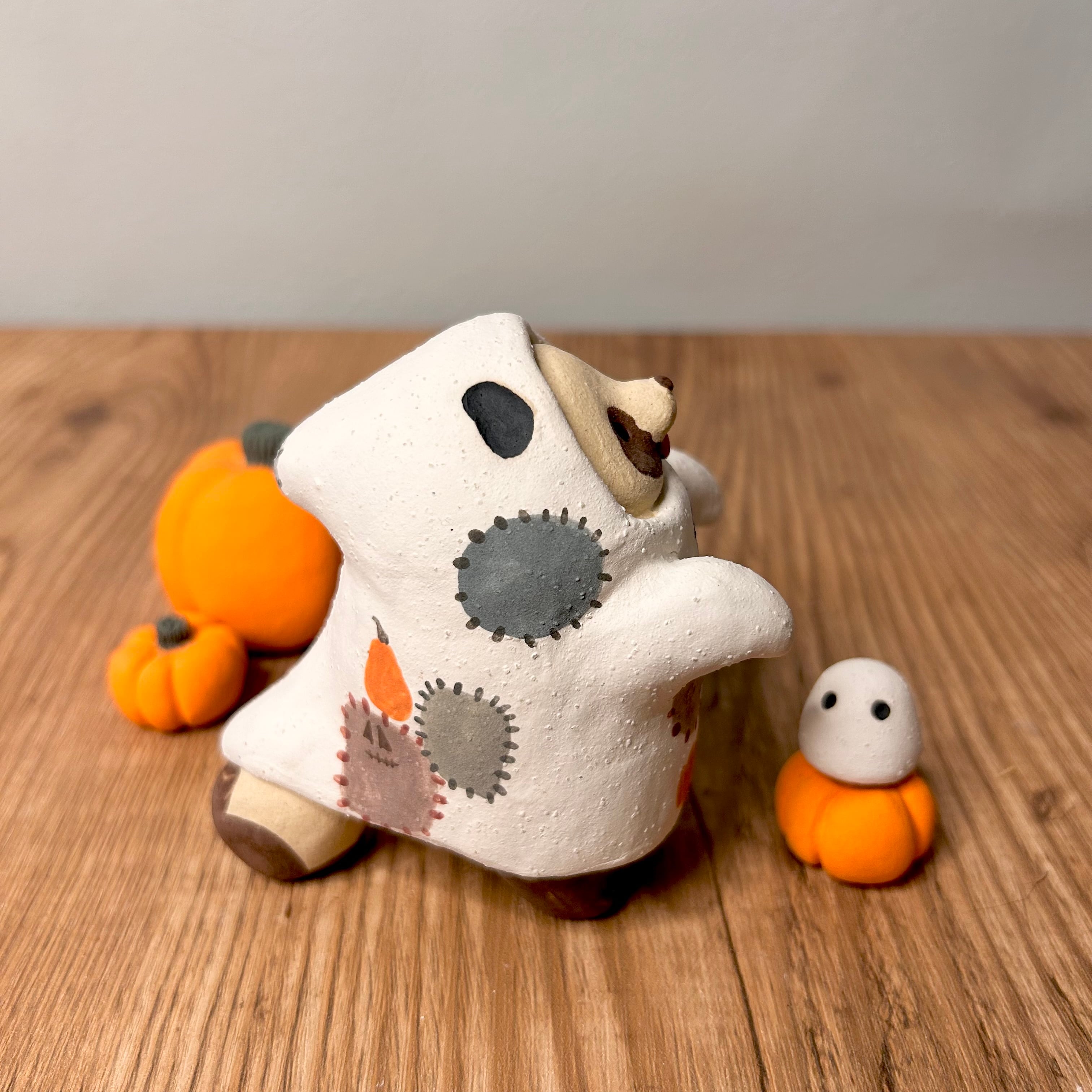 新しい試みとして、泥ではなく粘土本体の色を調整して成形しました。いつものたぬきとはちがった質感に仕上げております。