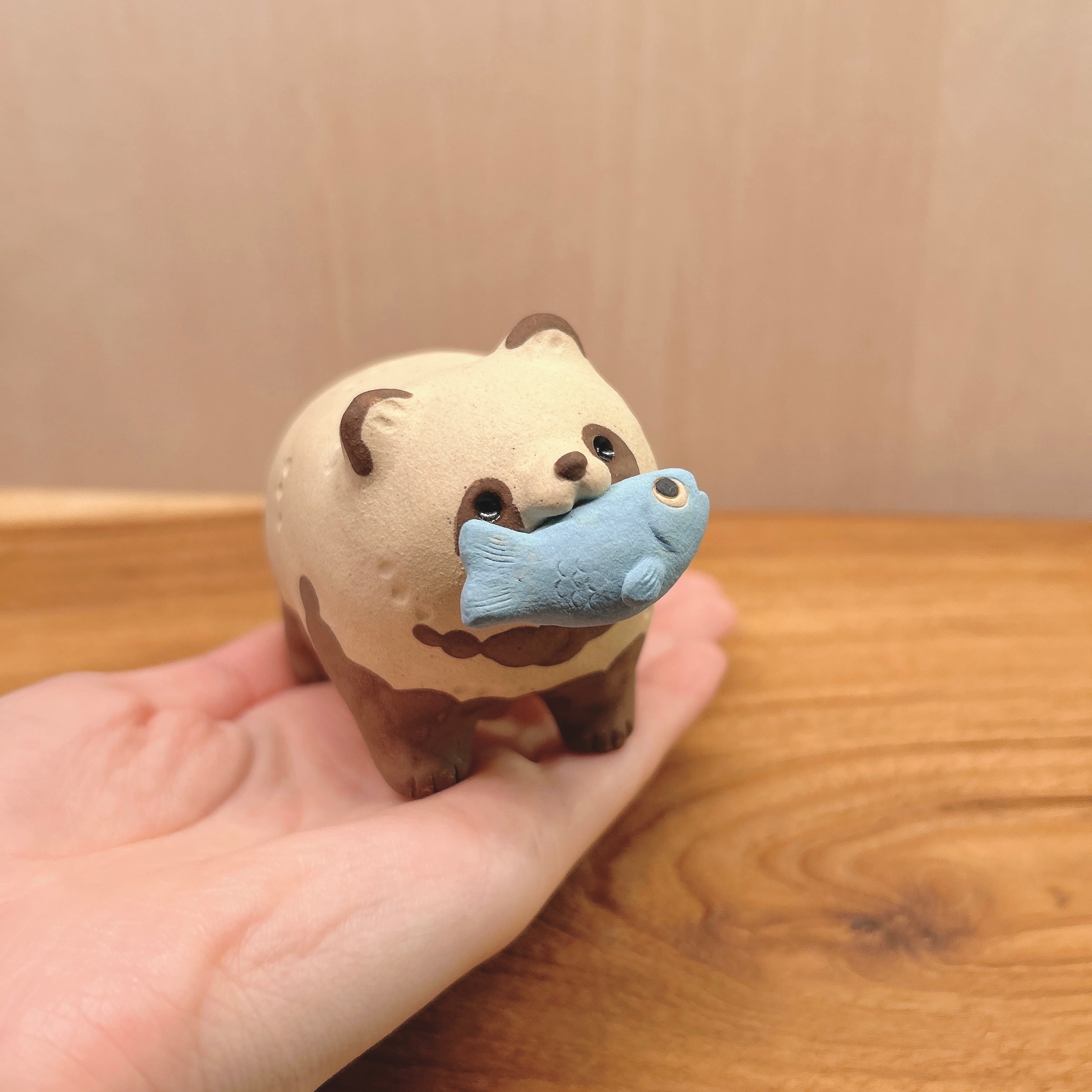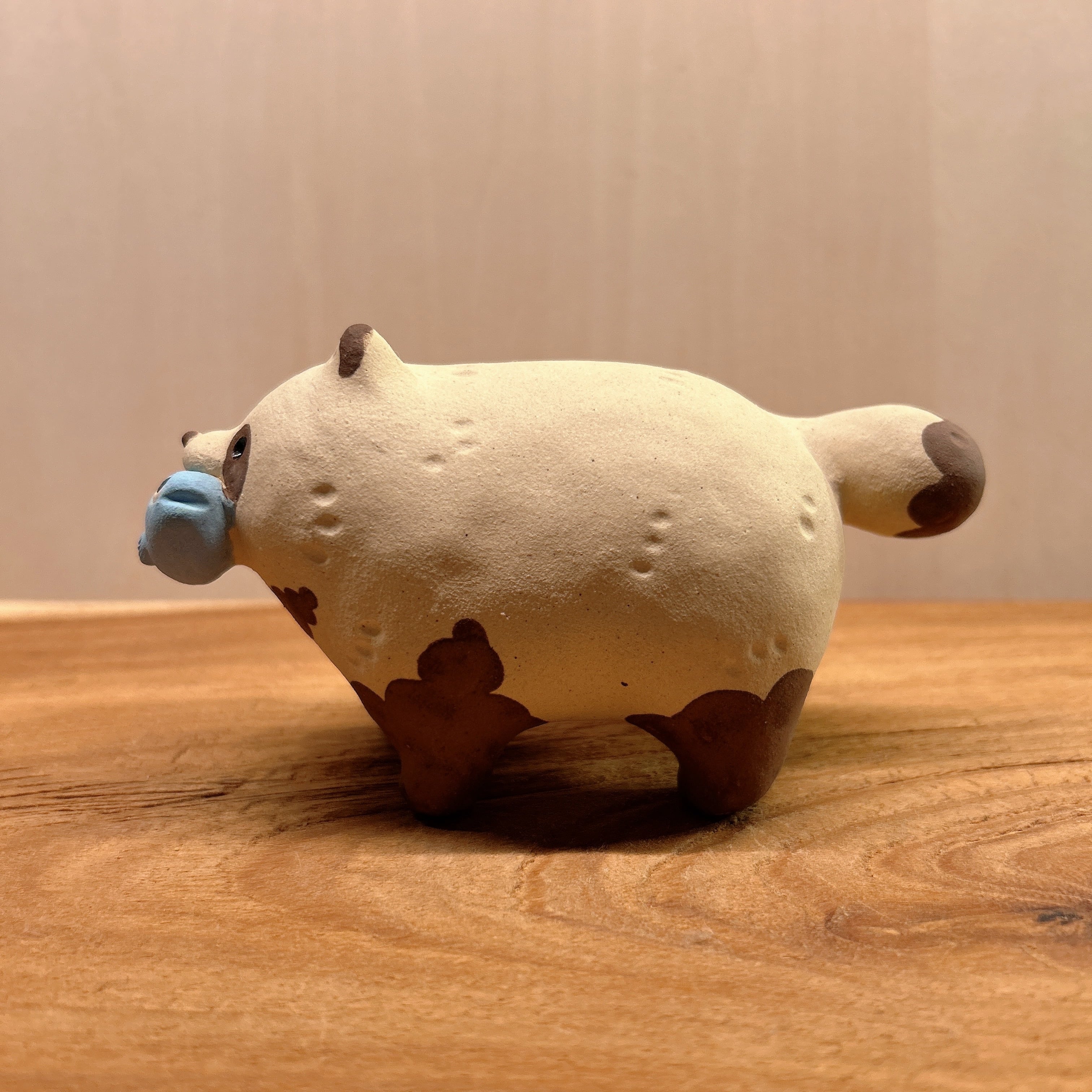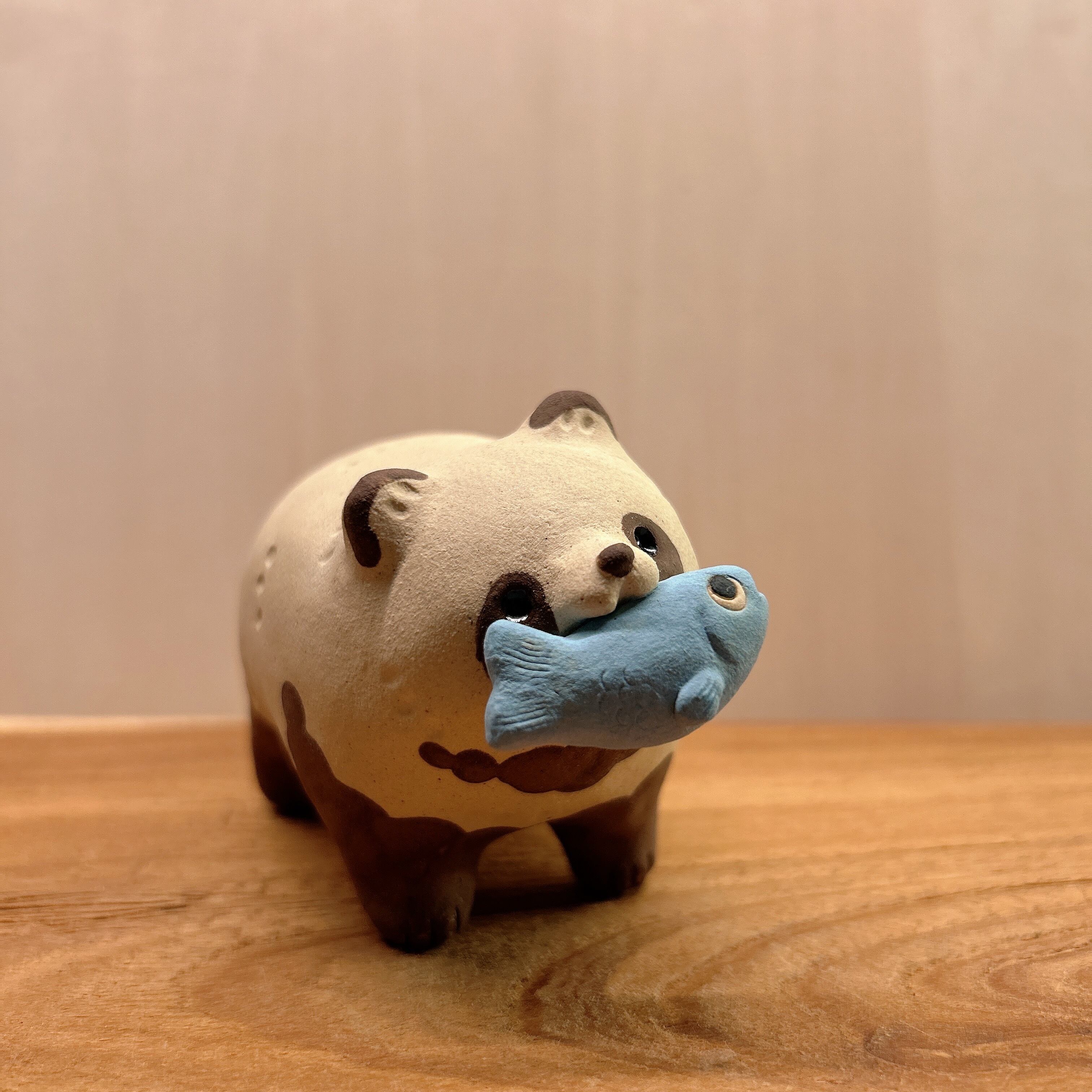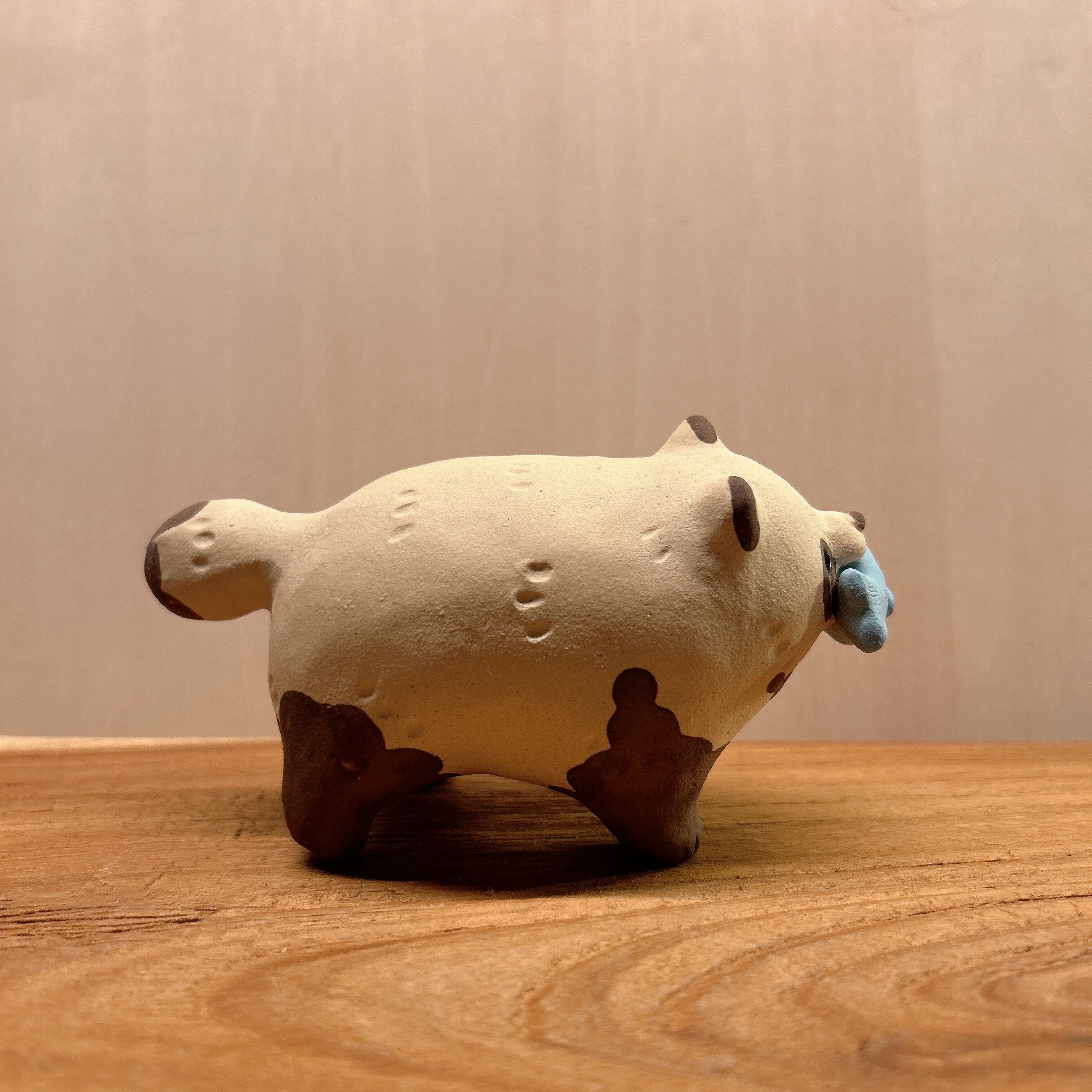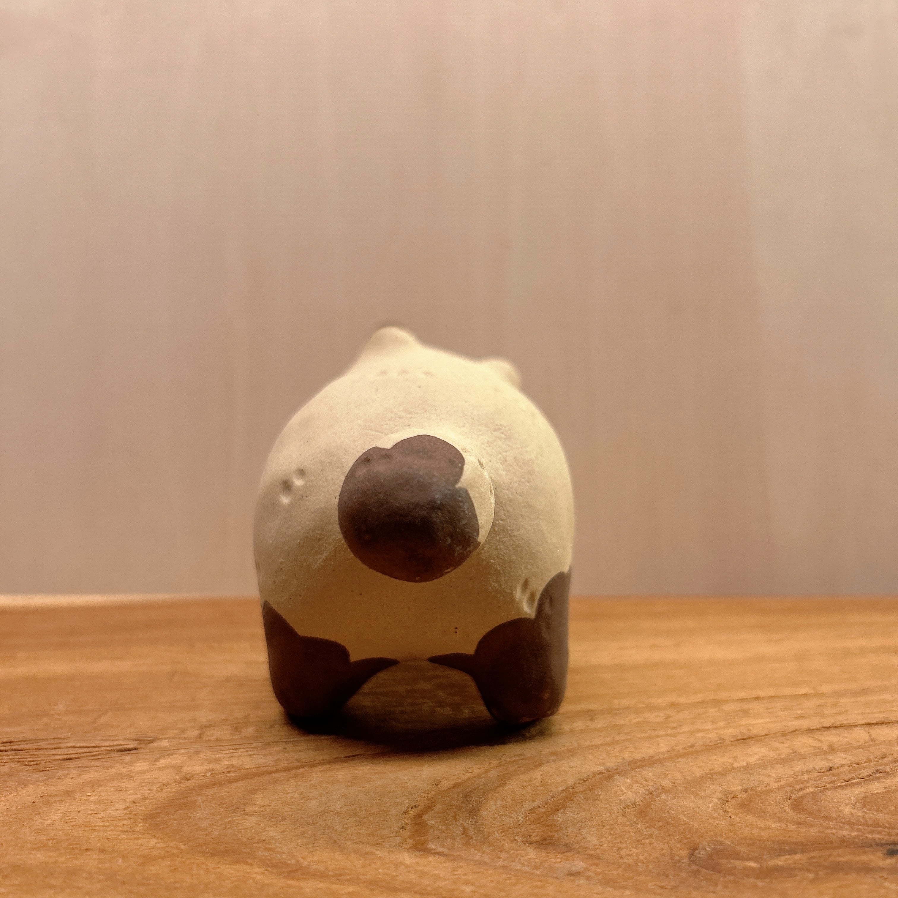 粘土の絶妙な質感とぽってりフォルムが特徴の置物は、どこに置いても可愛さを損ねません。
