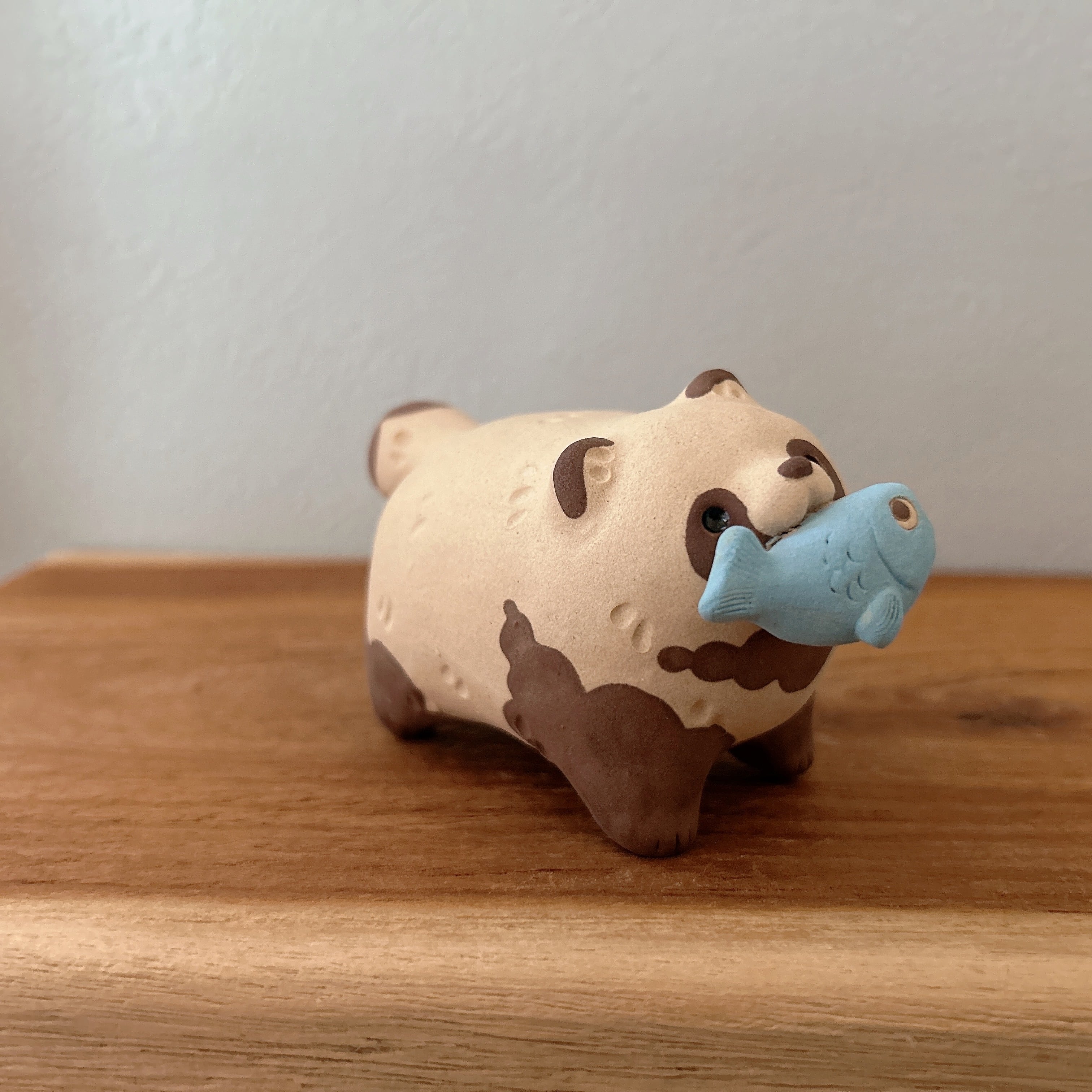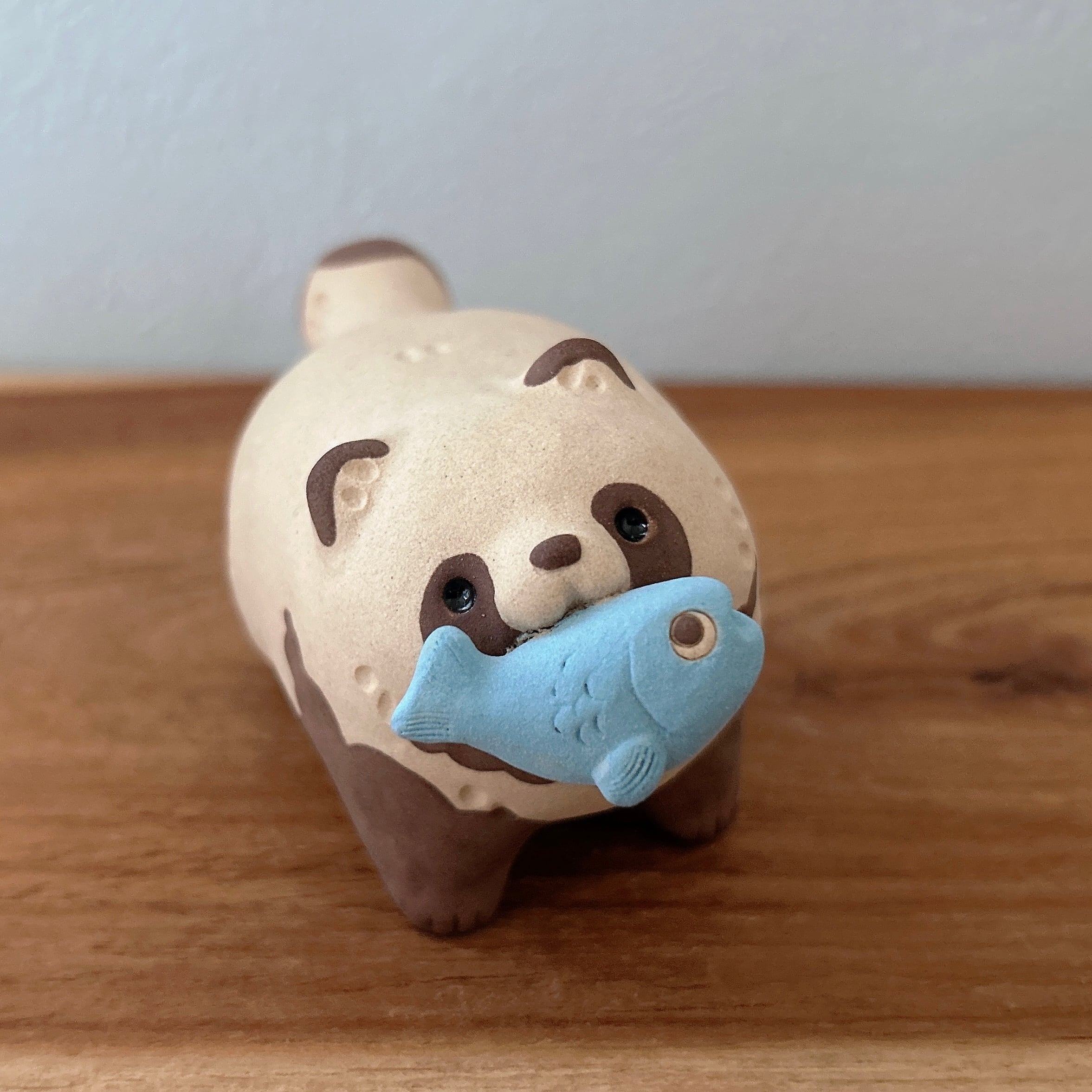 むっちりしたたぬきがお魚をゲットしました。