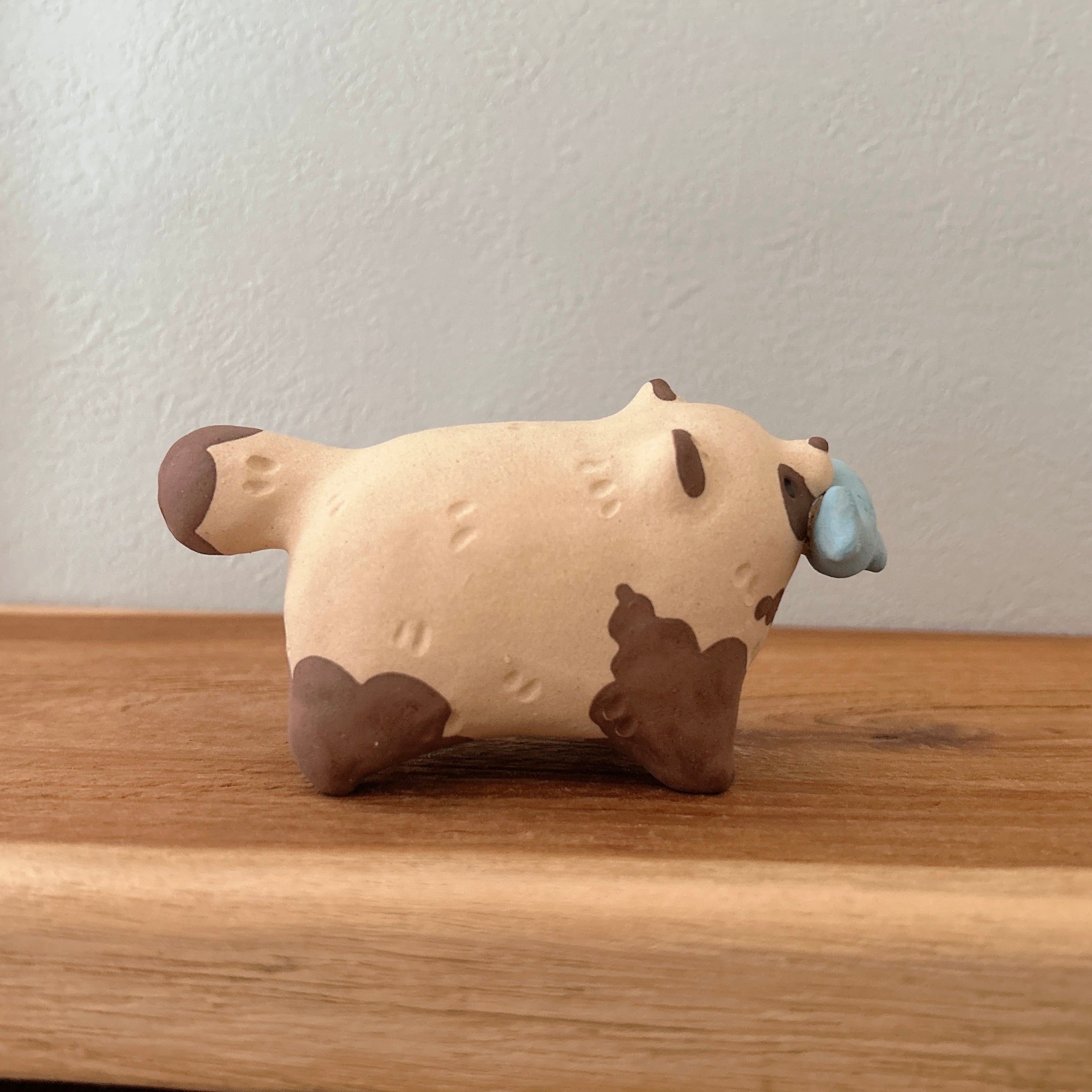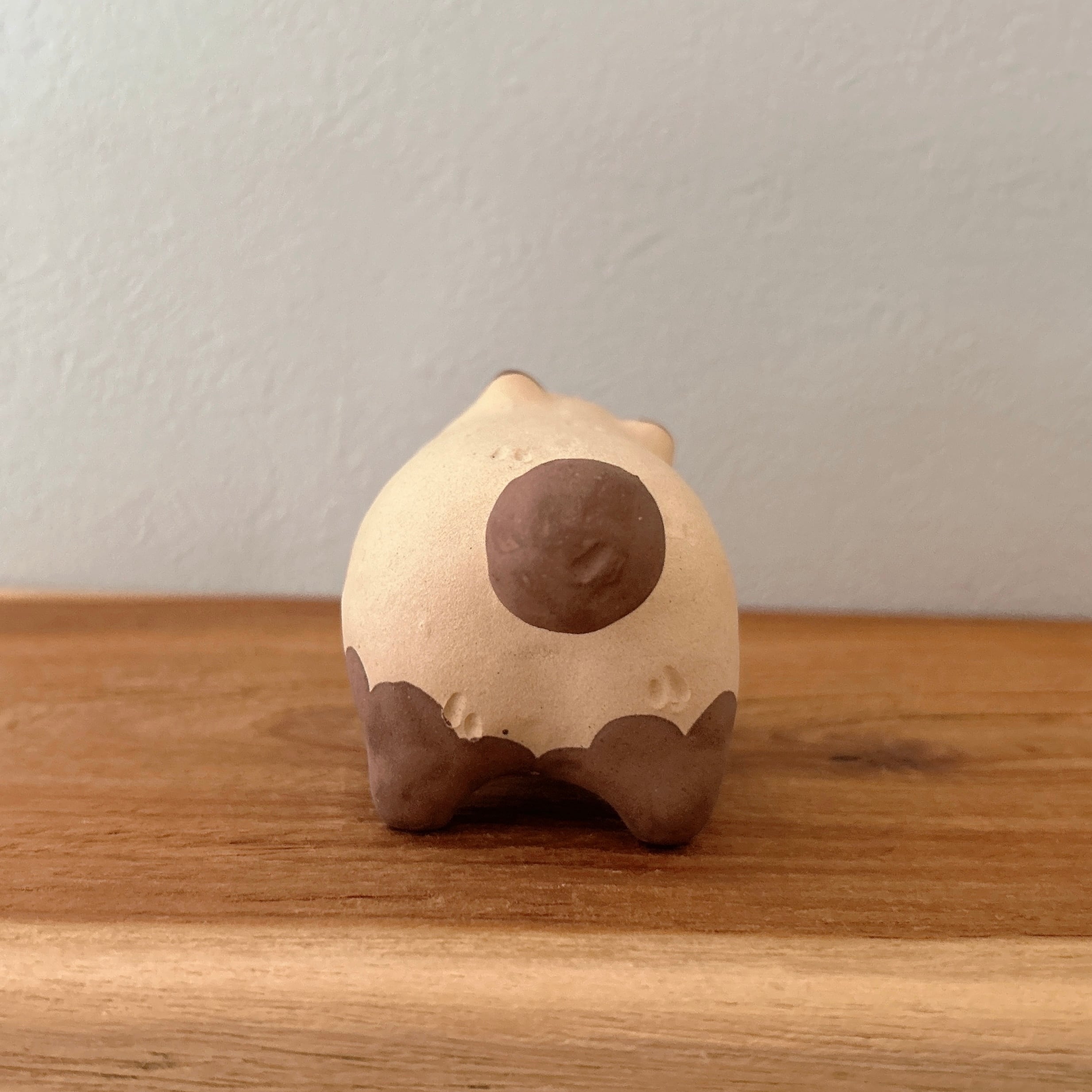 粘土の絶妙な質感とぽってりフォルムが特徴の置物は、どこに置いても可愛さを損ねません。