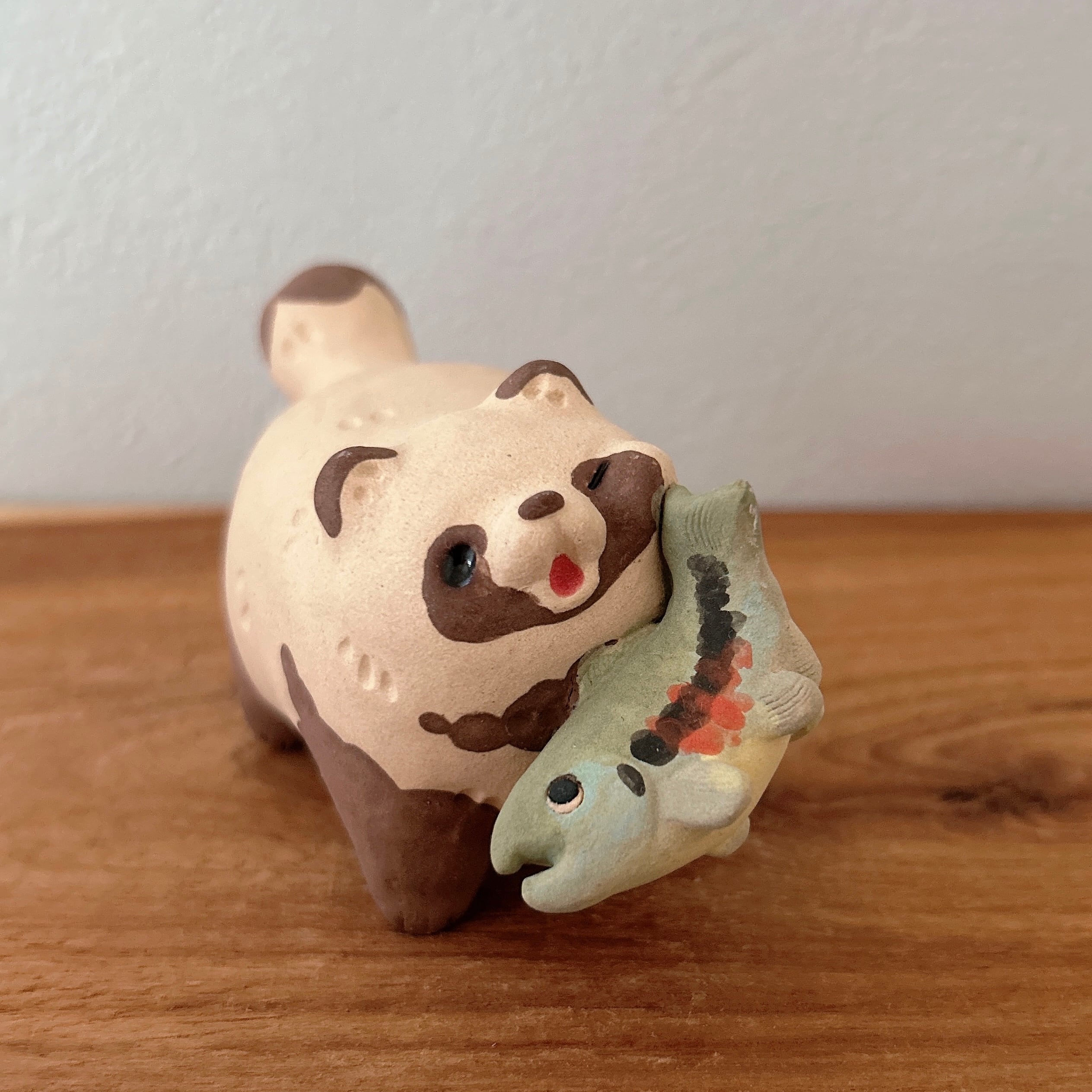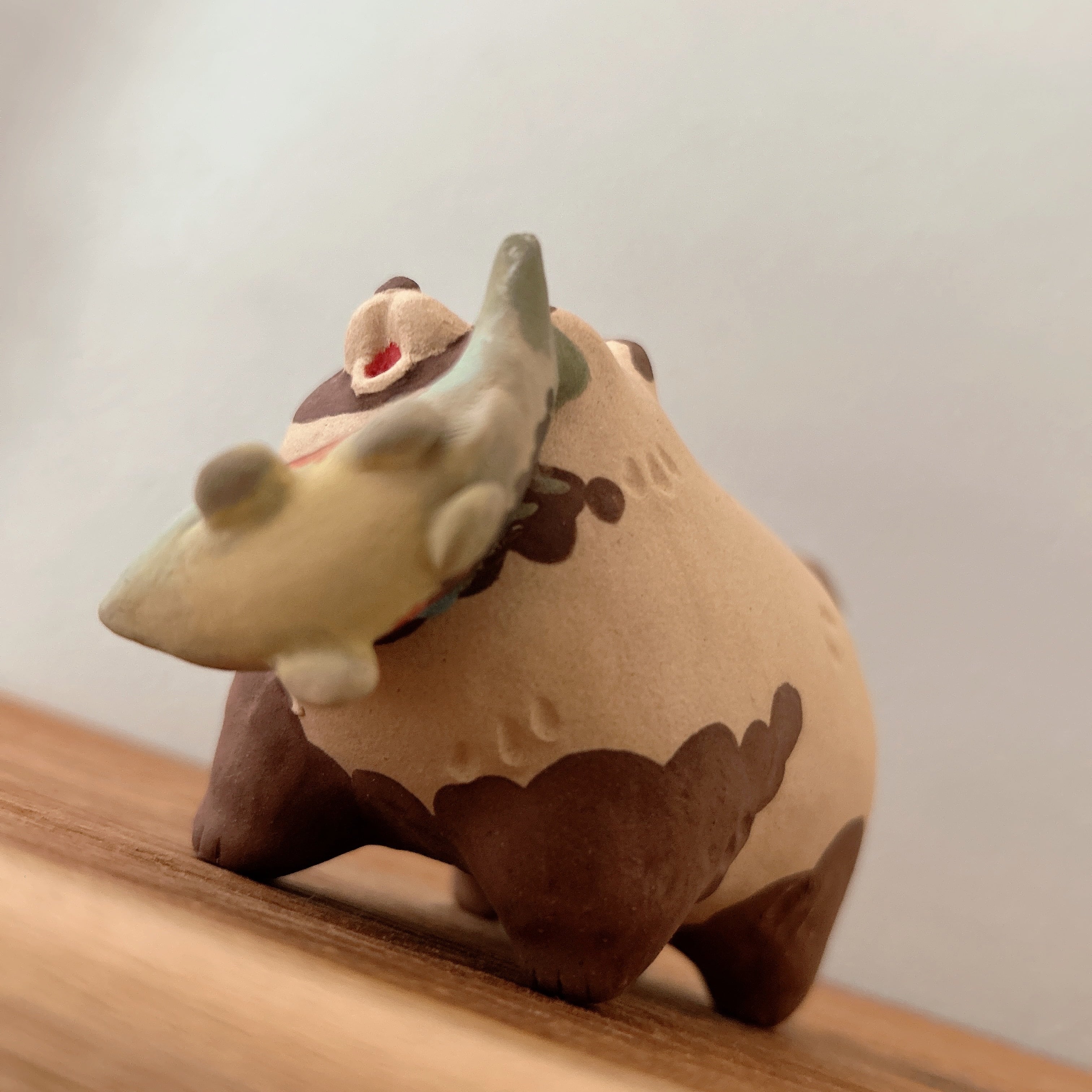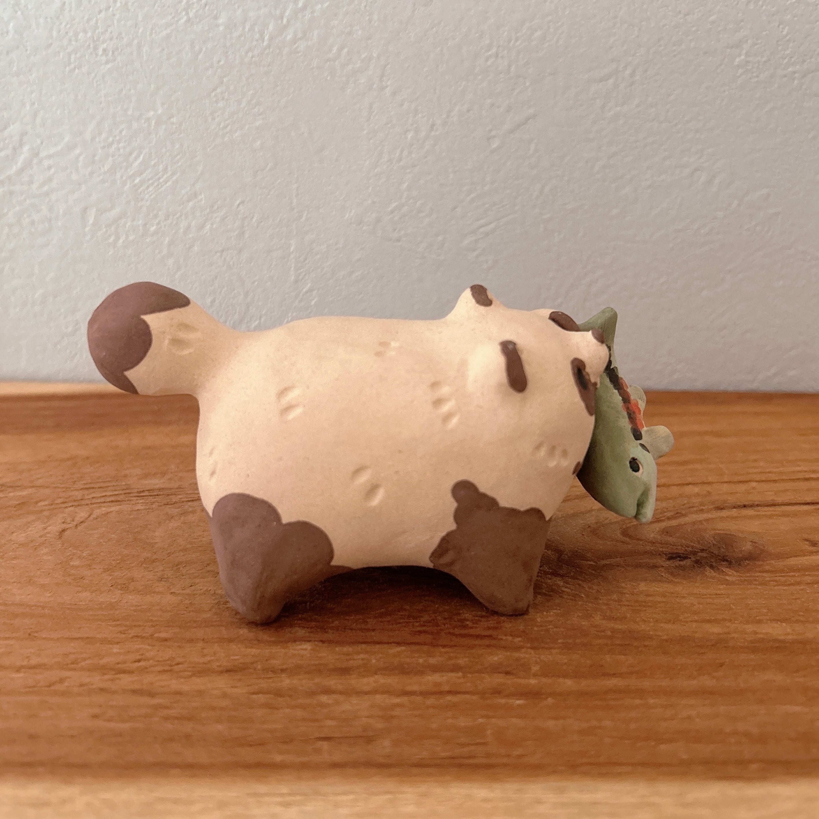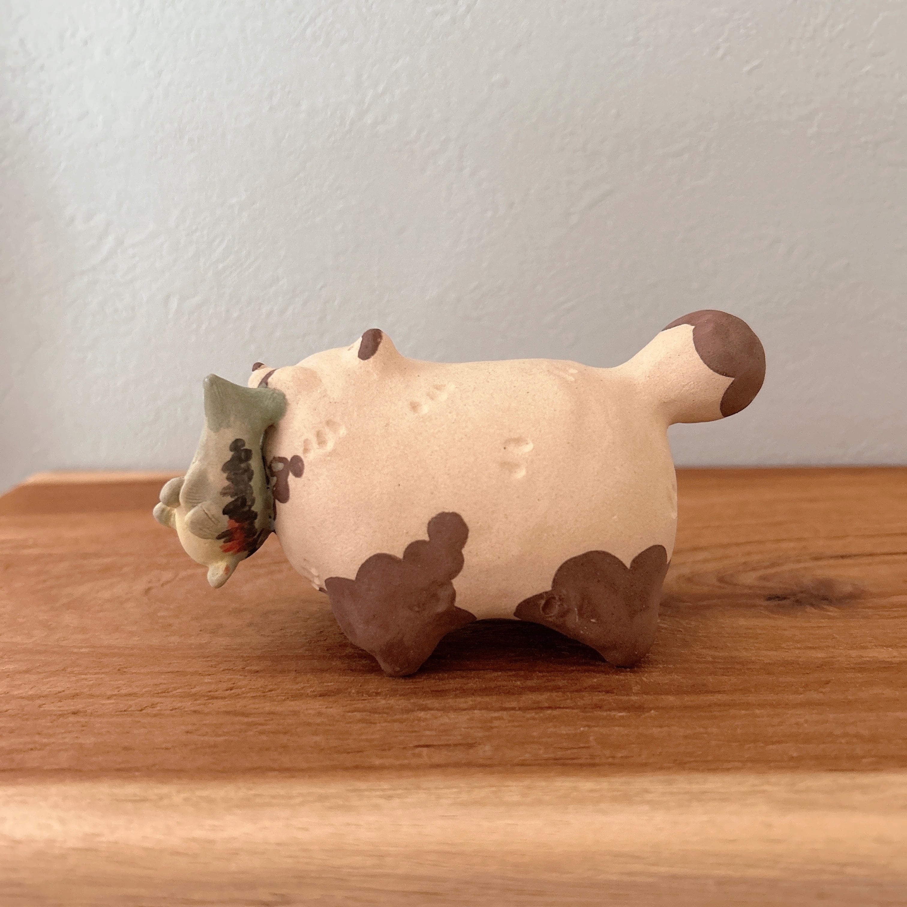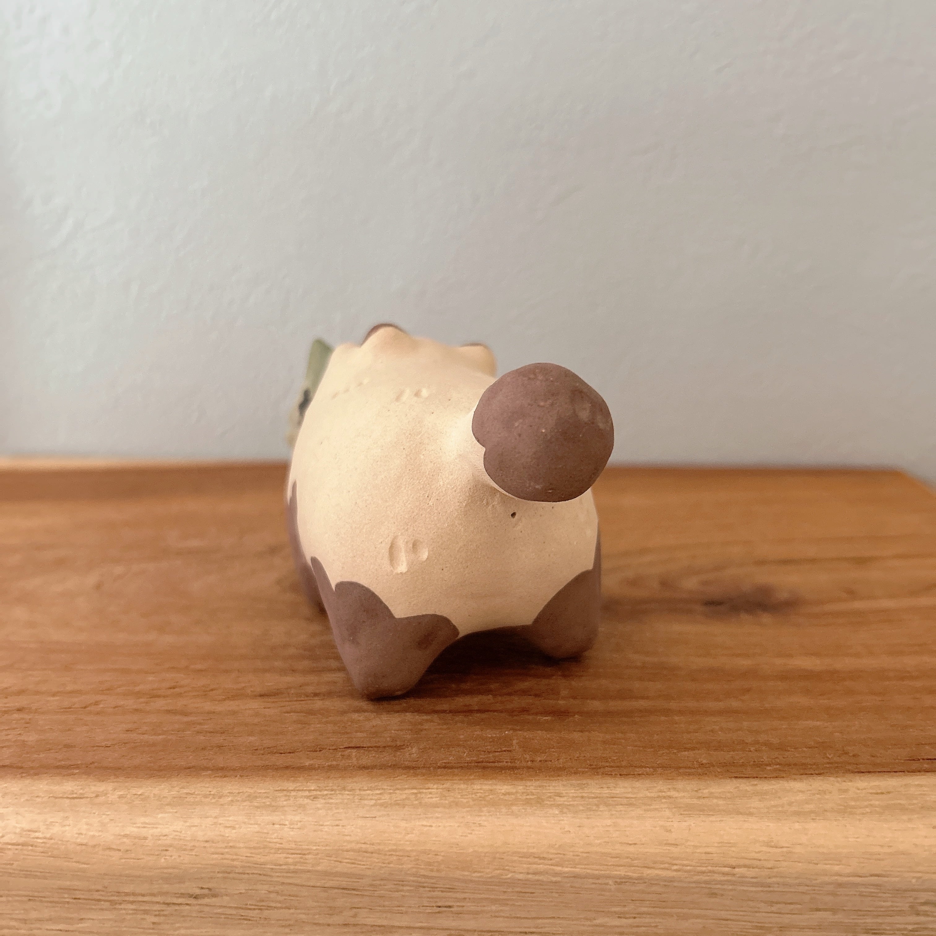 粘土の絶妙な質感とぽってりフォルムが特徴の置物は、どこに置いても可愛さを損ねません。