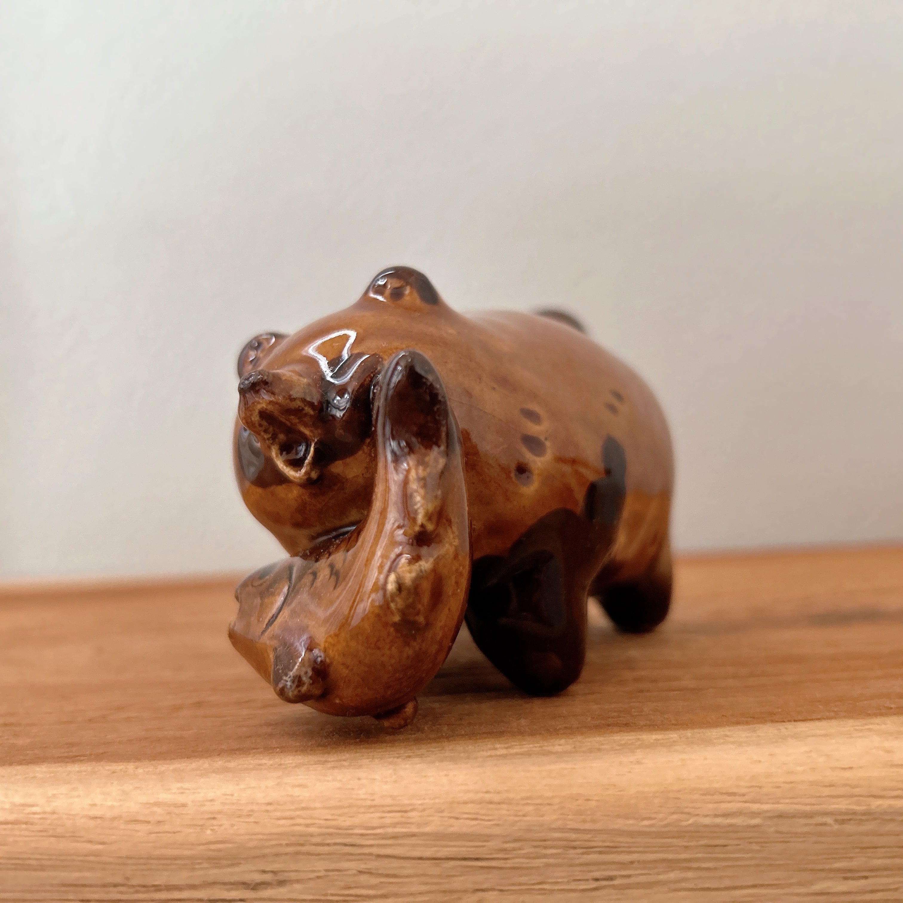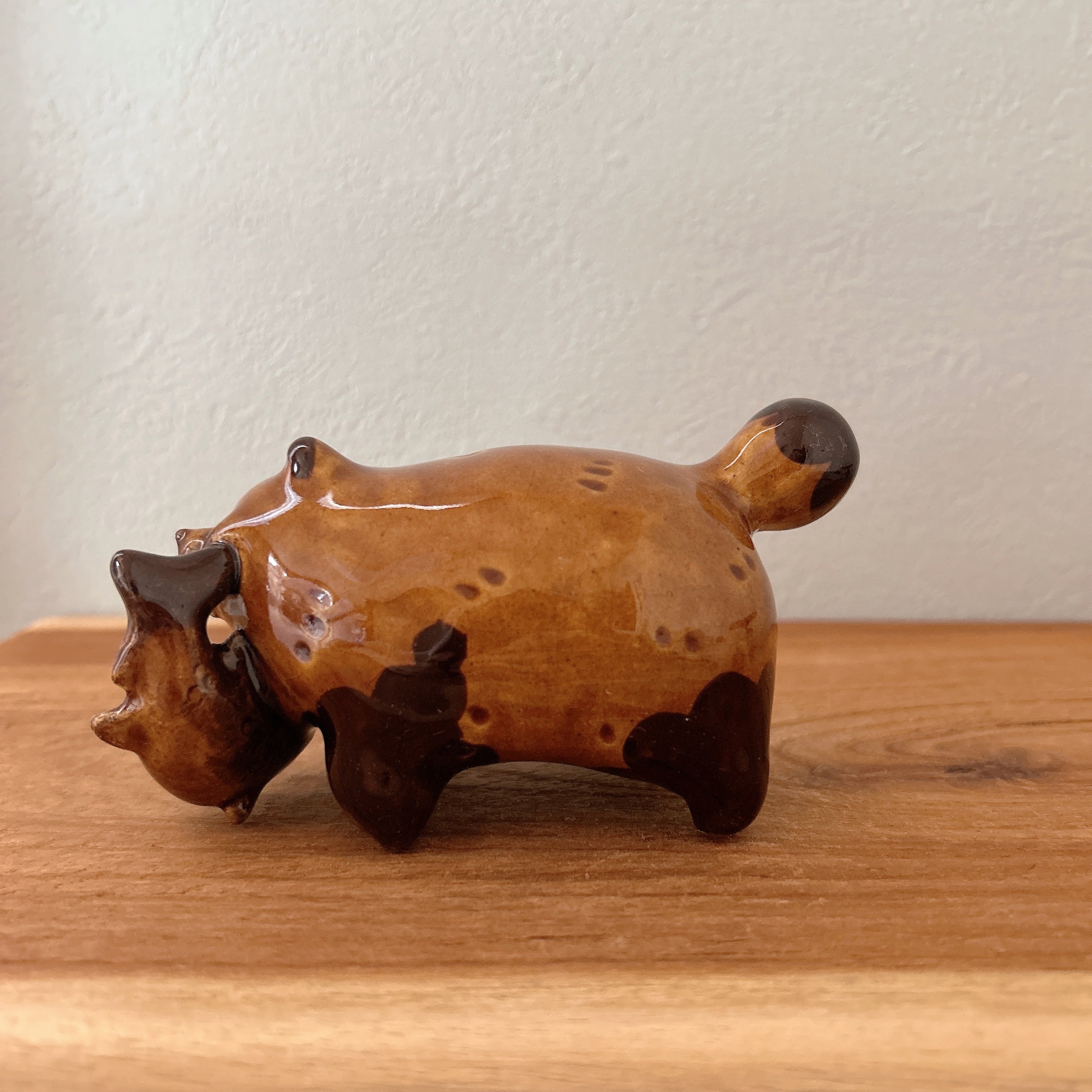 飴色のツヤっとした質感とぽってりフォルムが特徴の置物は、どこに置いても可愛さを損ねません。