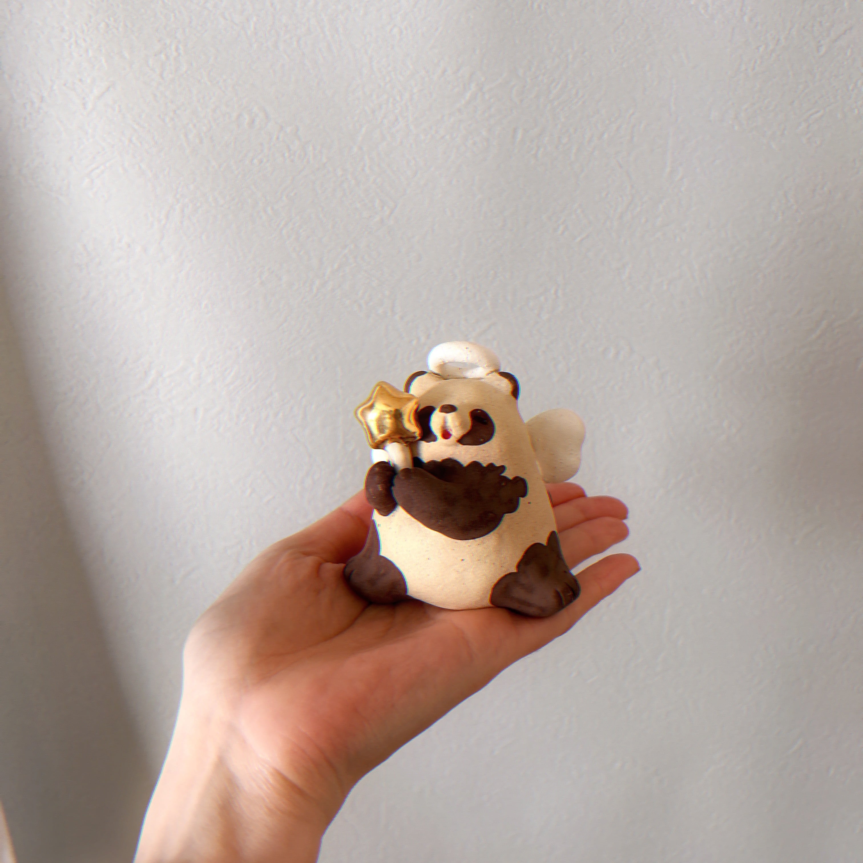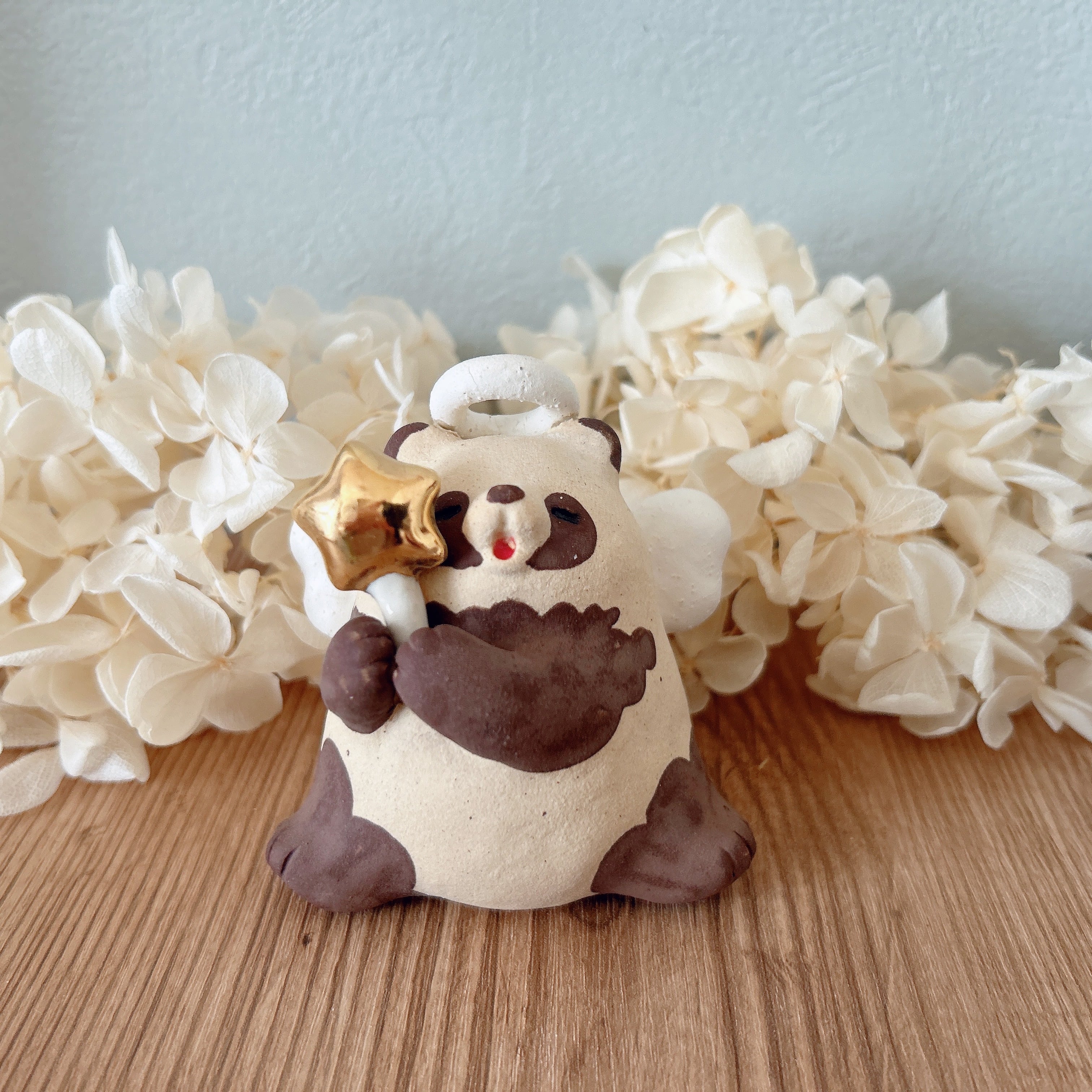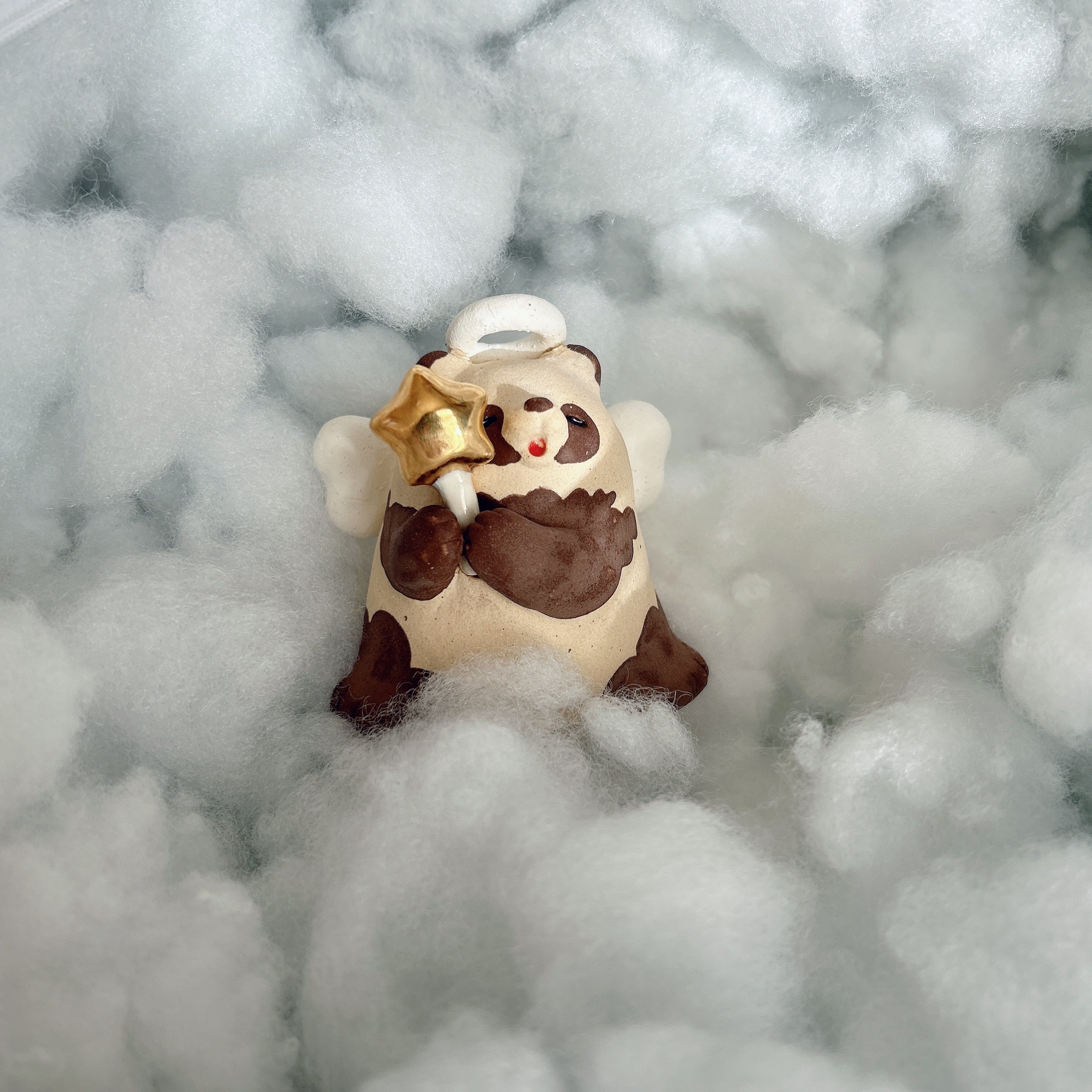 きんぴかな星のステッキを持った天使なたぬきの置物です。