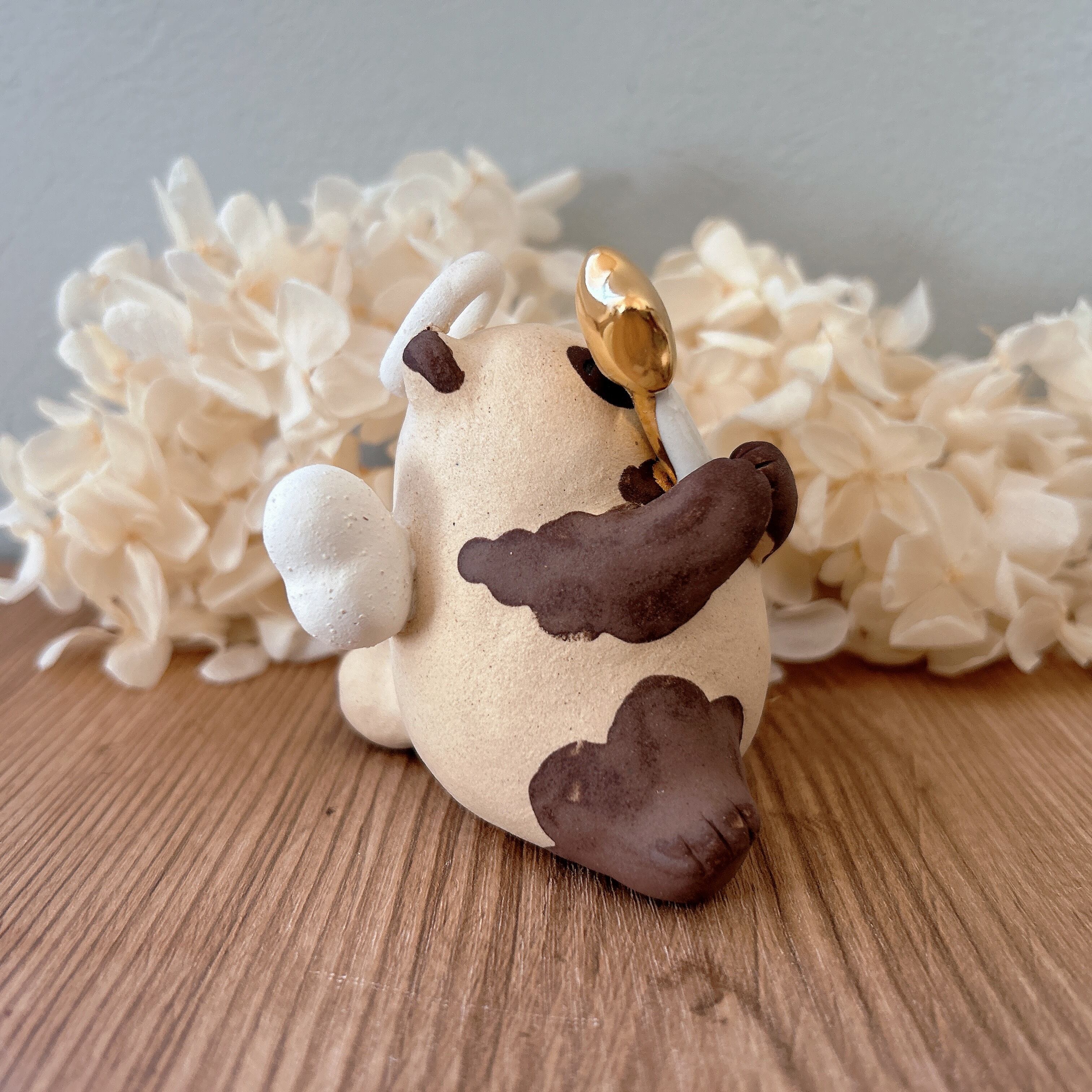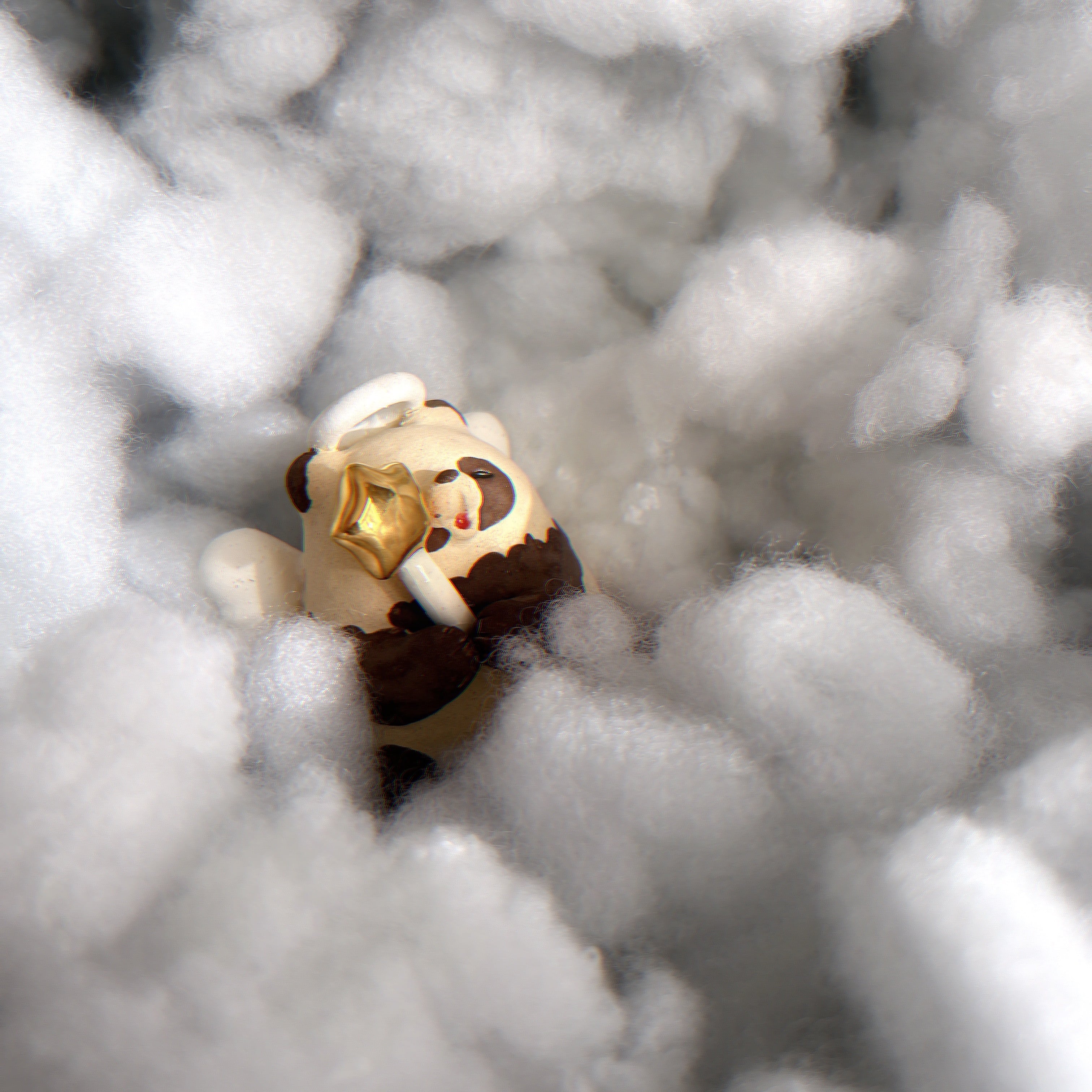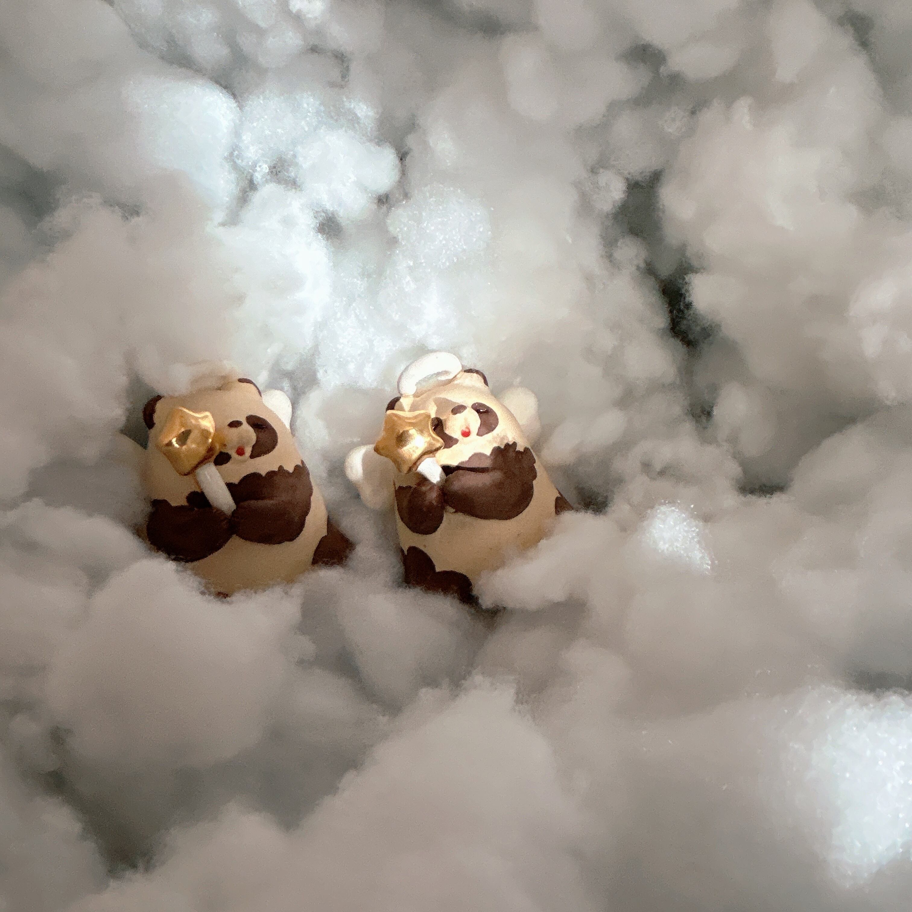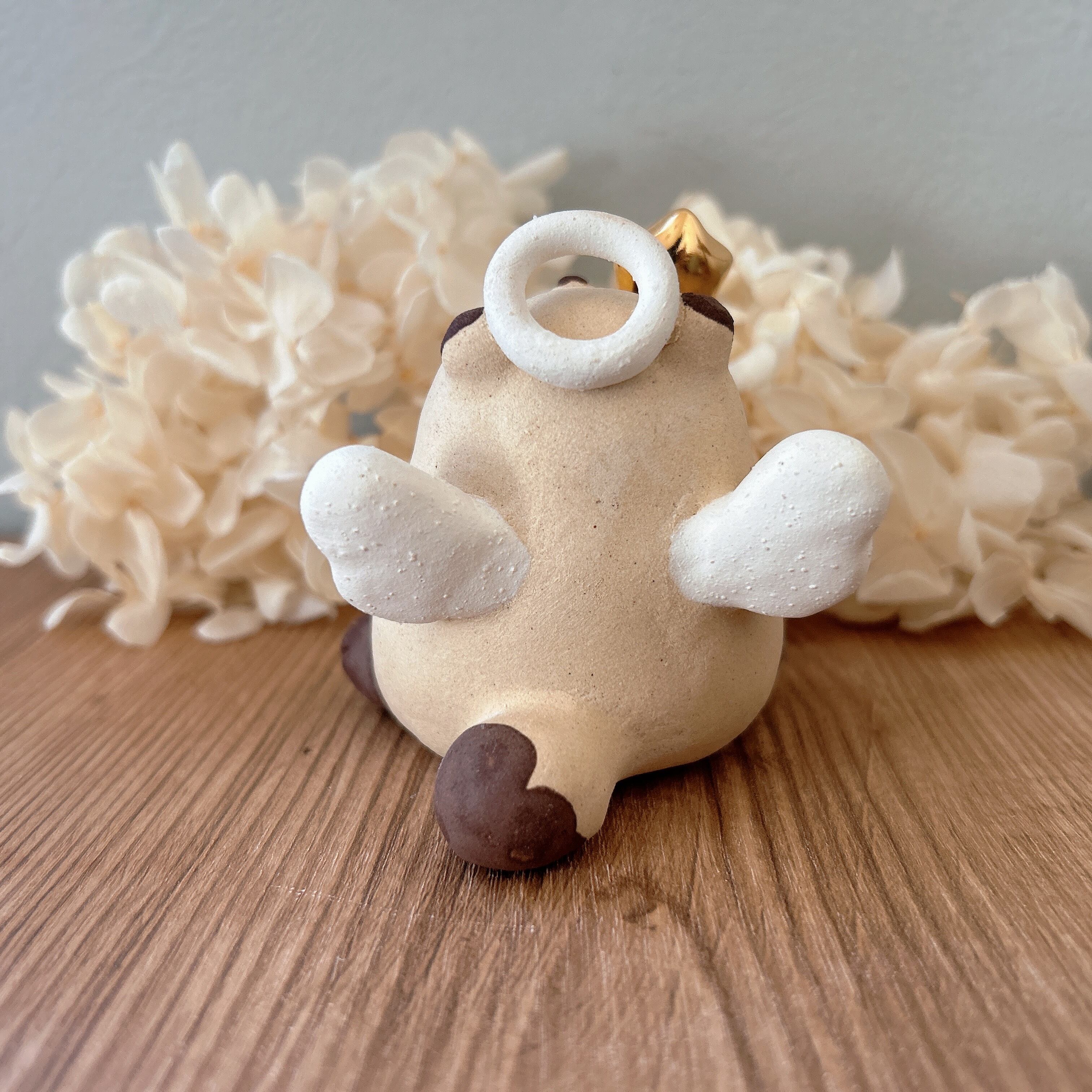きんぴかな星のステッキを掲げる天使なたぬきの置物です。