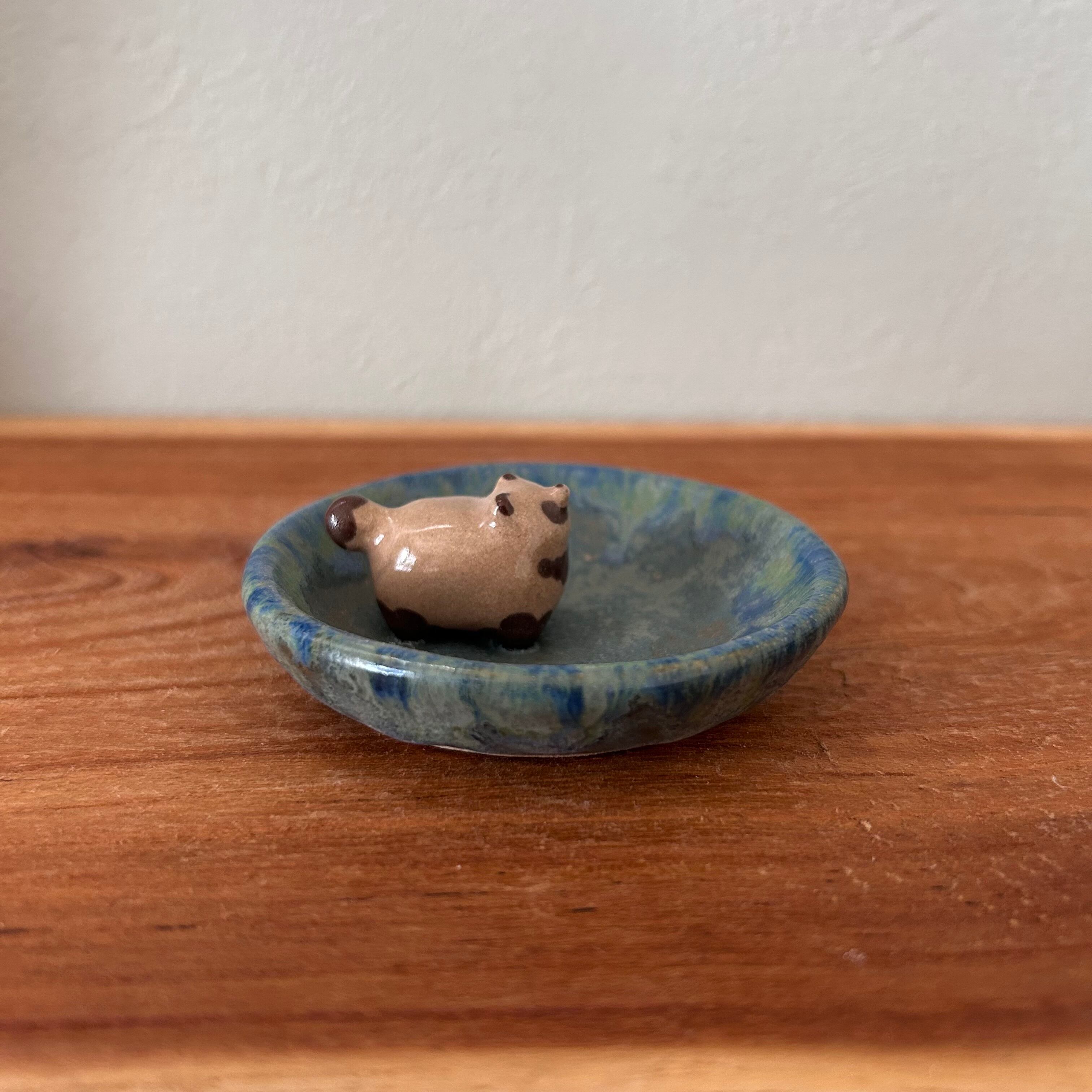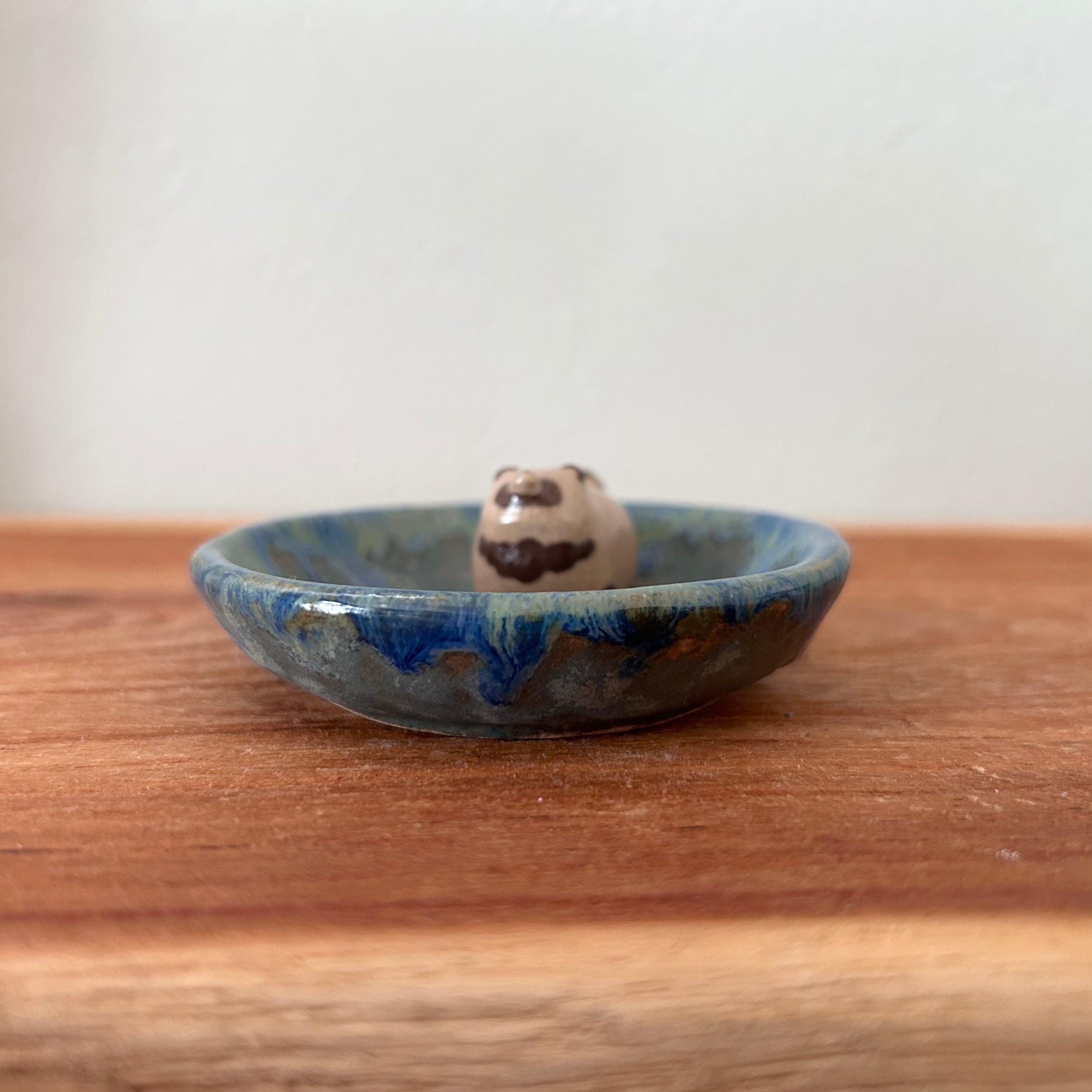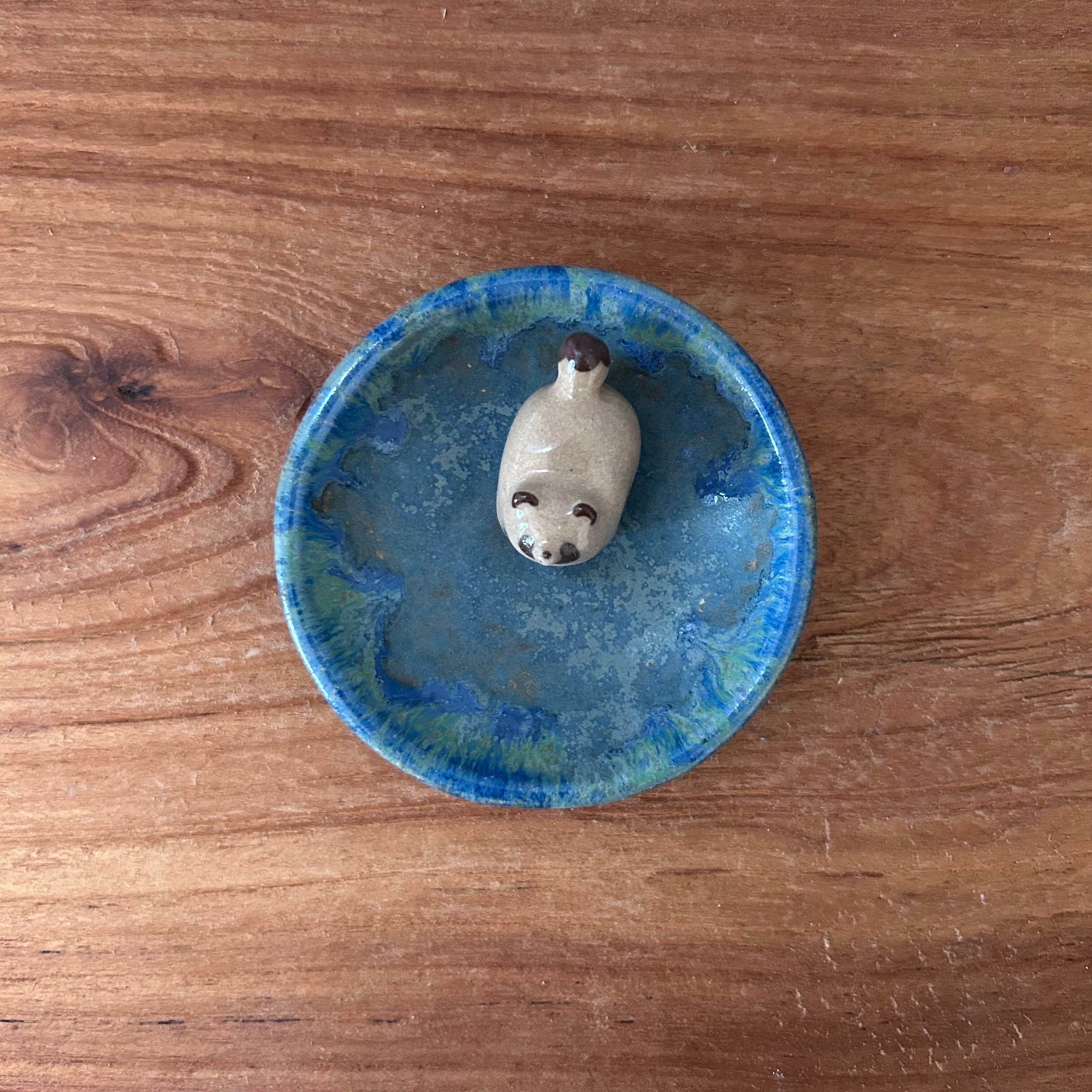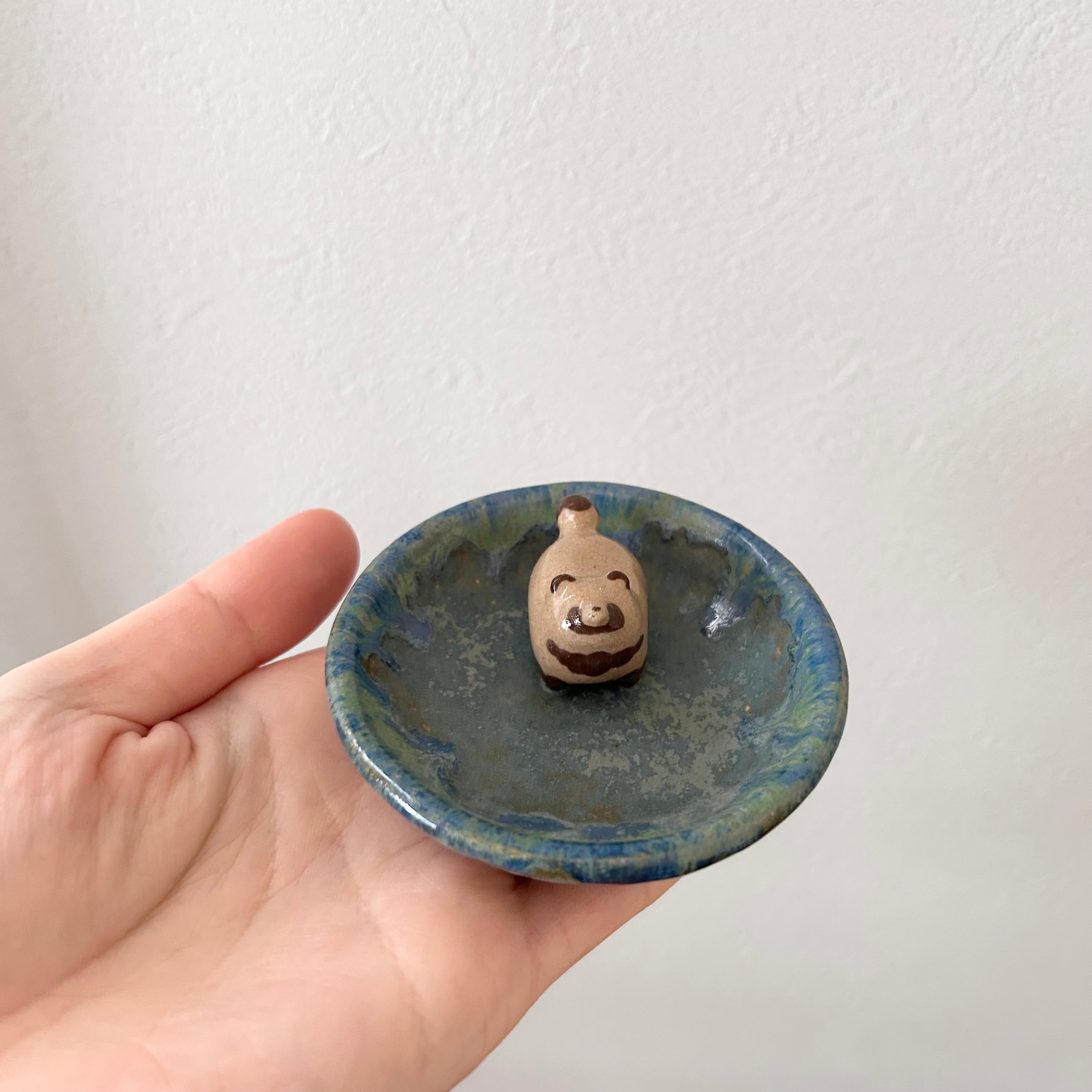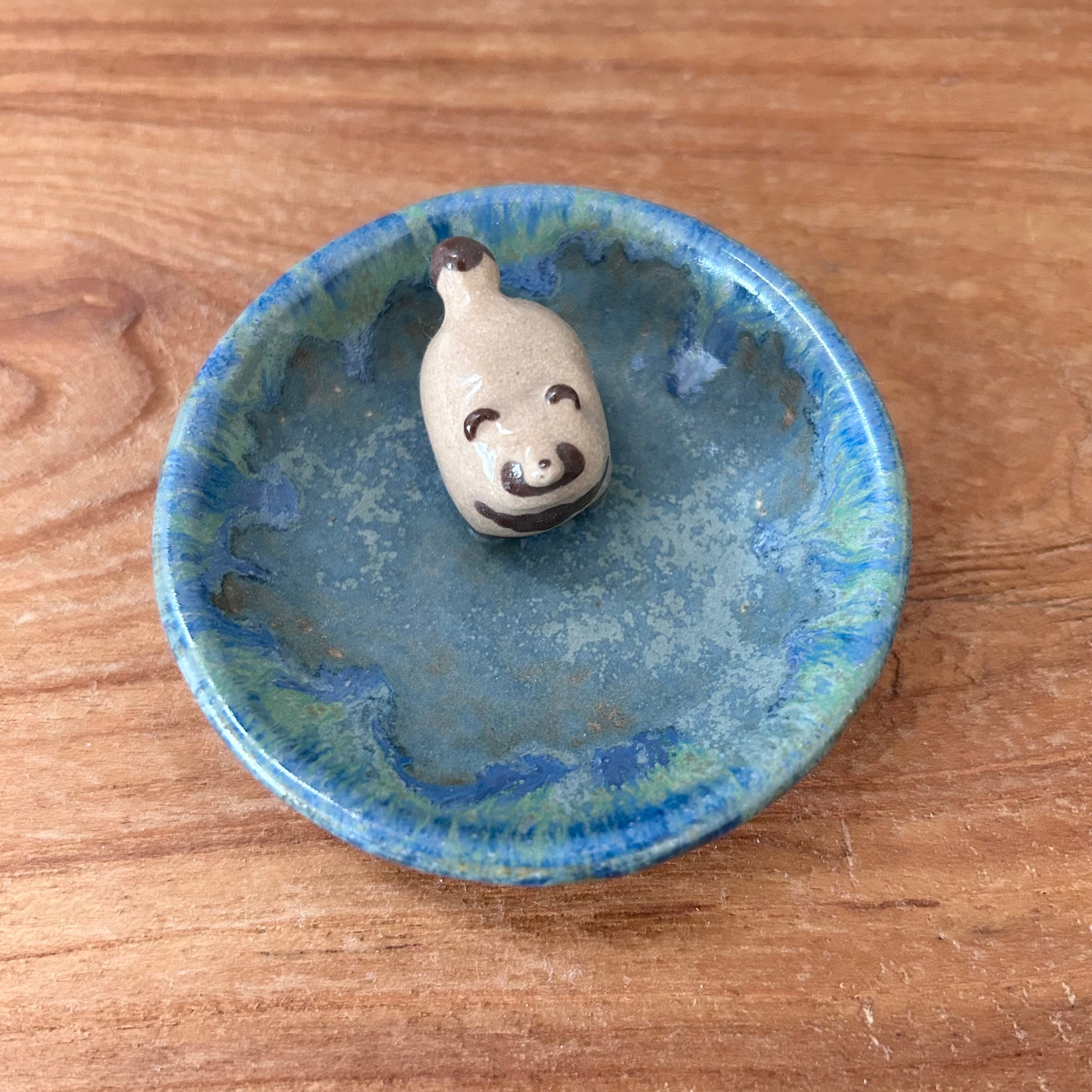 ・青い釉がたぬきにはねてしまっている場合がございます。製作上避けられない部分なのでご理解いただいた上でお迎えいただけますと幸いです。
