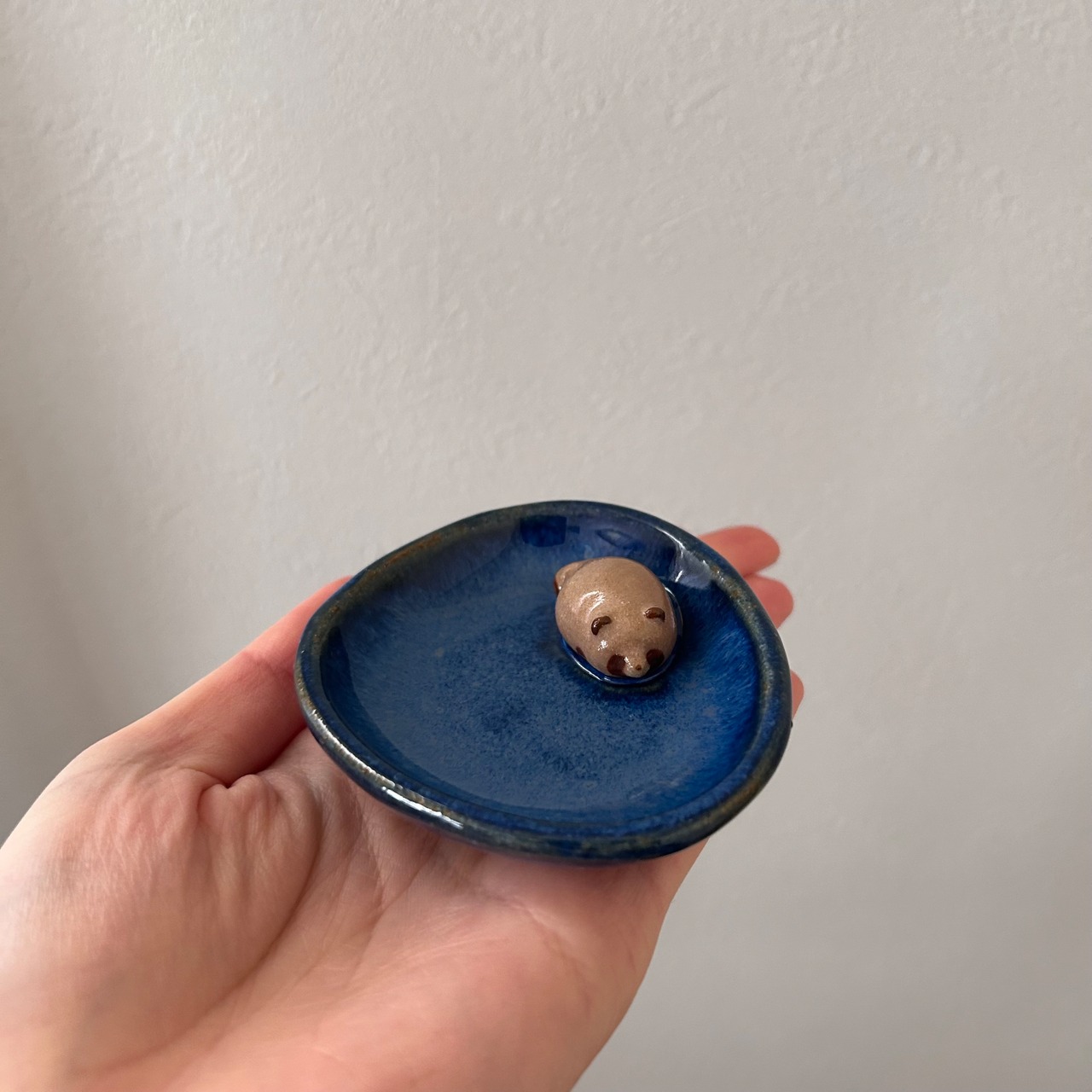 ・青い釉がたぬきにはねてしまっている場合がございます。製作上避けられない部分なのでご理解いただいた上でお迎えいただけますと幸いです。