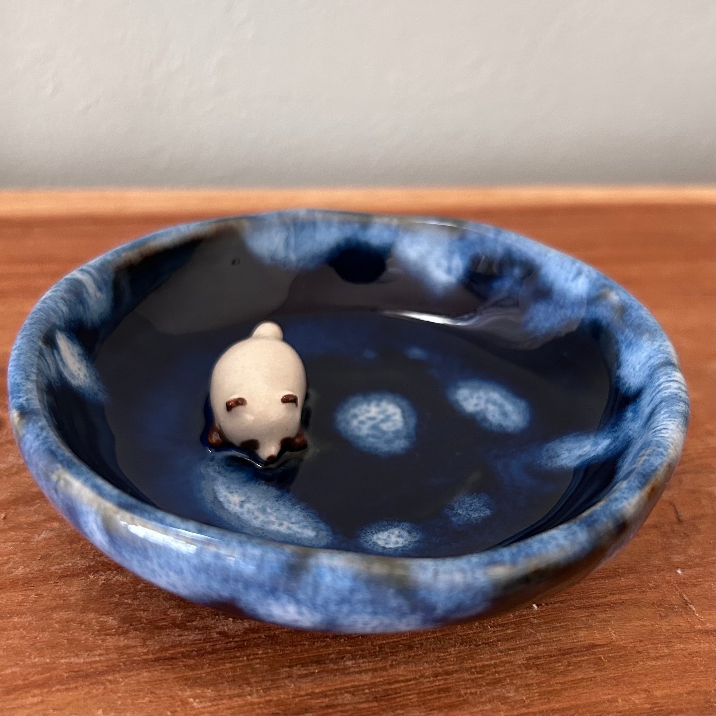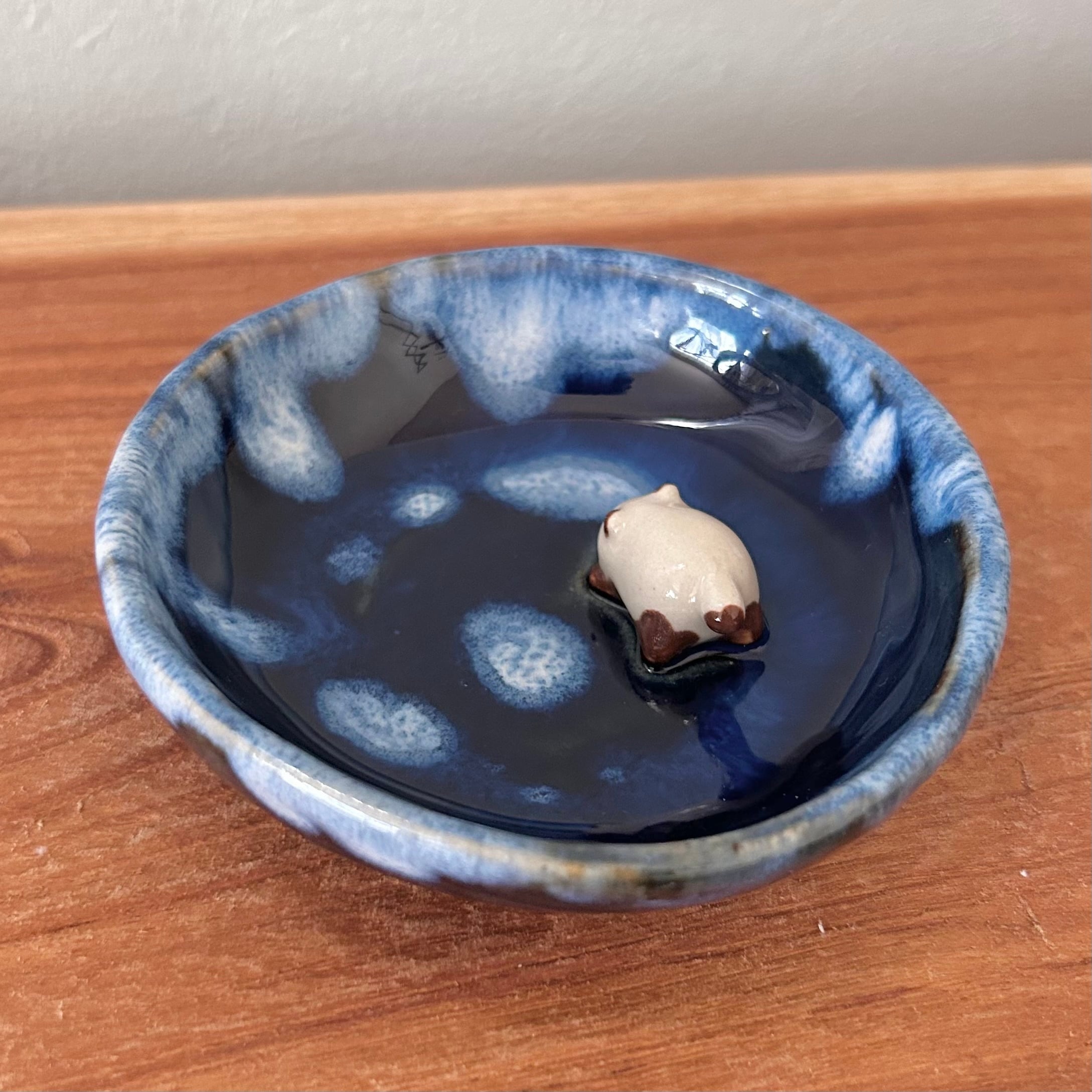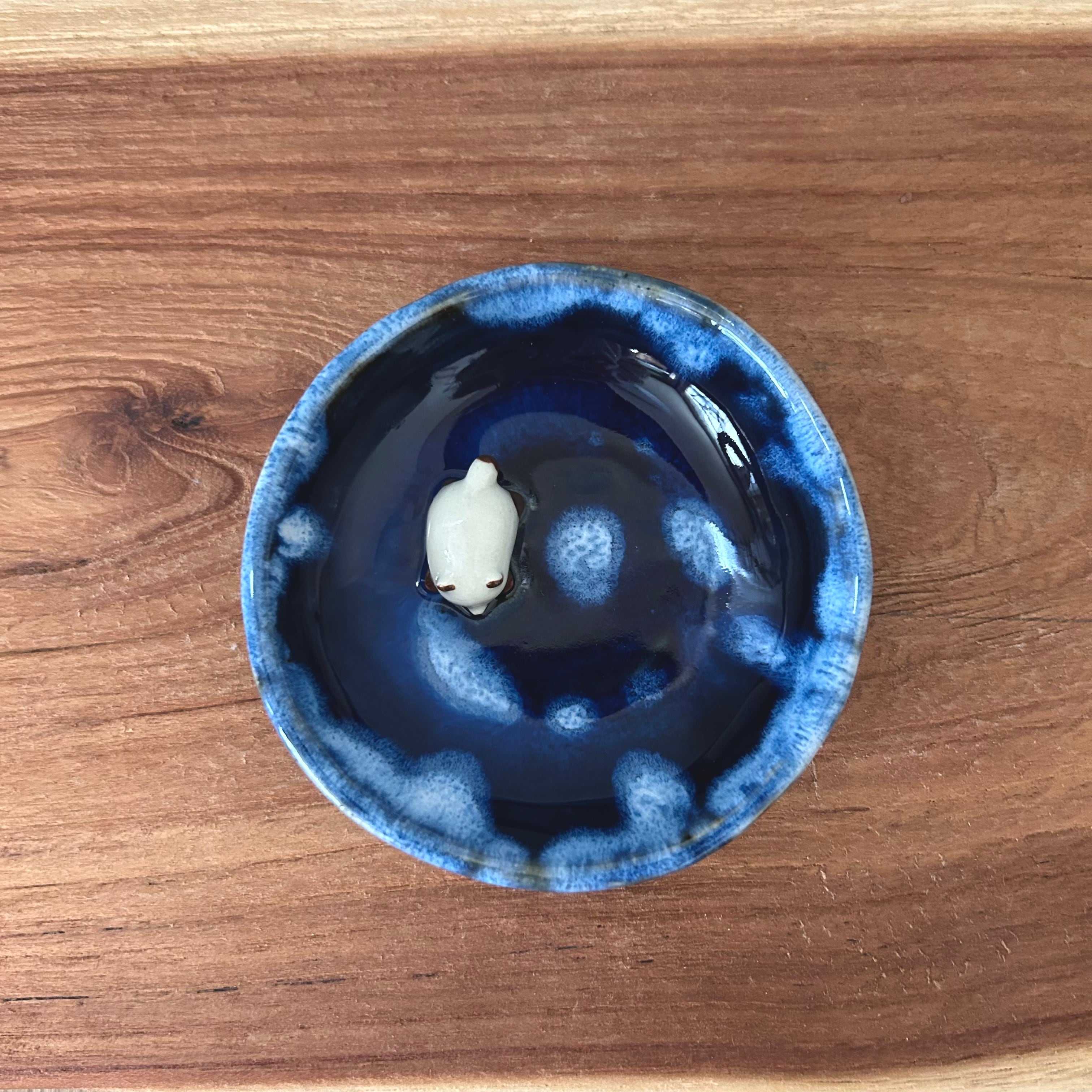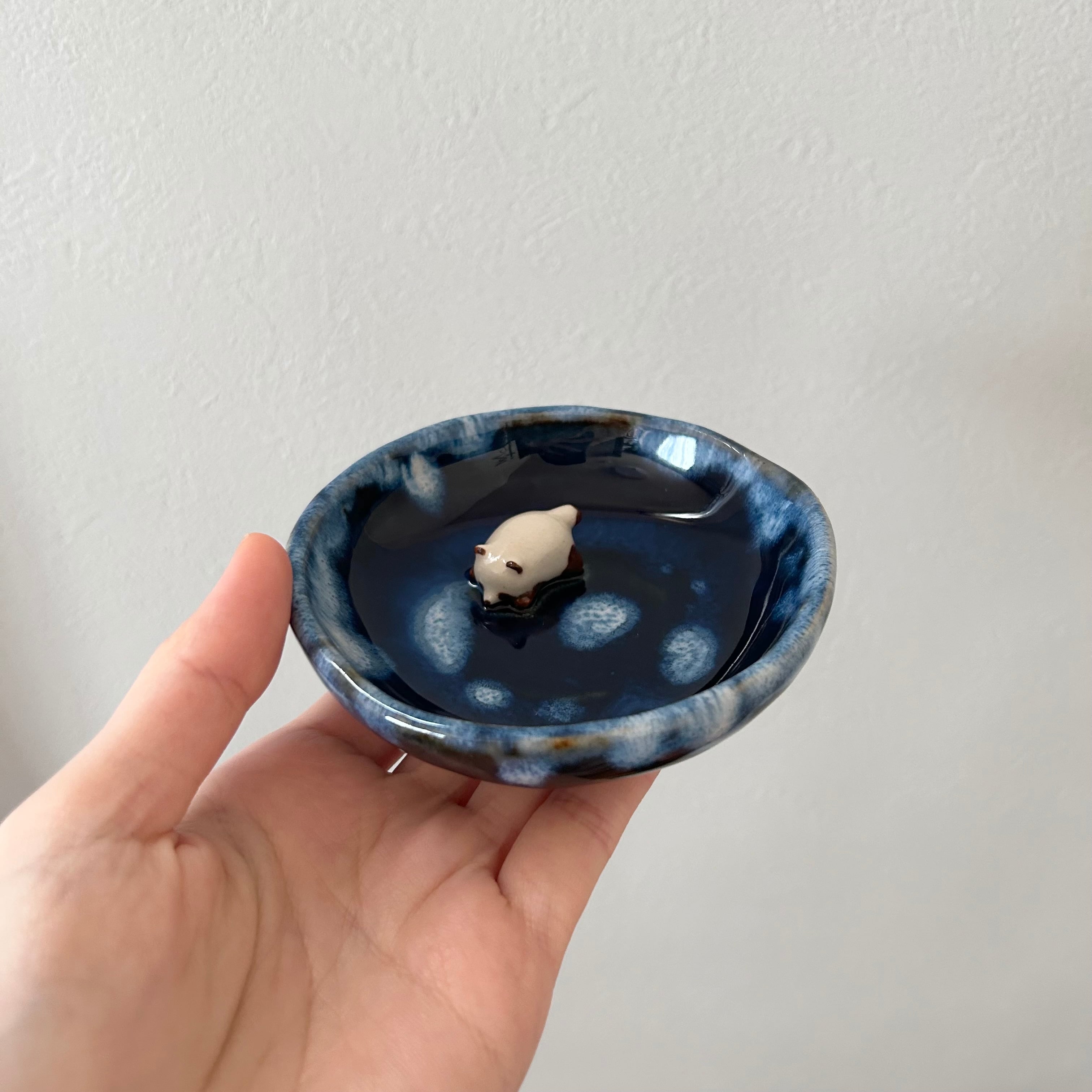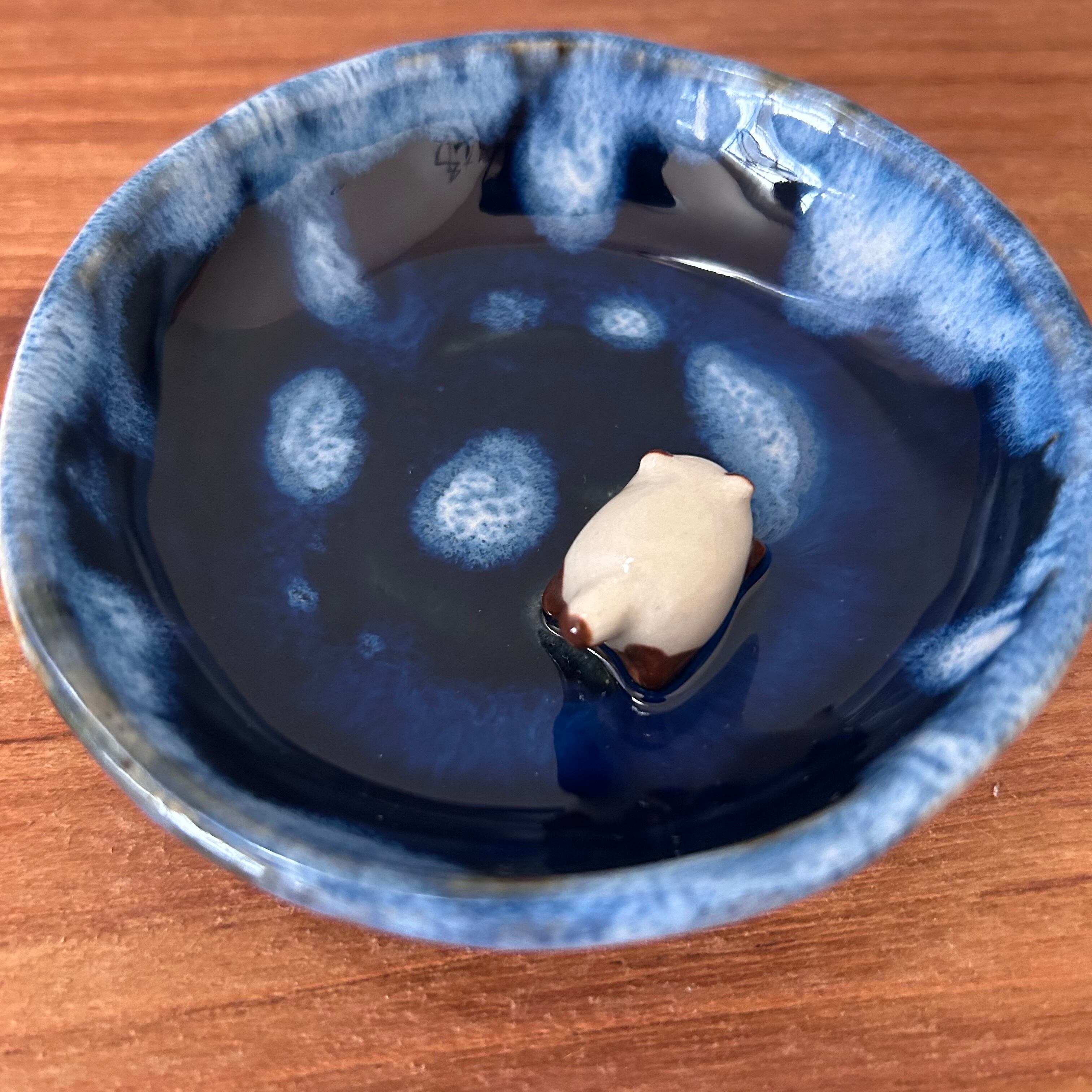 ・青い釉がたぬきにはねてしまっている場合がございます。製作上避けられない部分なのでご理解いただいた上でお迎えいただけますと幸いです。