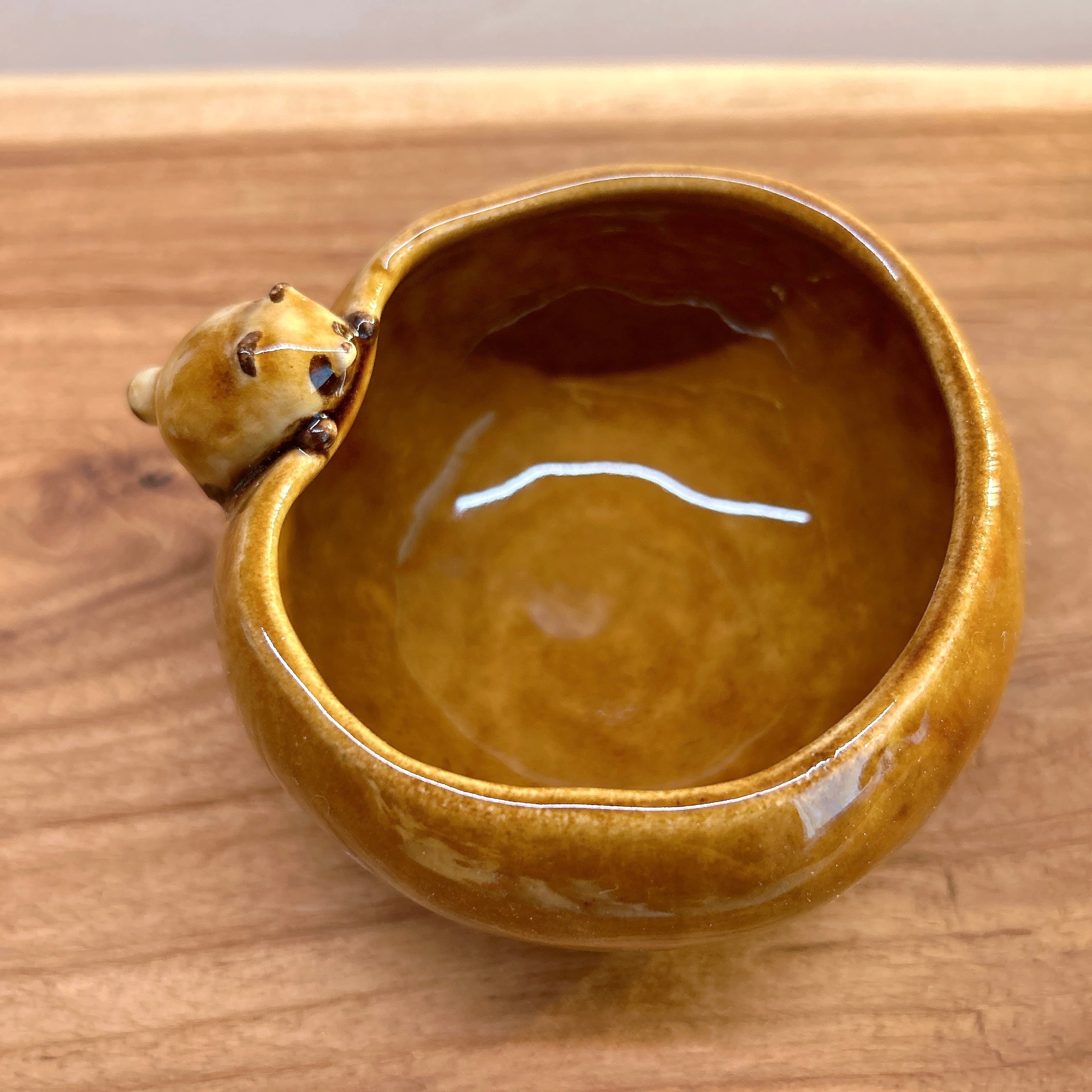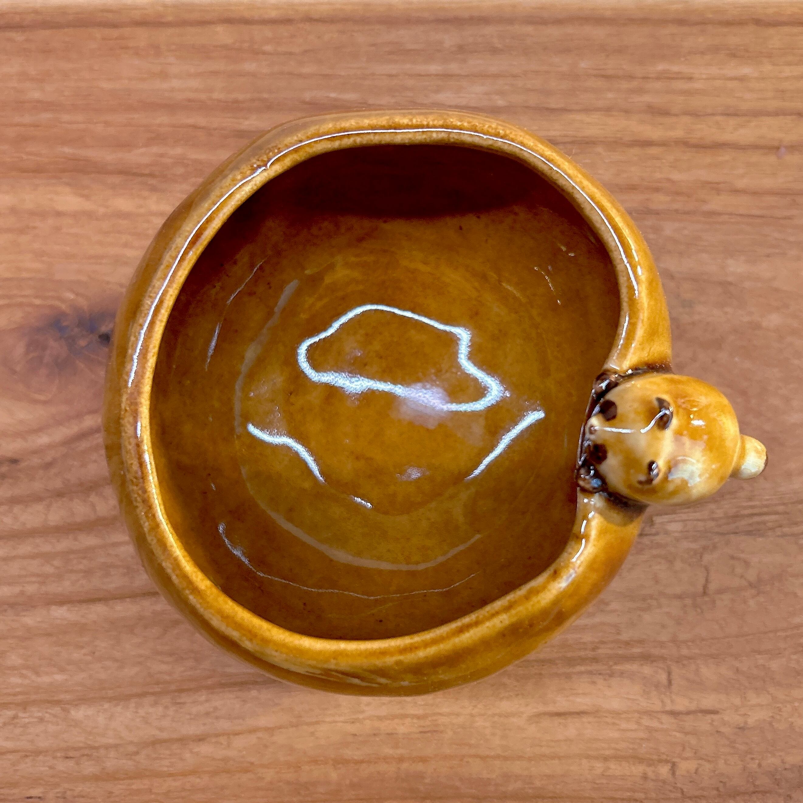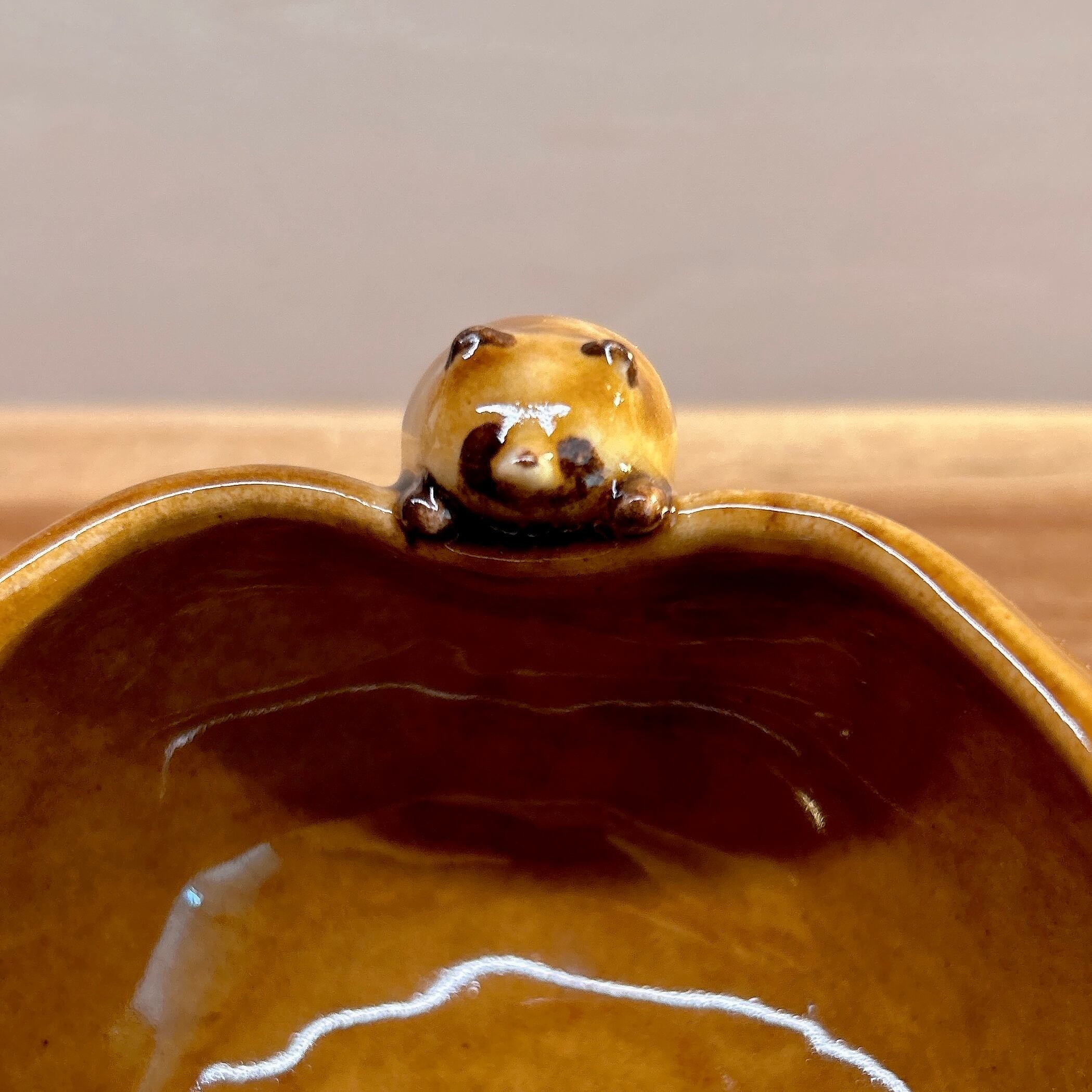 固まる前にたぬきがふちに登ってきたため縁がふにゃっとゆがんでいます