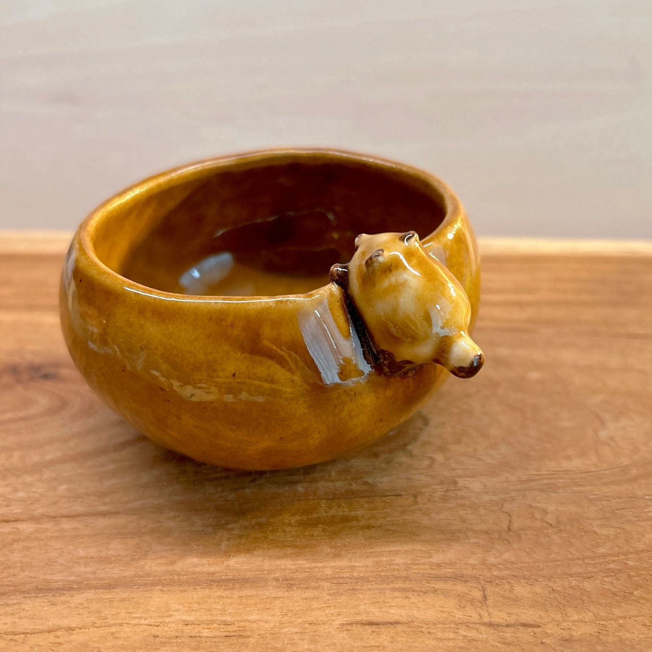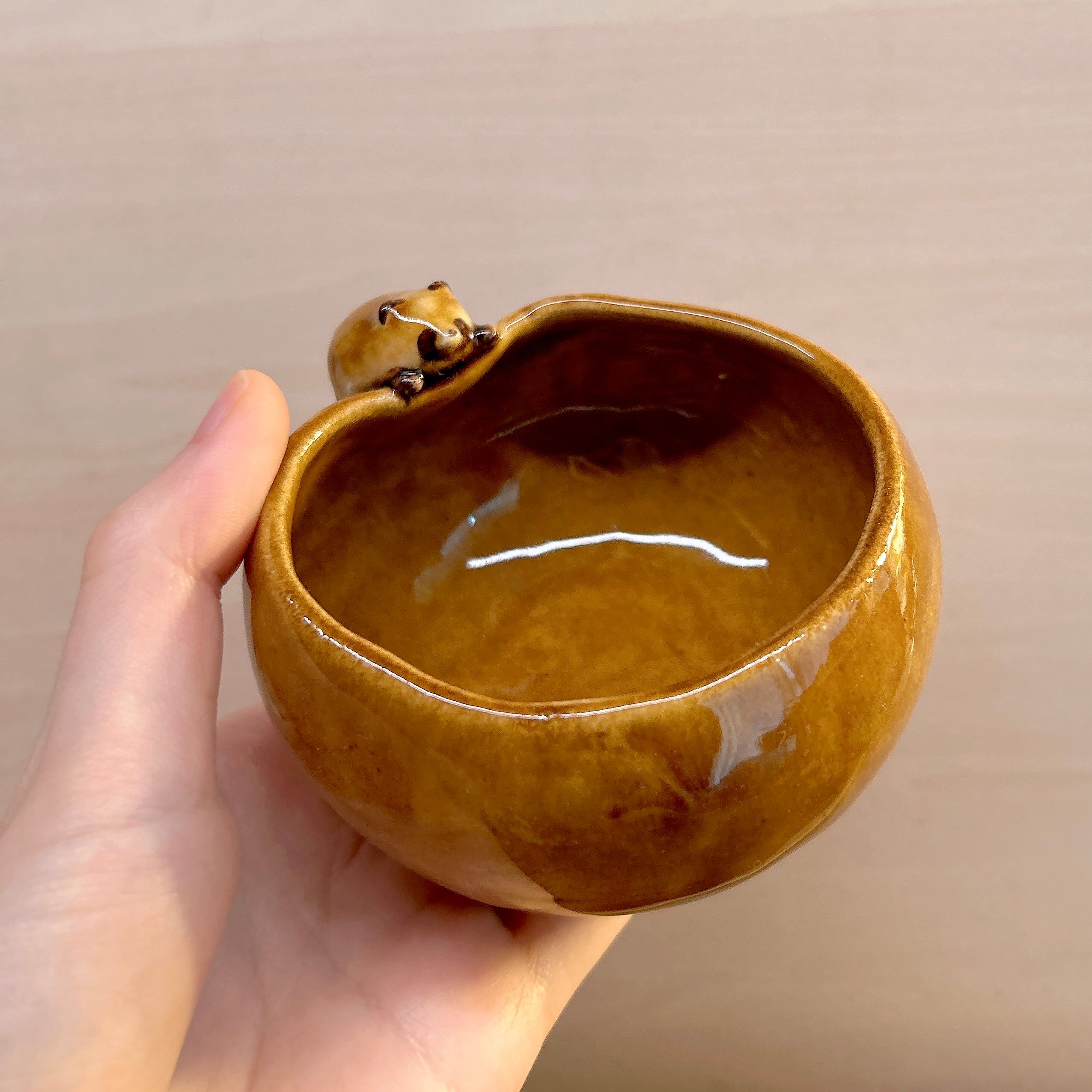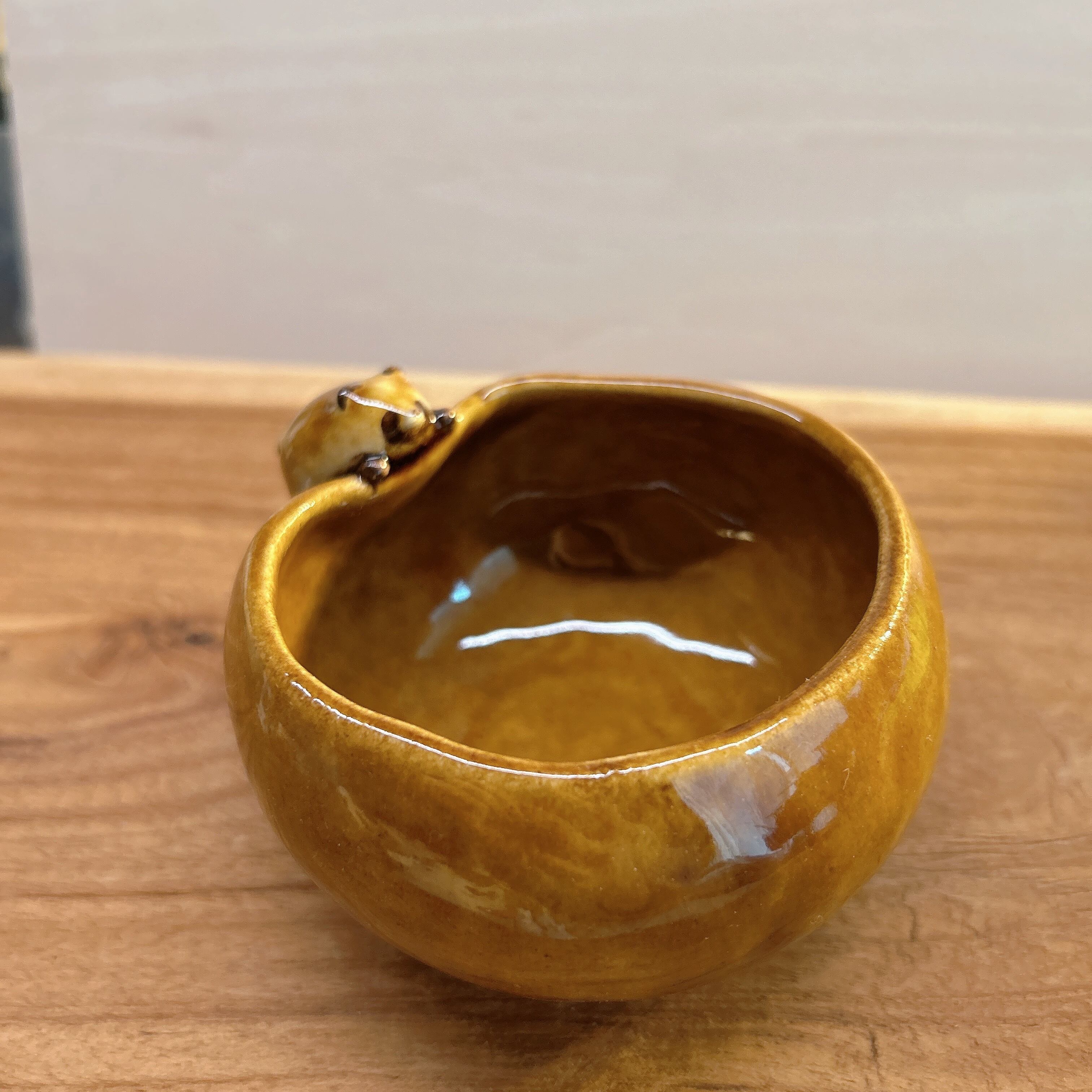 固まる前にたぬきがふちに登ってきたため縁がふにゃっとゆがんでいます