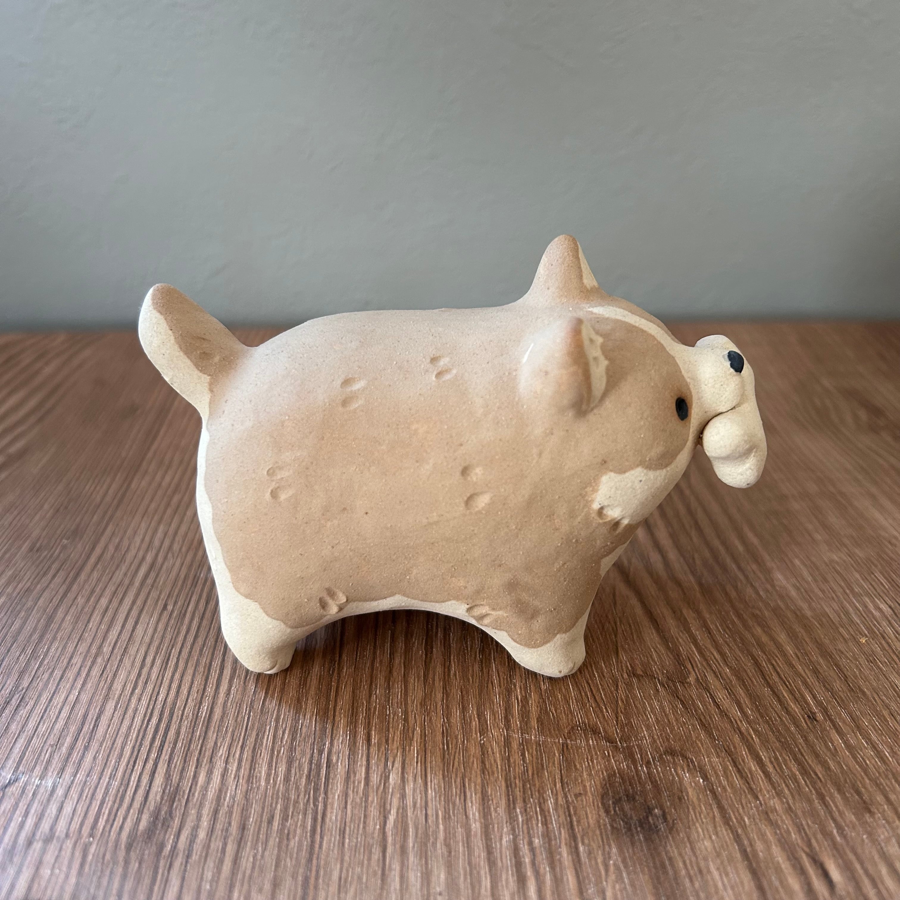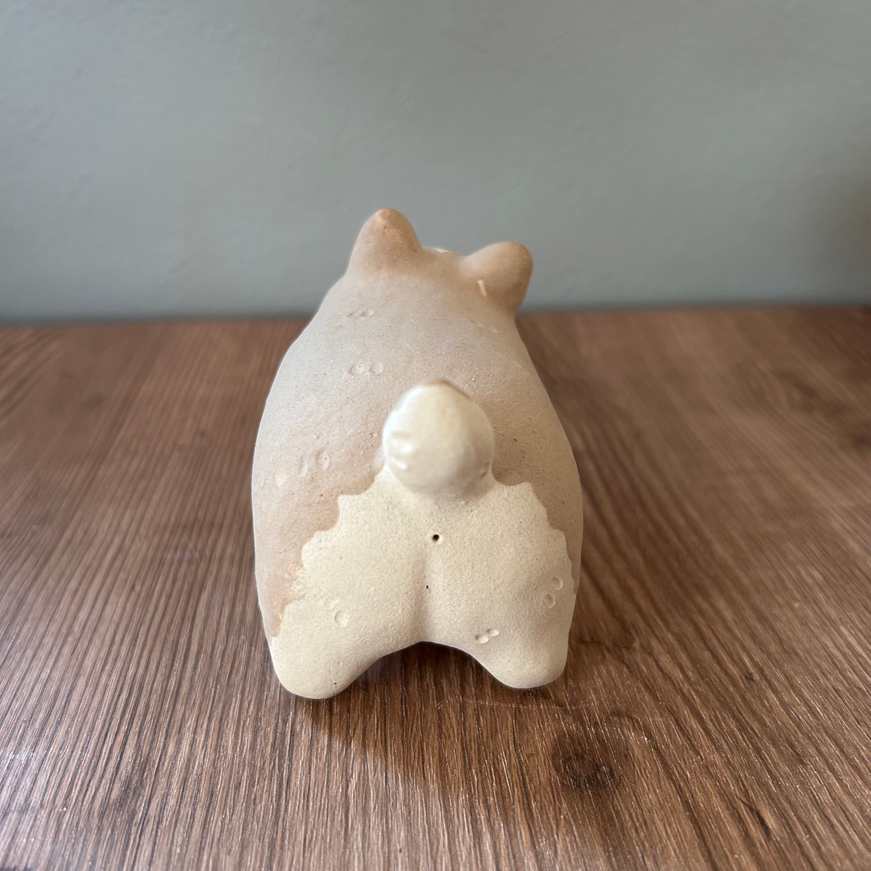 粘土の絶妙な質感とぽってりフォルムが特徴の置物は、どこに置いても可愛さを損ねません。