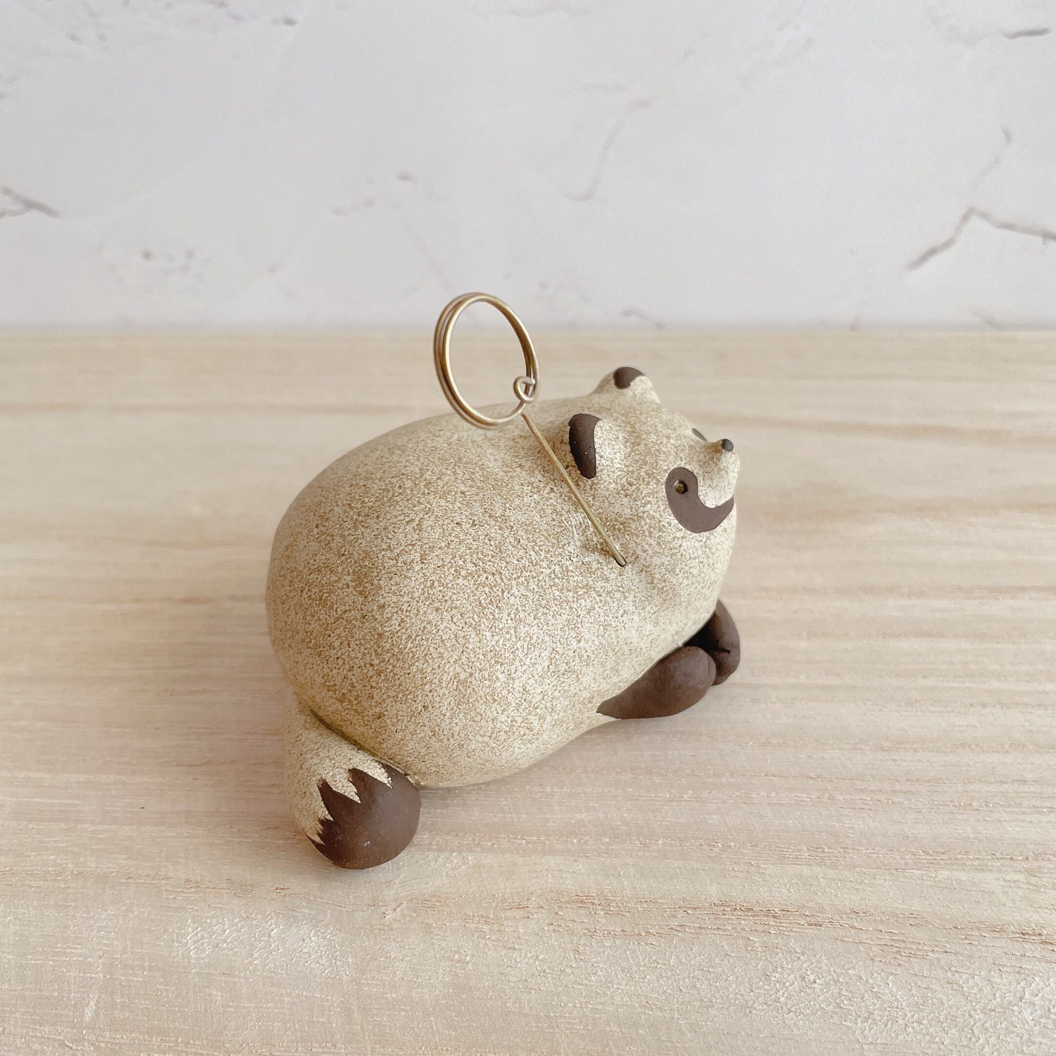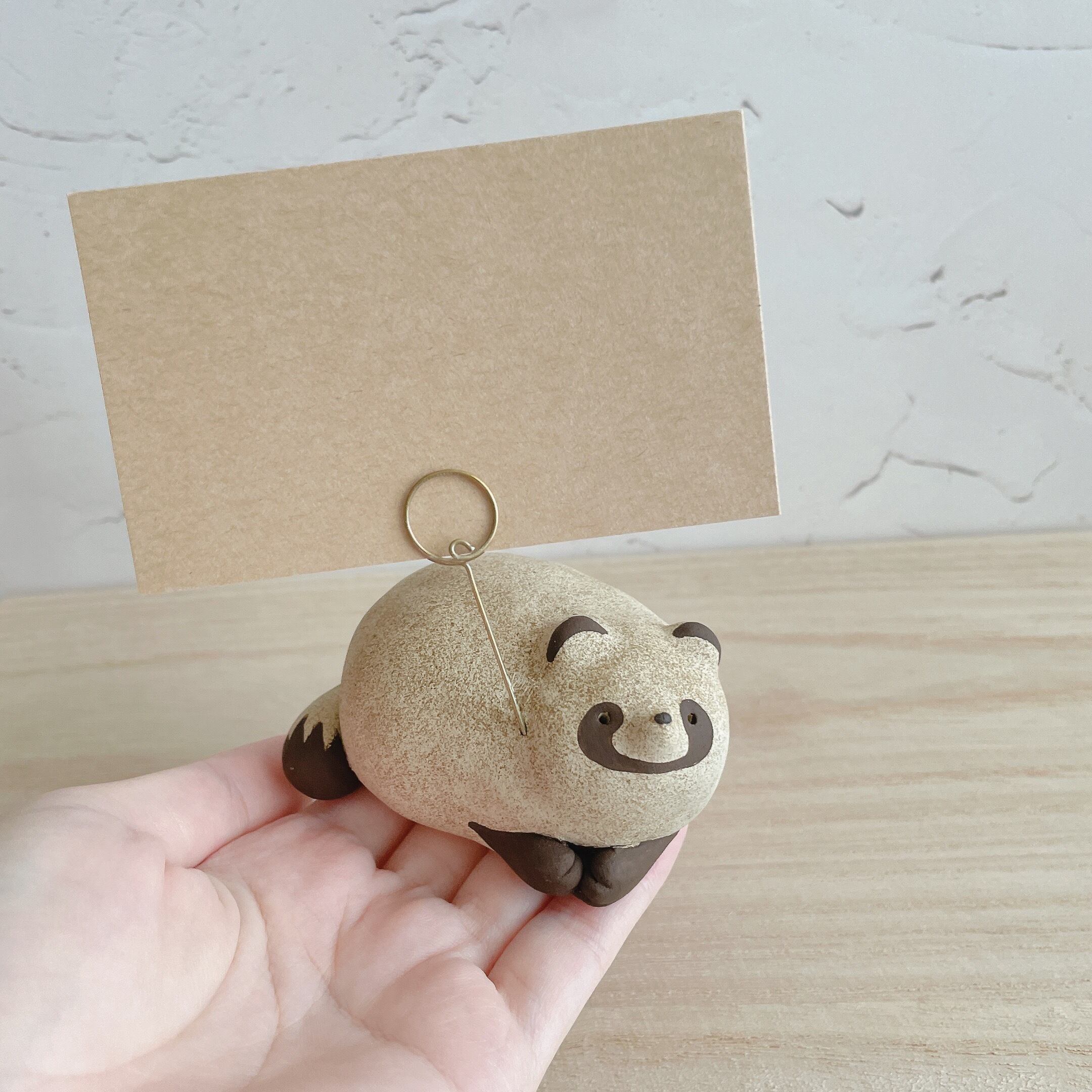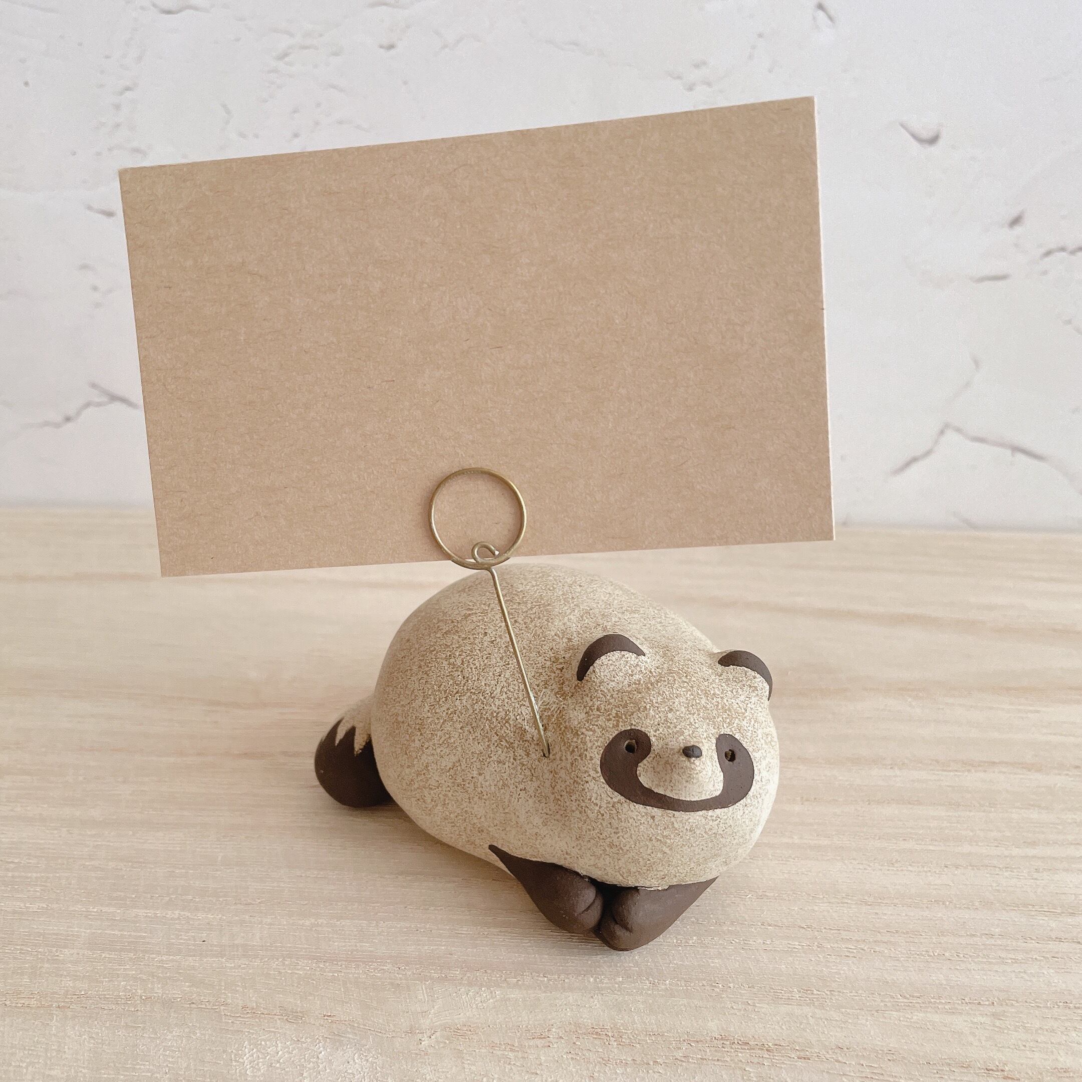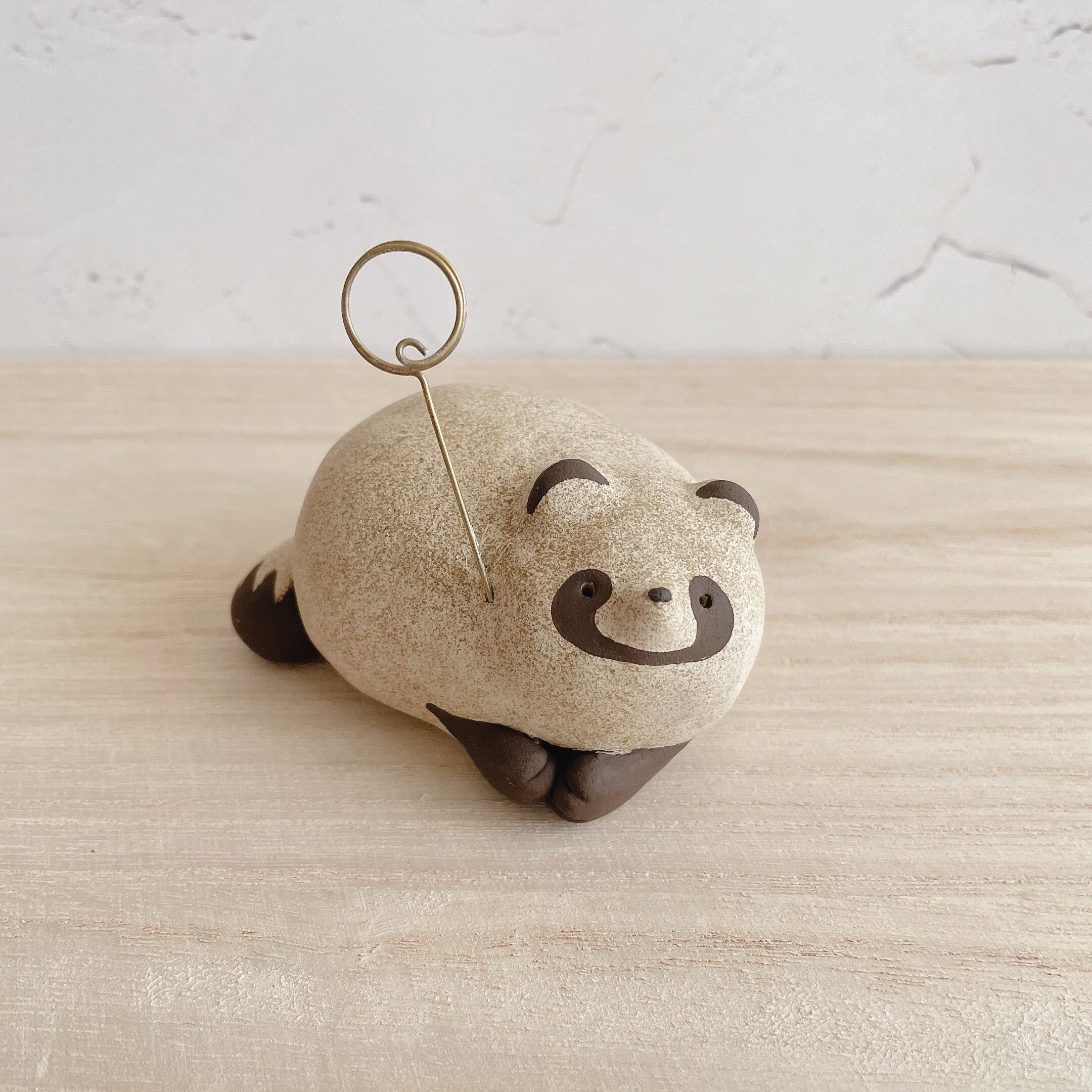 メモスタンドの金具部分とたぬきは接着しておりませんのでご注意ください。