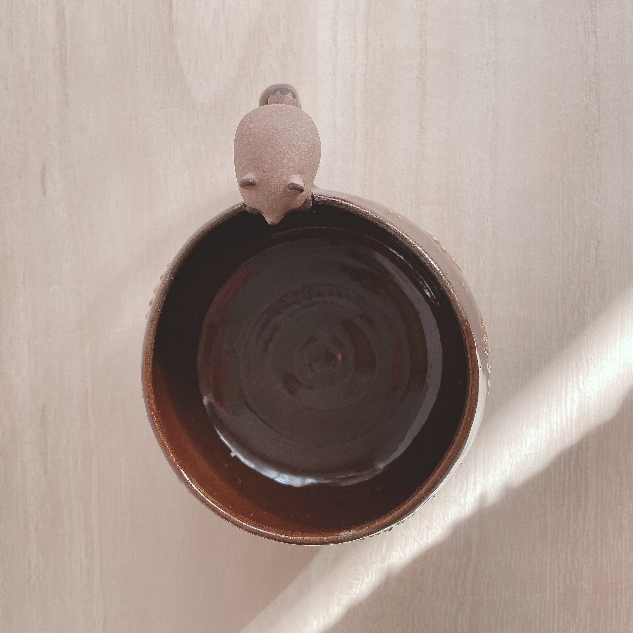 あめシリーズとは土の種類が異なるため、たぬきの色もマグの色も濃いめになっております。