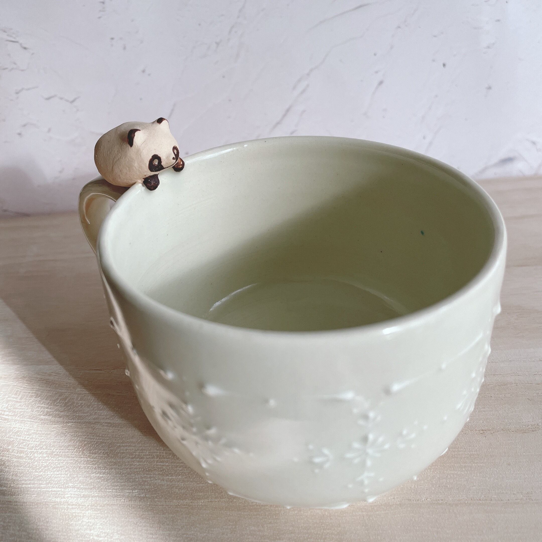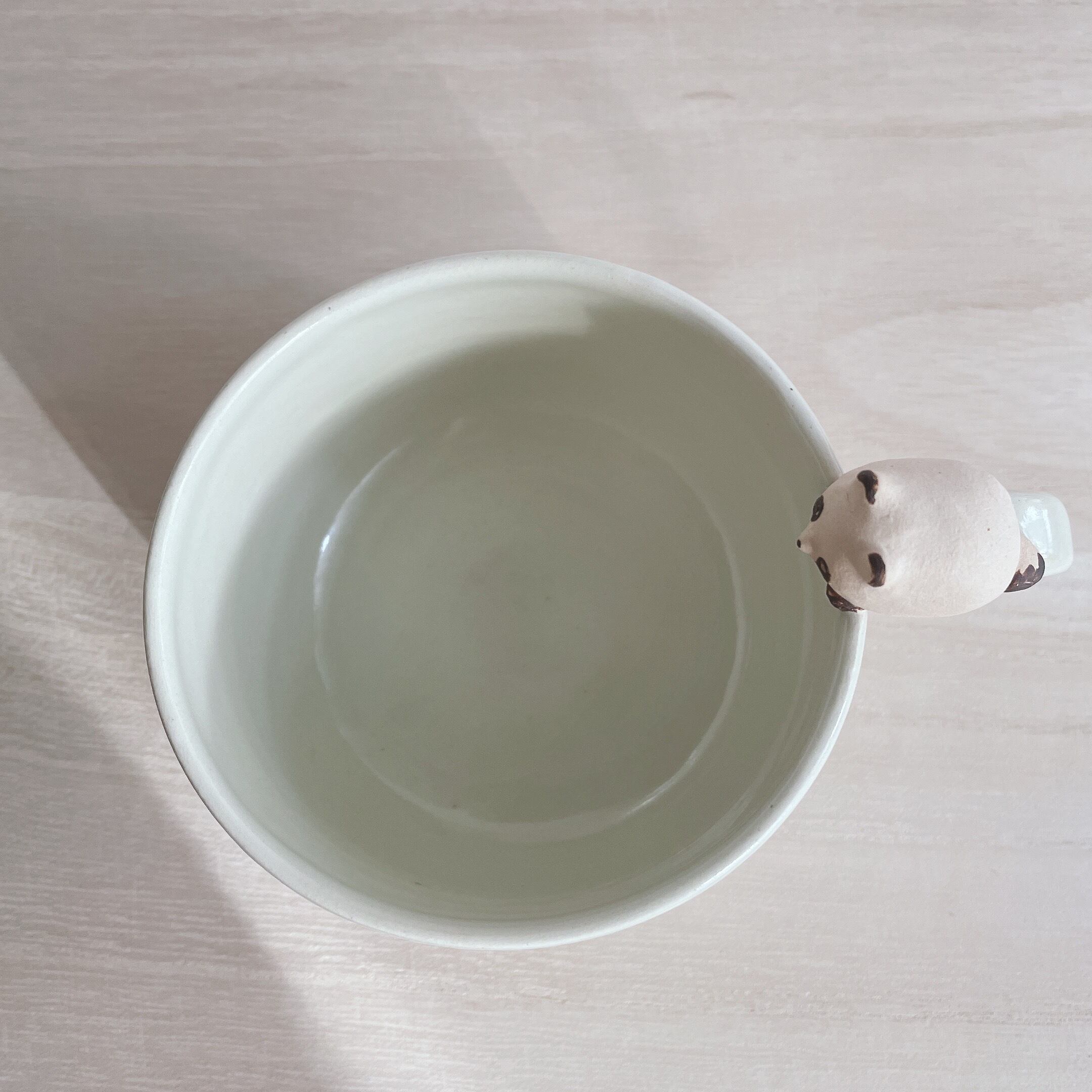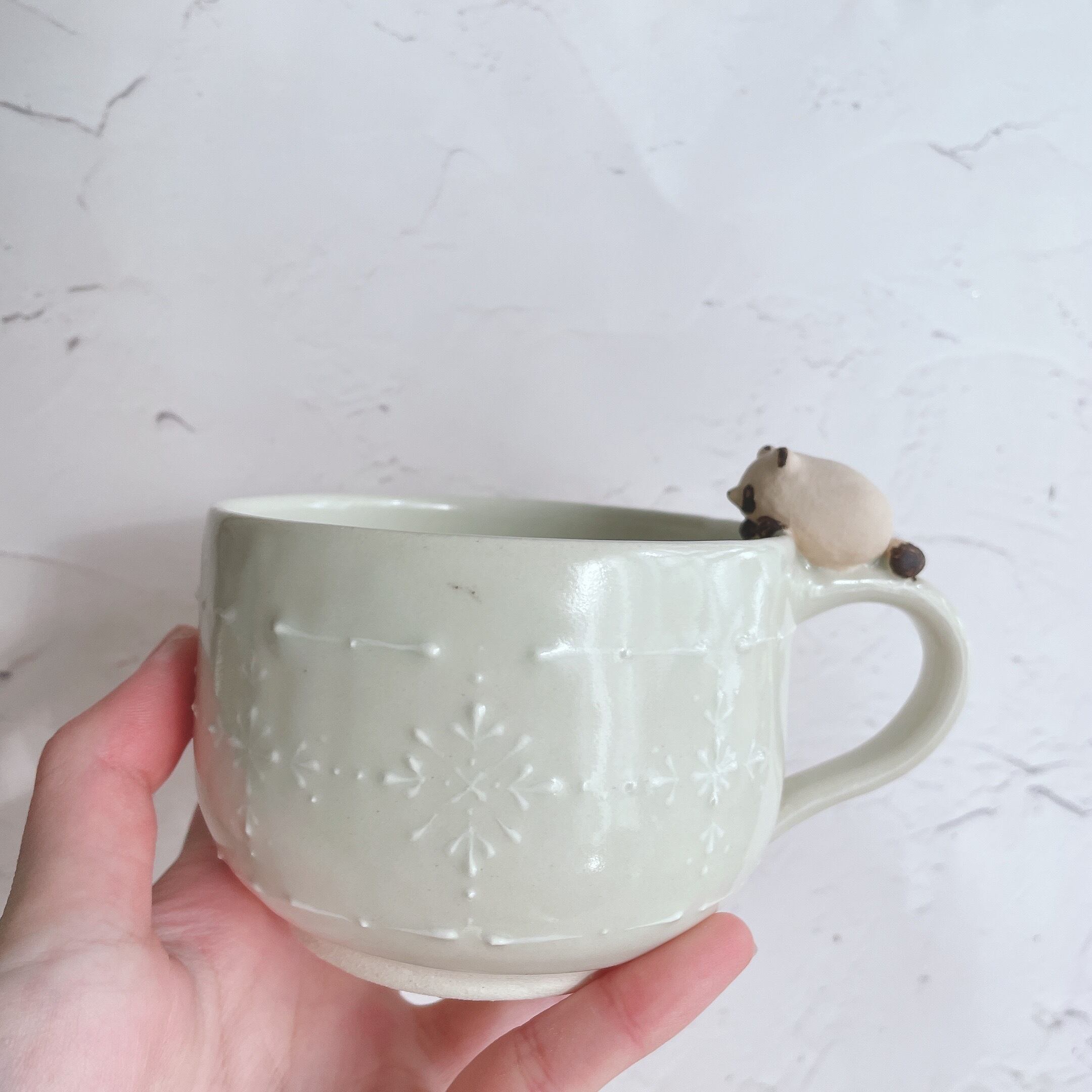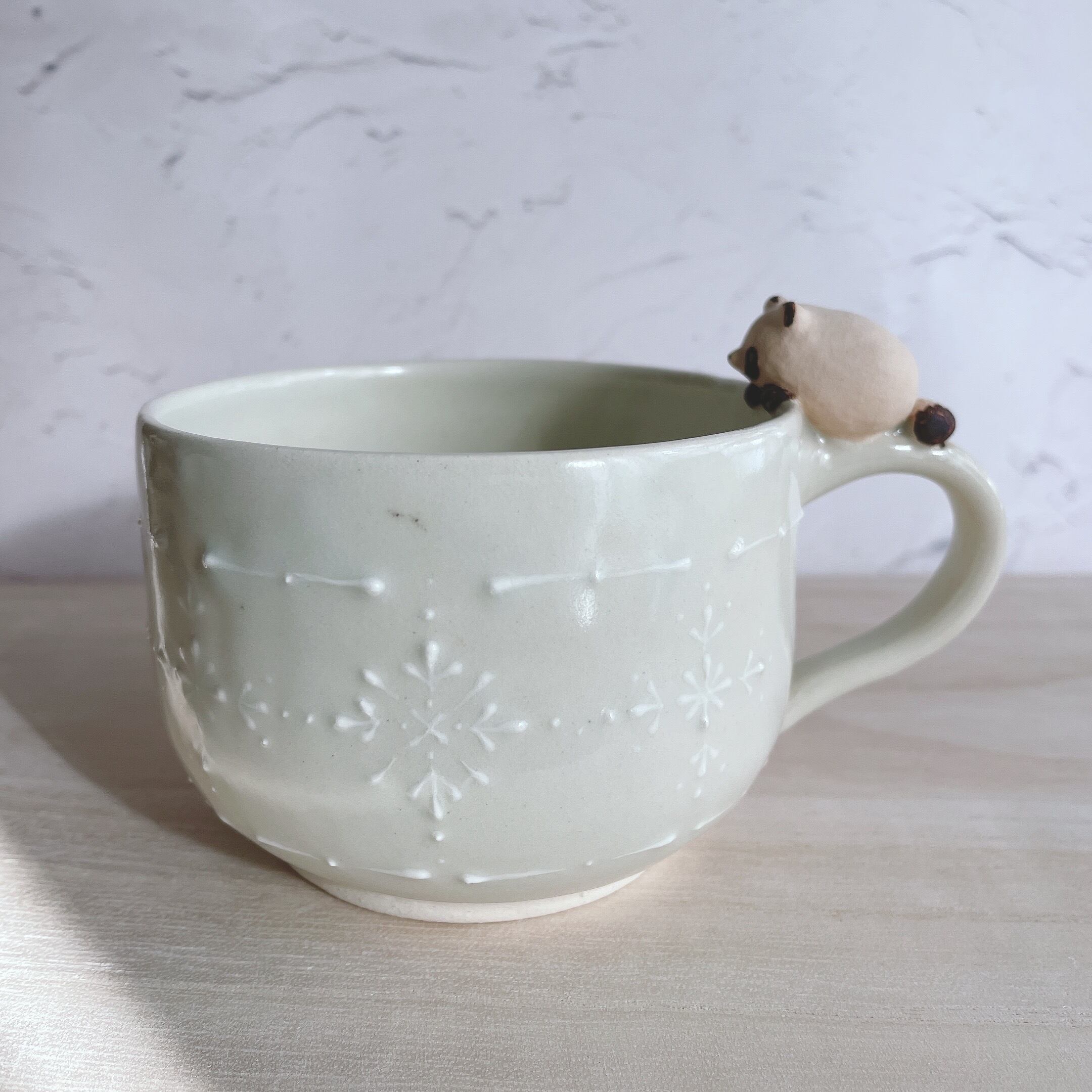 マグカップ部分にはいっちん技法を用いて一つ一つ異なる模様を描いるため、どれも一点ものとなっております。