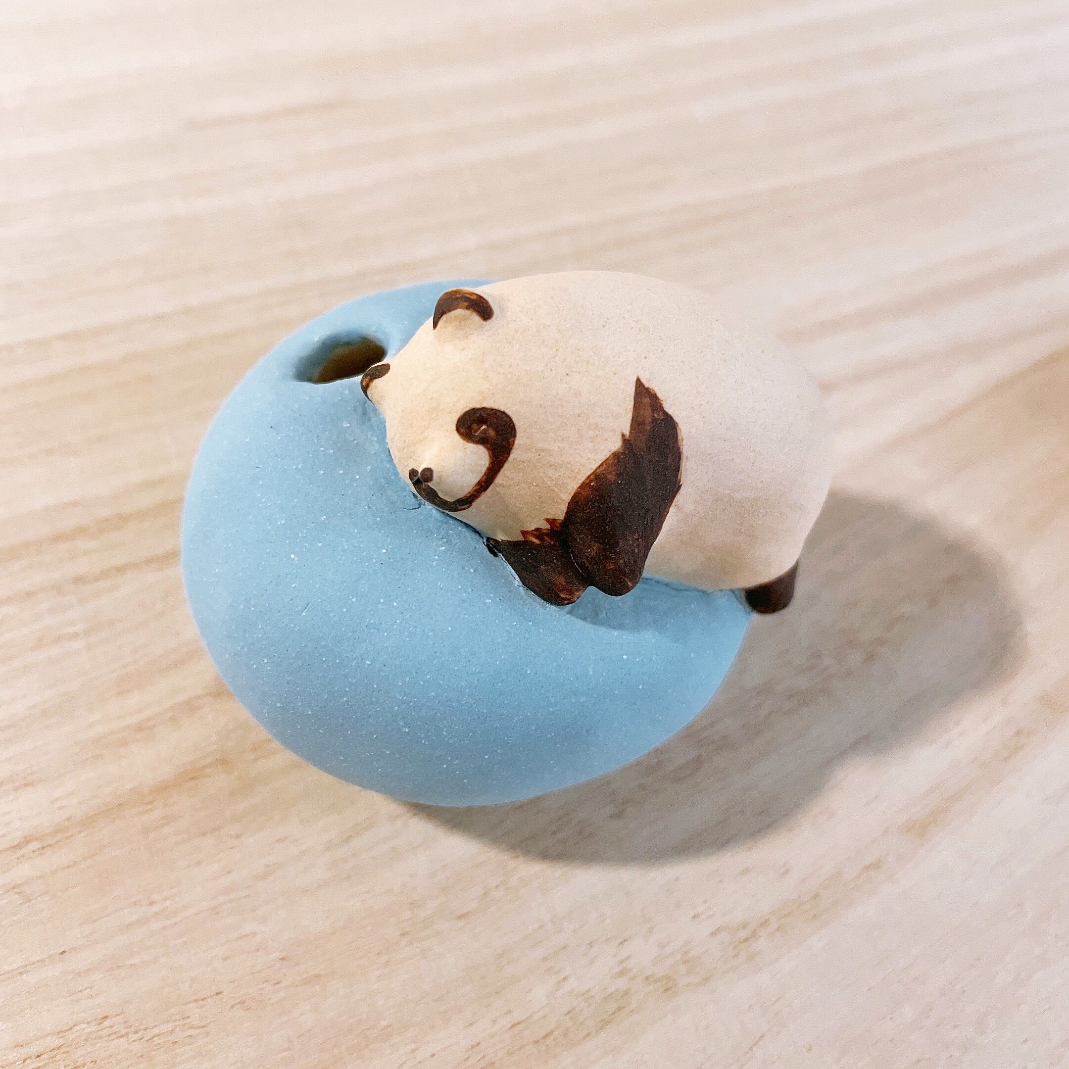 ブルーのみクッション上部に穴が開いていて一輪挿しのようにしてお使いいただけます。素焼き素材のためドライフラワー用となりますが、ぜひかわいいお花をさしてあげてください。