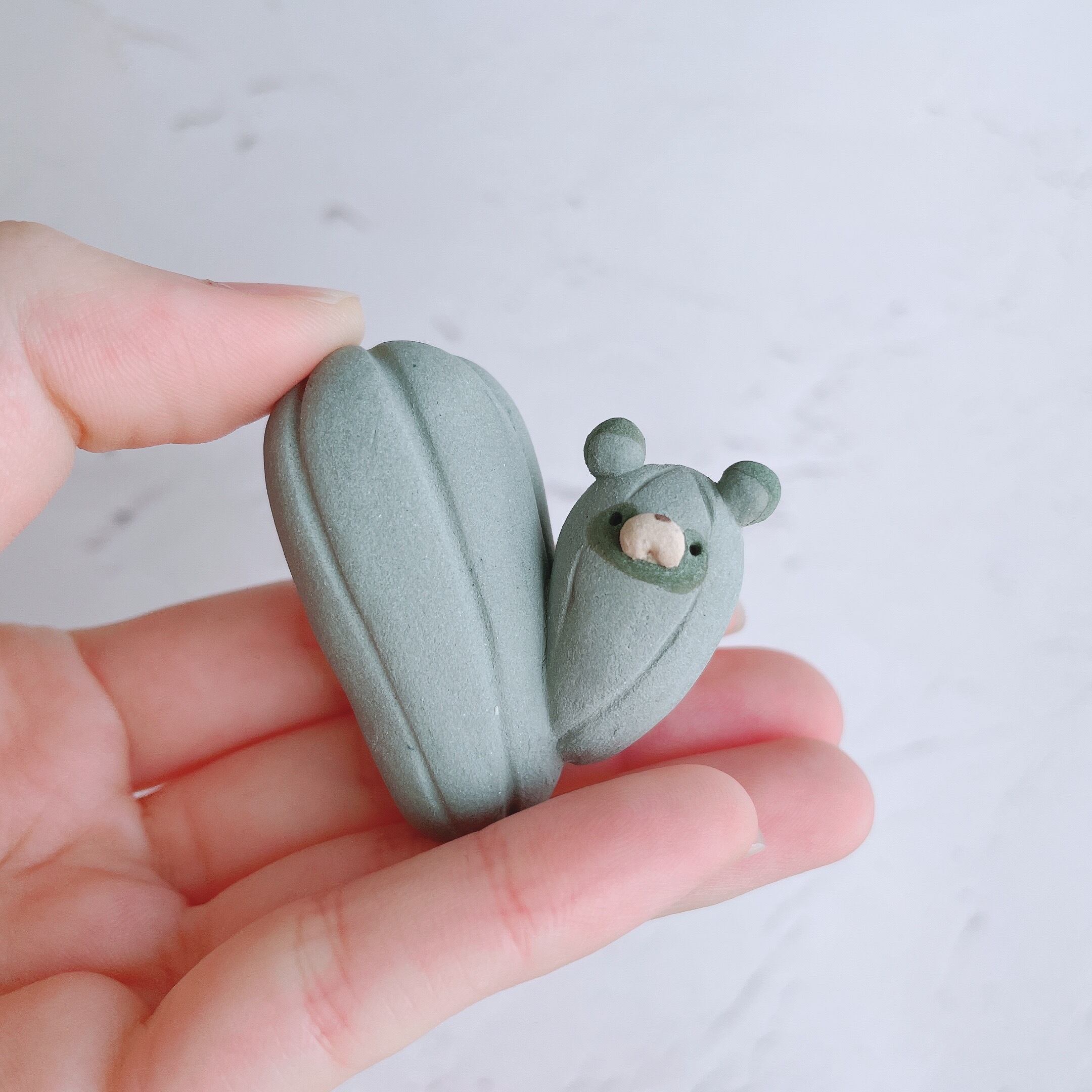 サボテンに化けたたぬきたちの置物です。