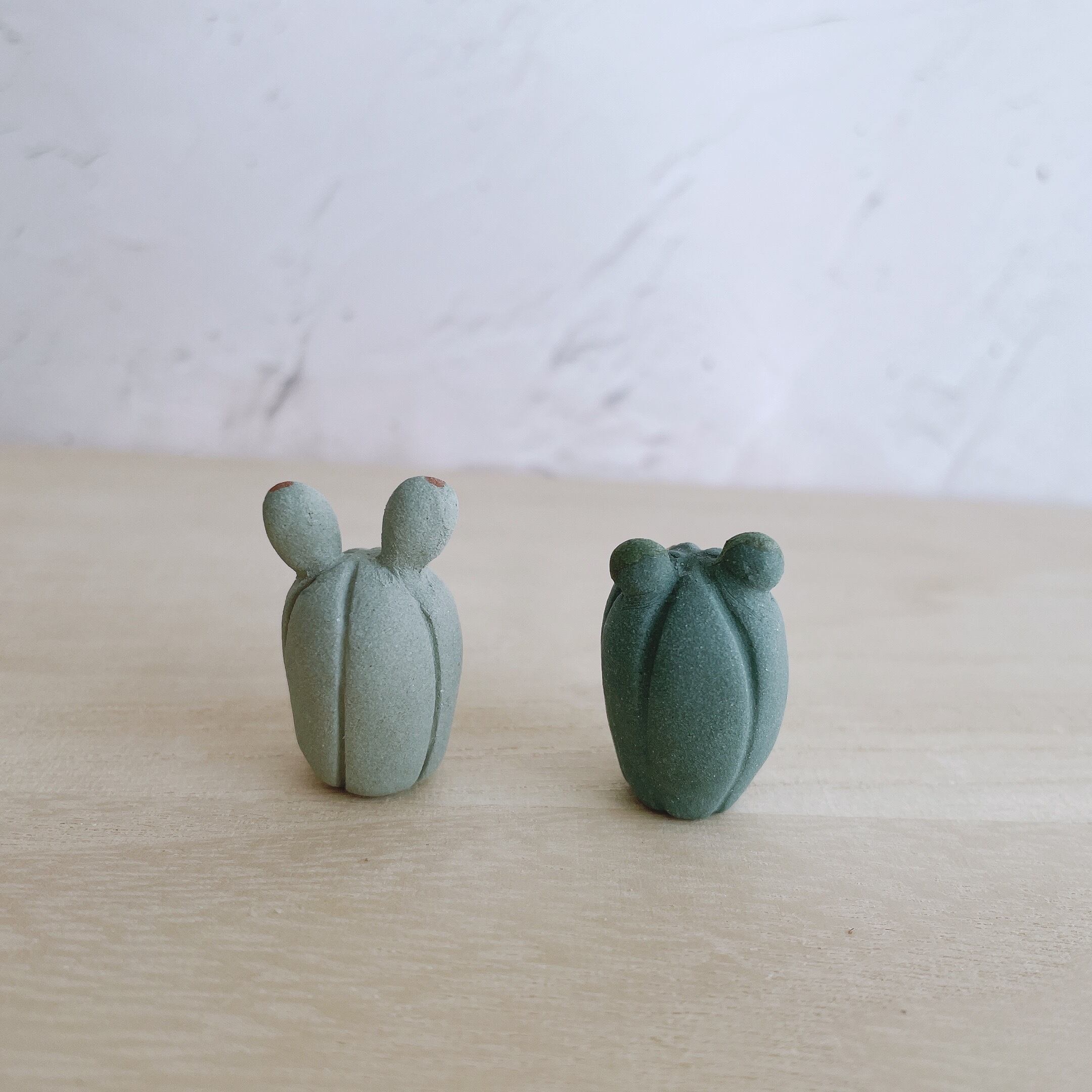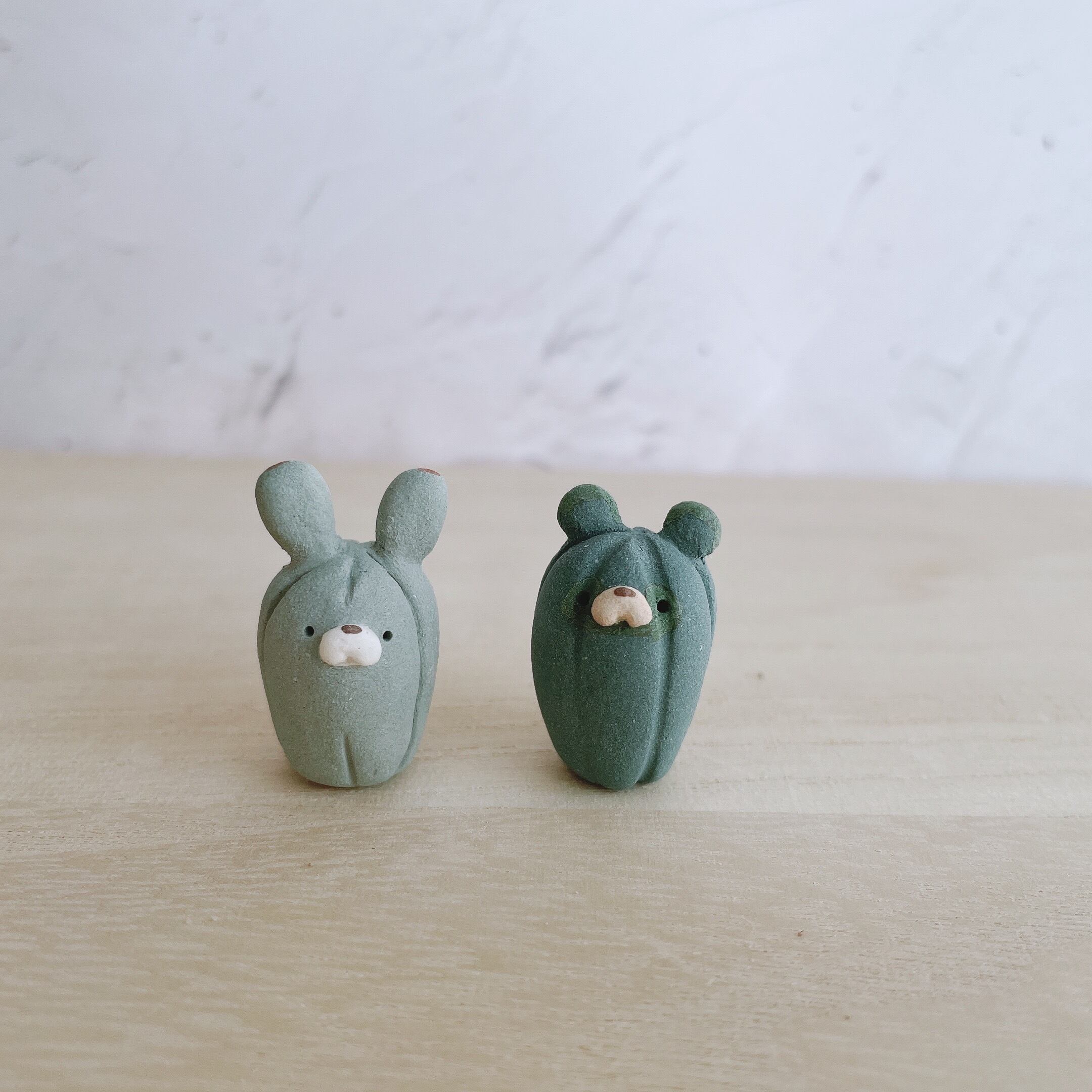 サボテンに化けたたぬきたちの置物です。