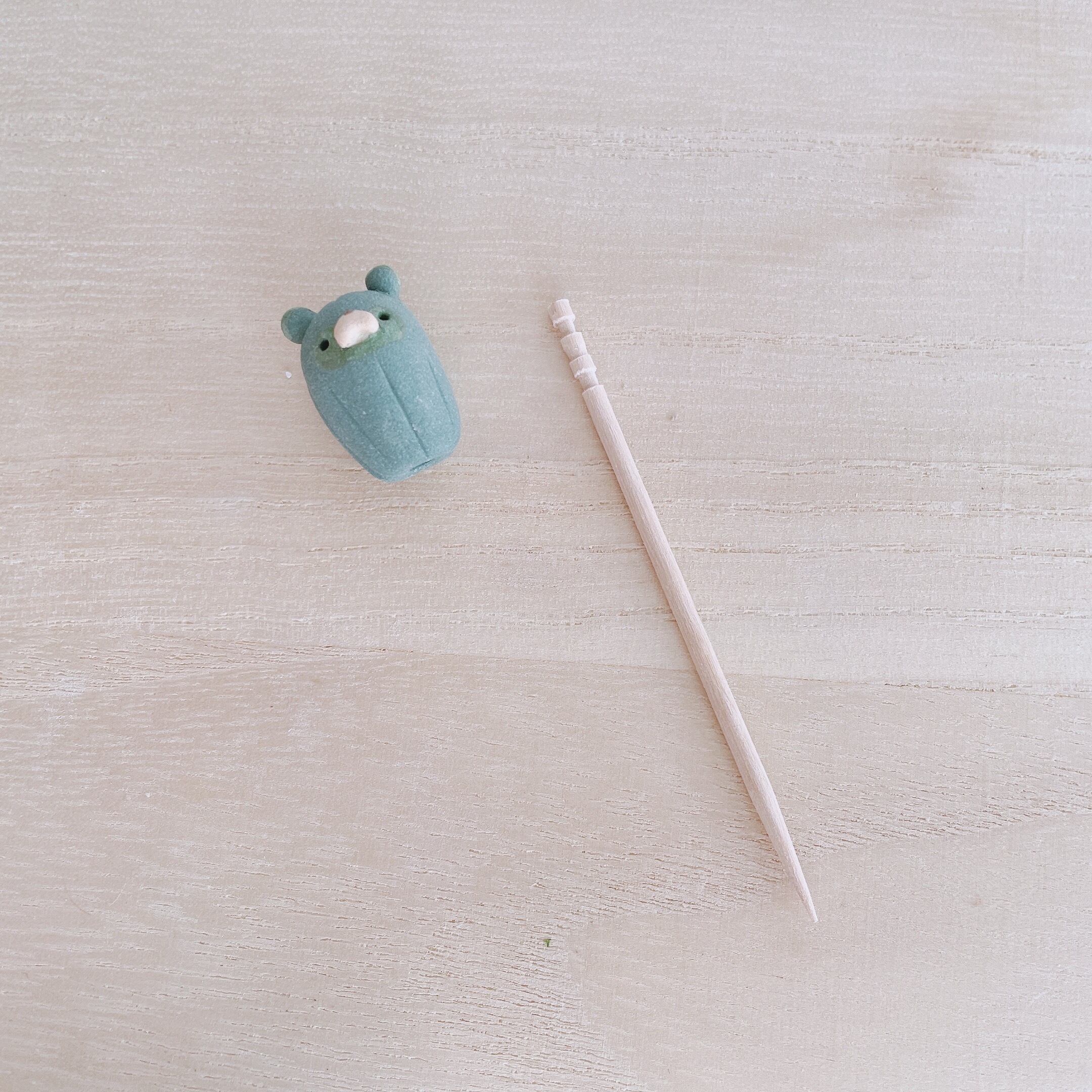 自立が難しいので爪楊枝で土に刺して固定するのがおすすめです。