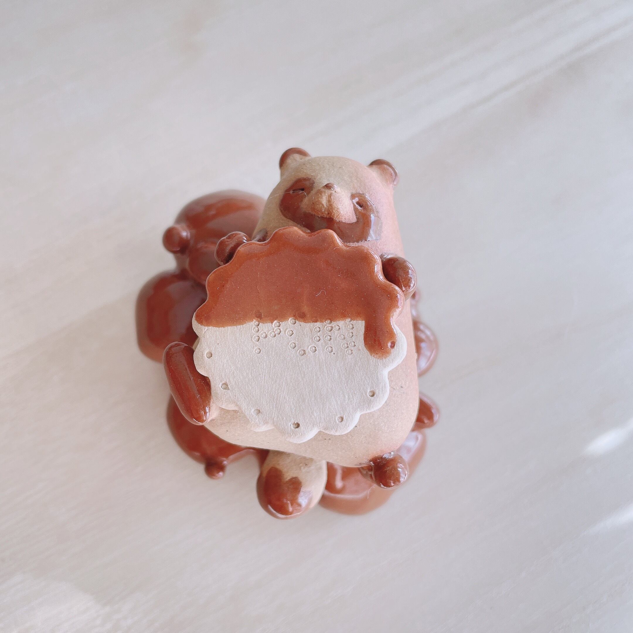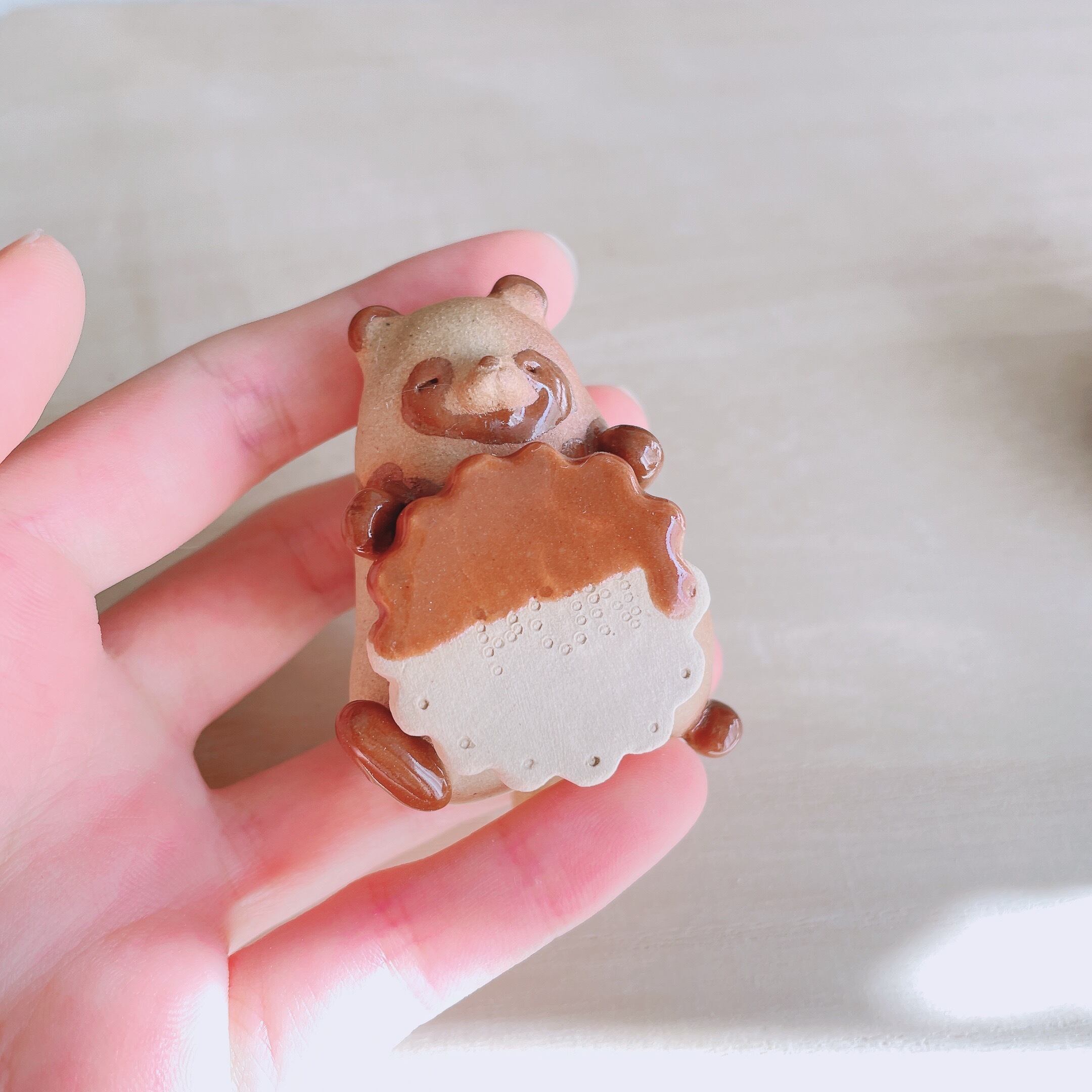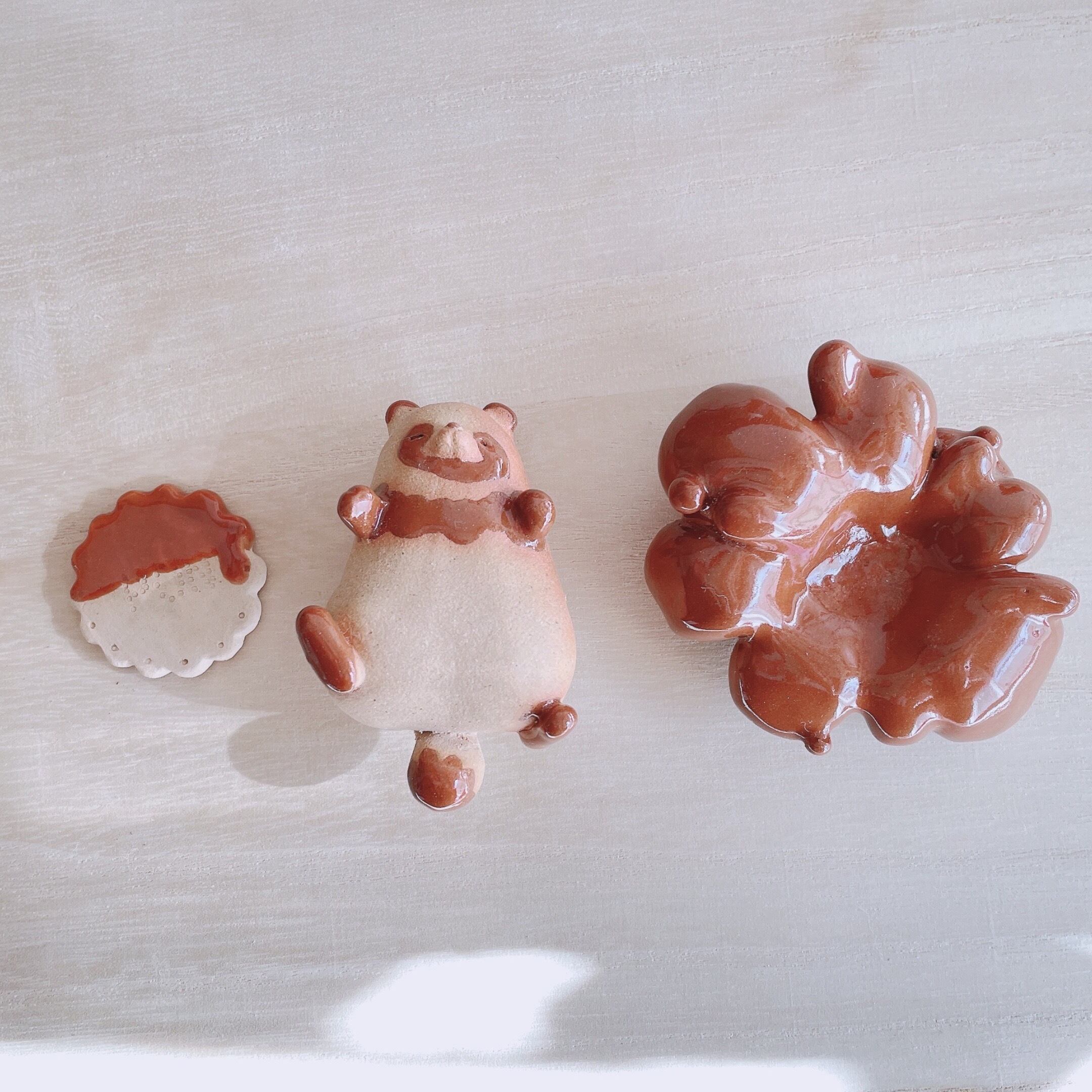 土台のチョコ、たぬき、クッキーの3点と固定用の丸い両面シールが付属します。