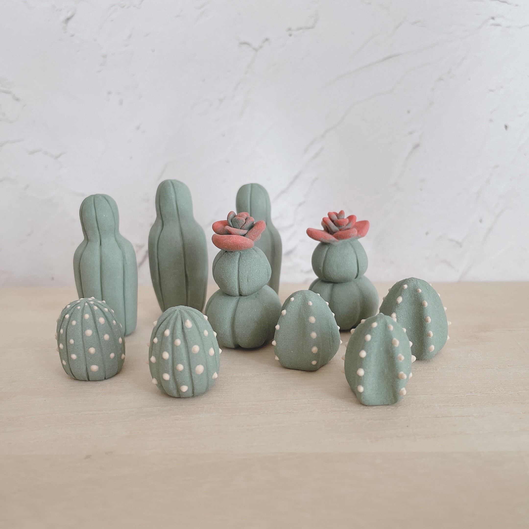 左二つが丸とげサボテン、右3つが星とげサボテンです。