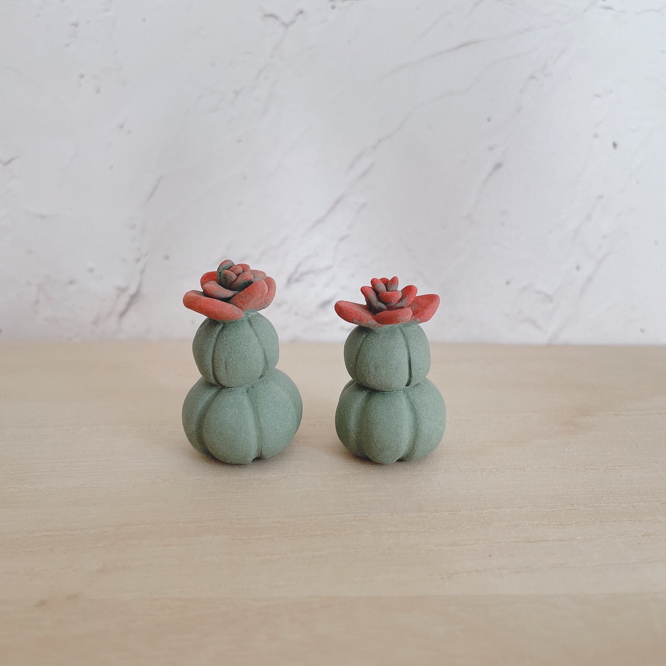 お花の咲いたサボテンの小さな置物です。
