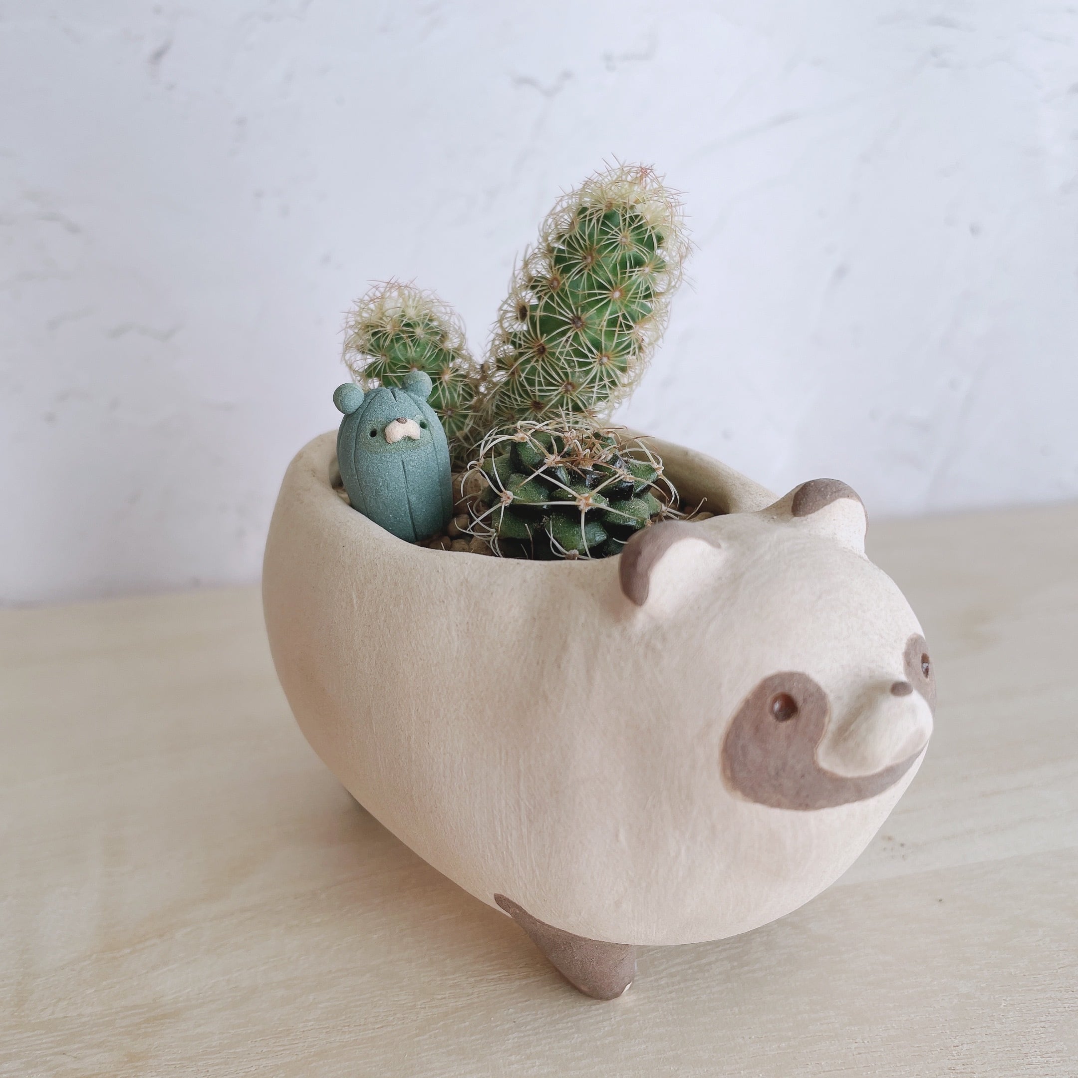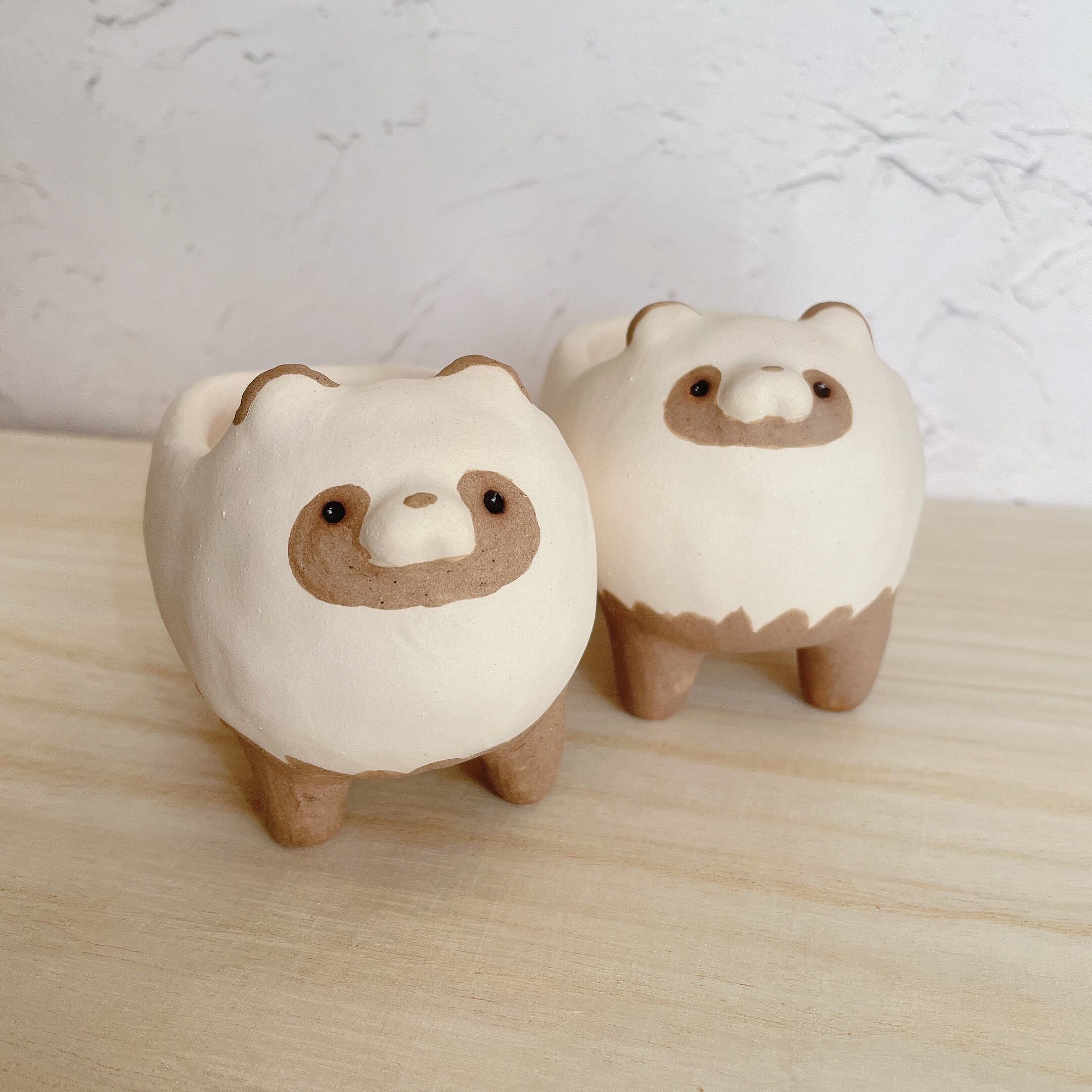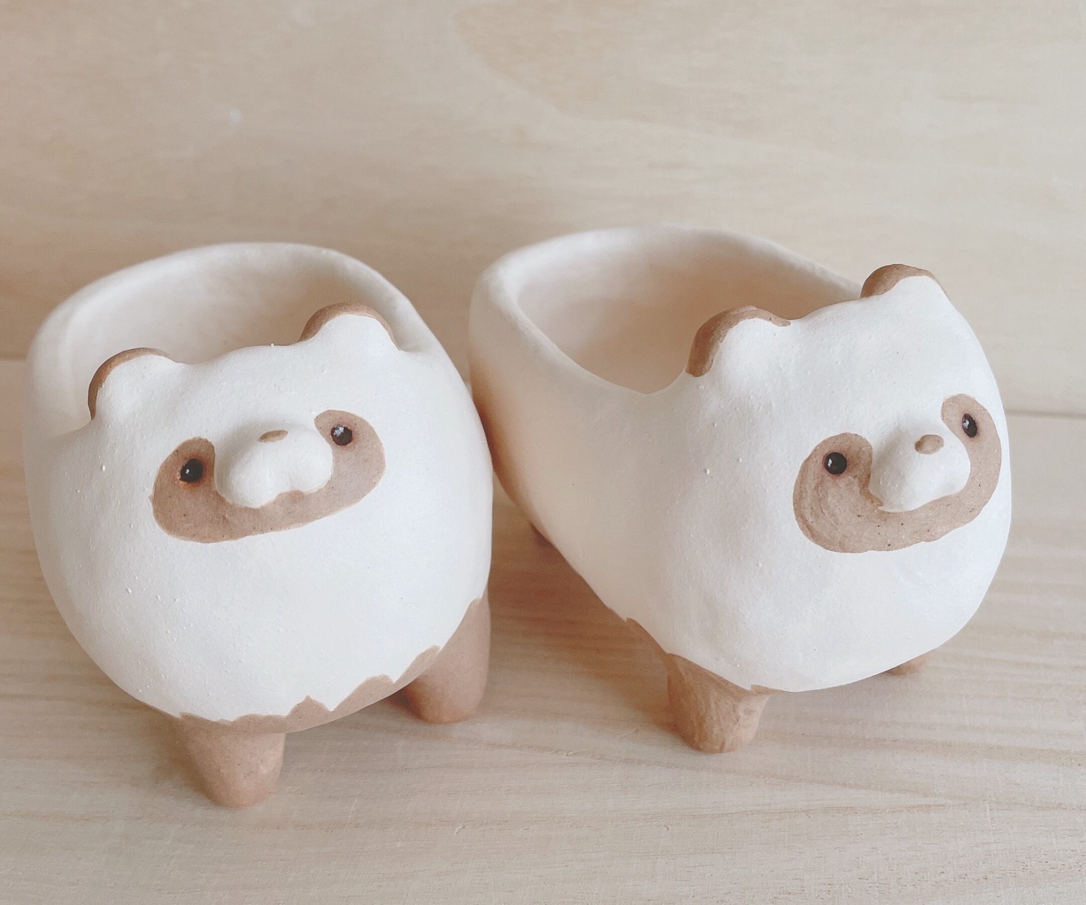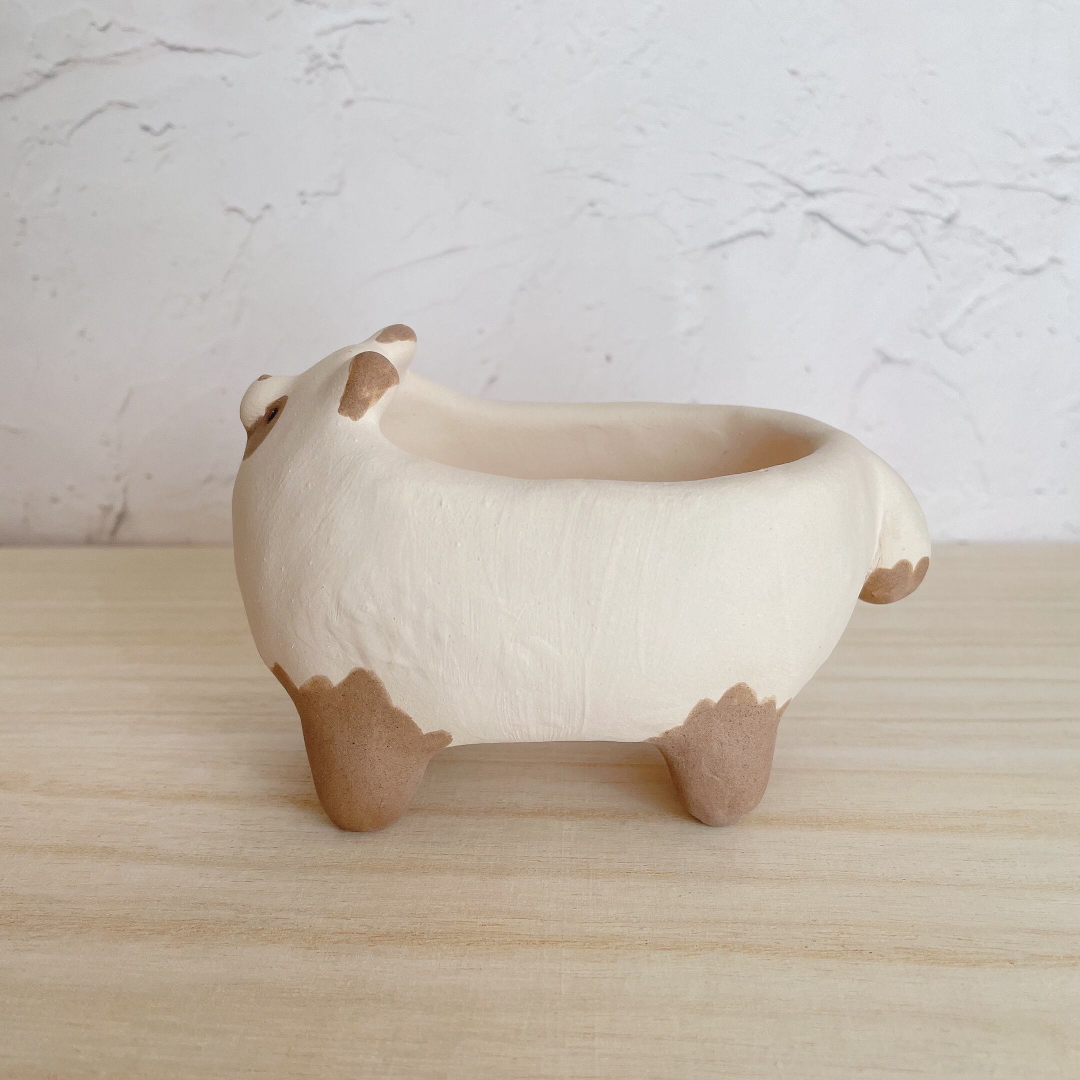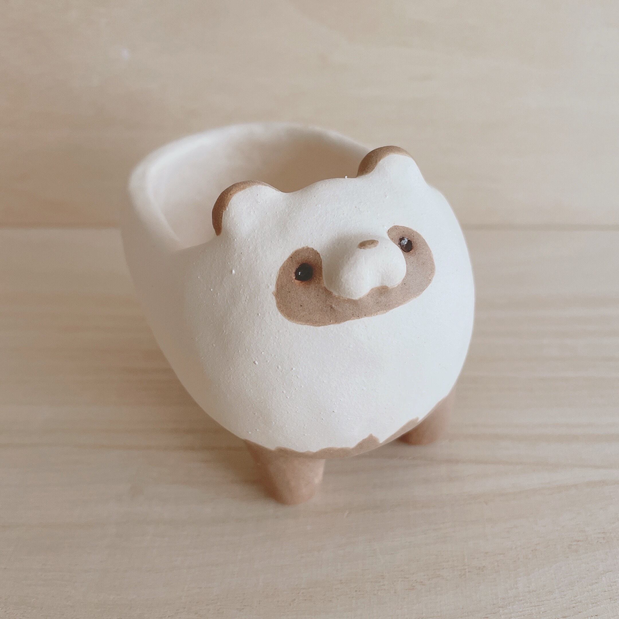 手捻りで作ったたぬきの植木鉢。