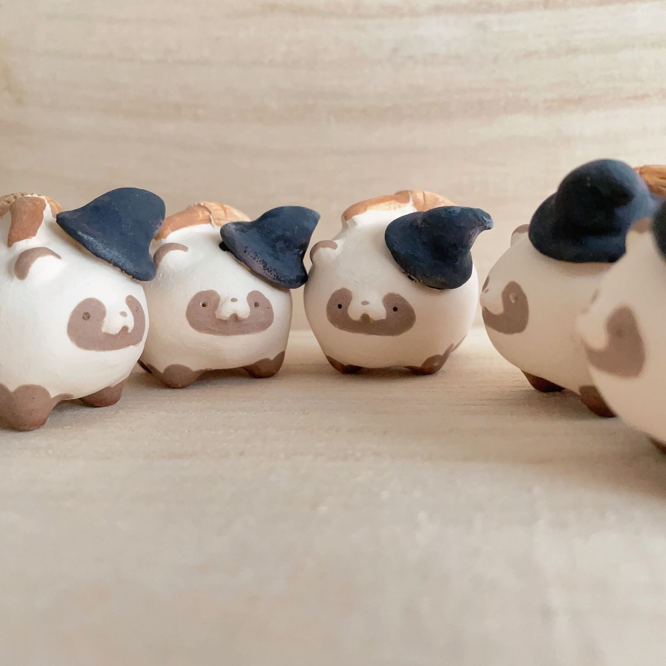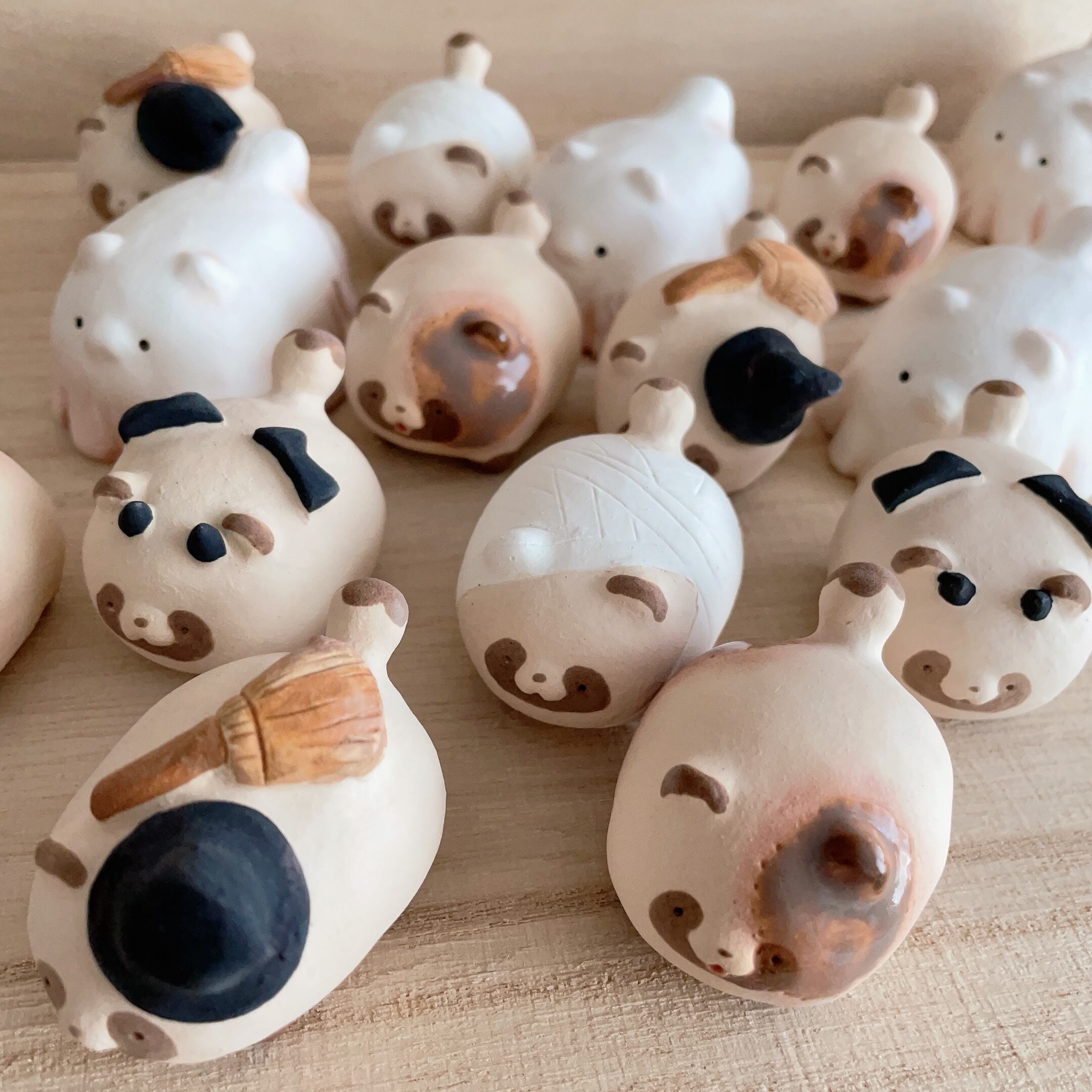 通常の作品と異なり、焼成後にパステル等で汚しや影などを入れています。薄くコーティングをかけていますが、擦れや水分に弱いのでお取り扱いの際はお気をつけください。