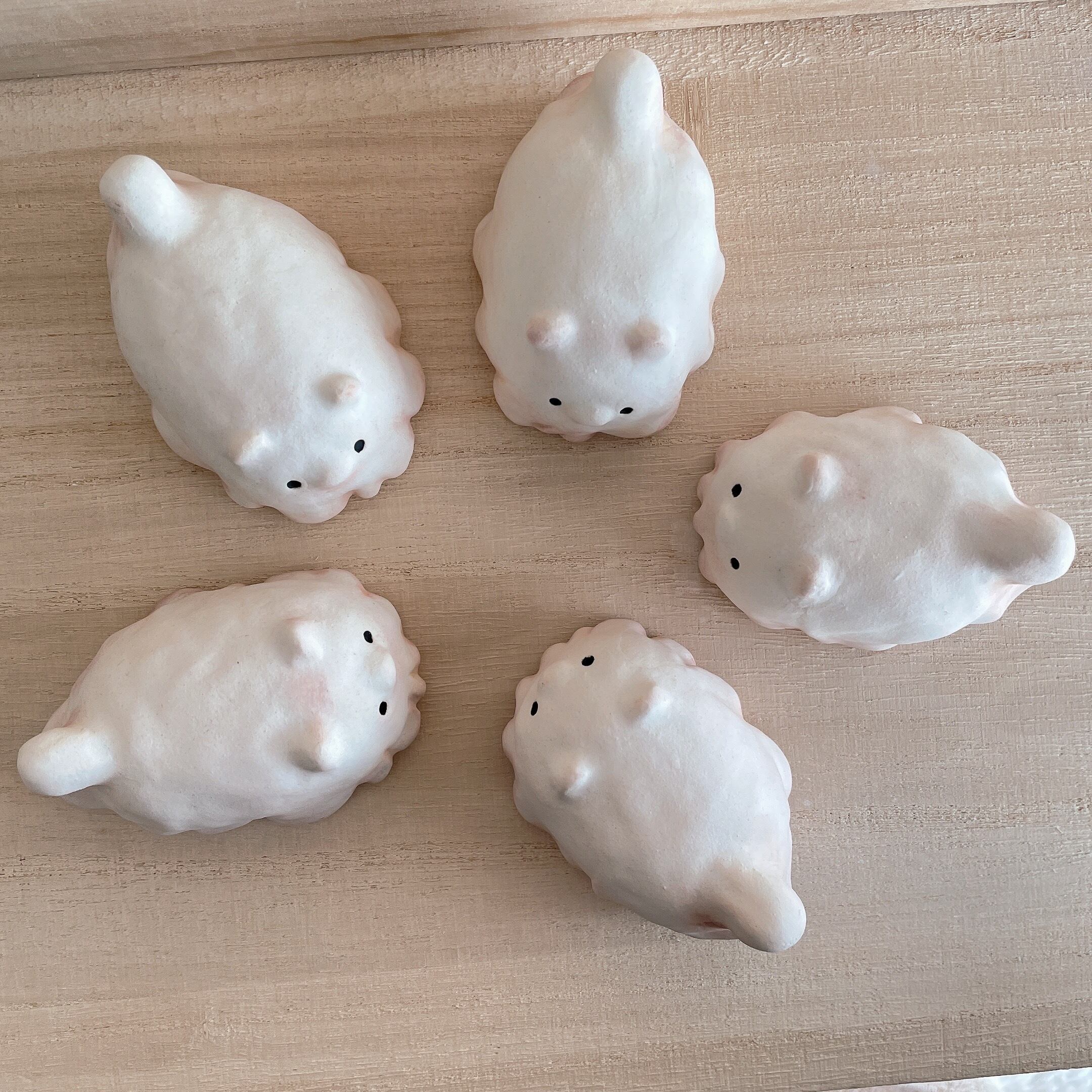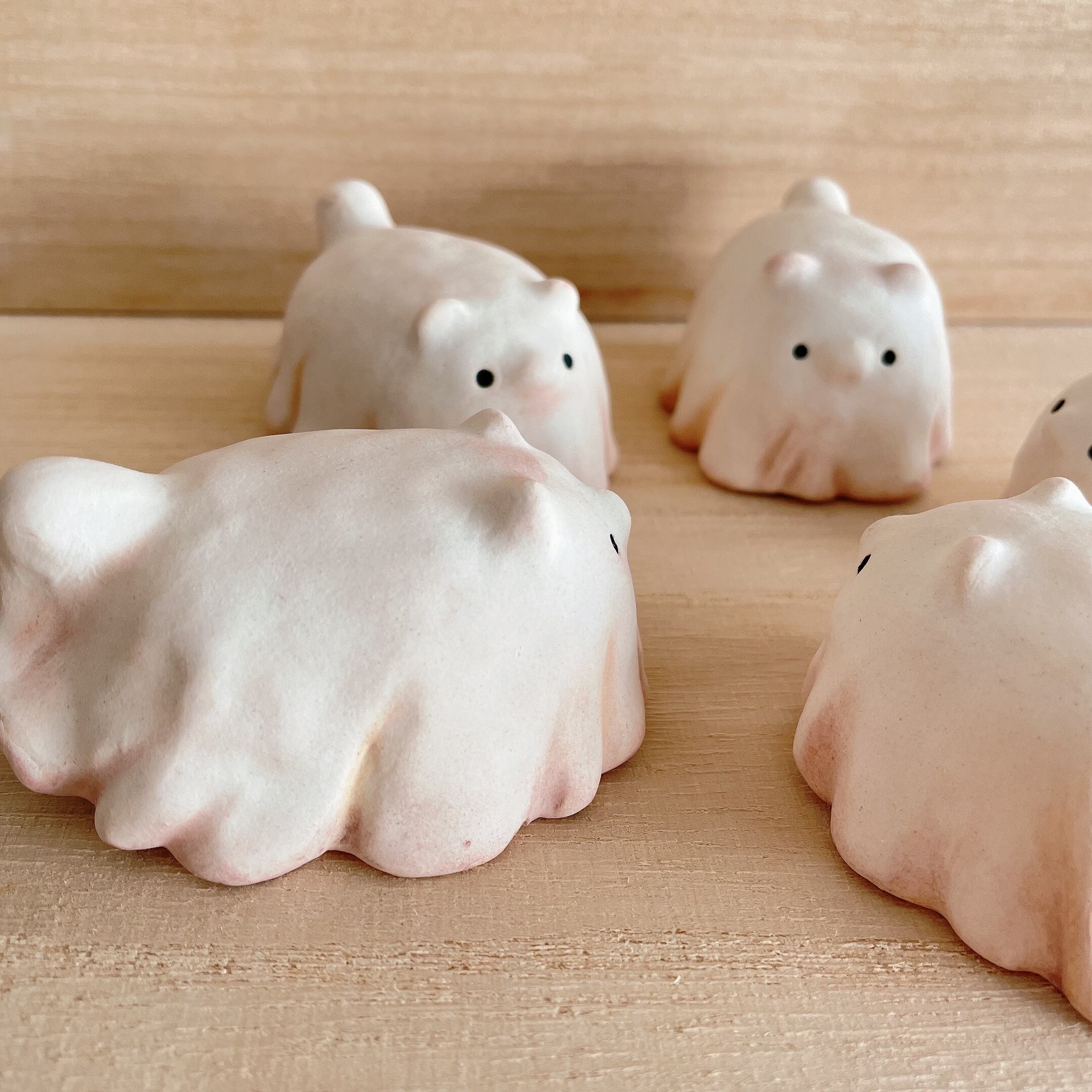 通常の作品と異なり、焼成後にパステル等で汚しや影を入れています。薄くコーティングをかけていますが、擦れや水分に弱いのでお取り扱いの際はお気をつけください。