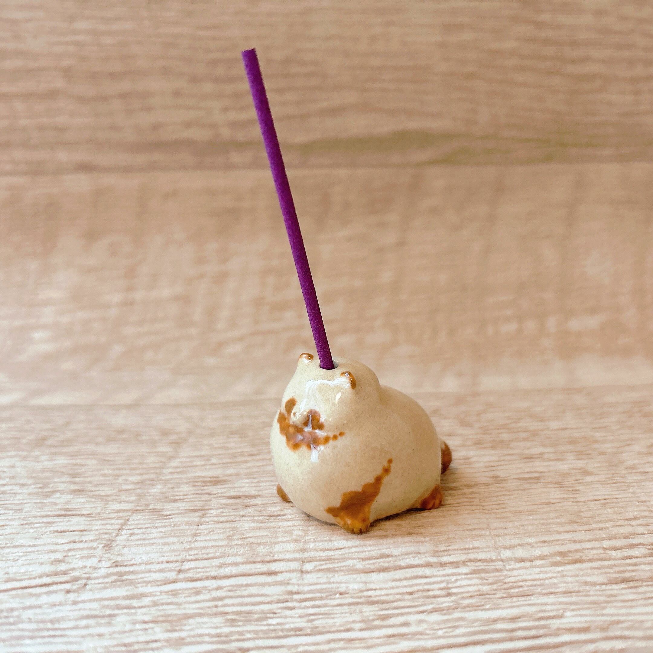 ちょもっと座ったたぬきの頭にお香を立てられる穴が開いています。
