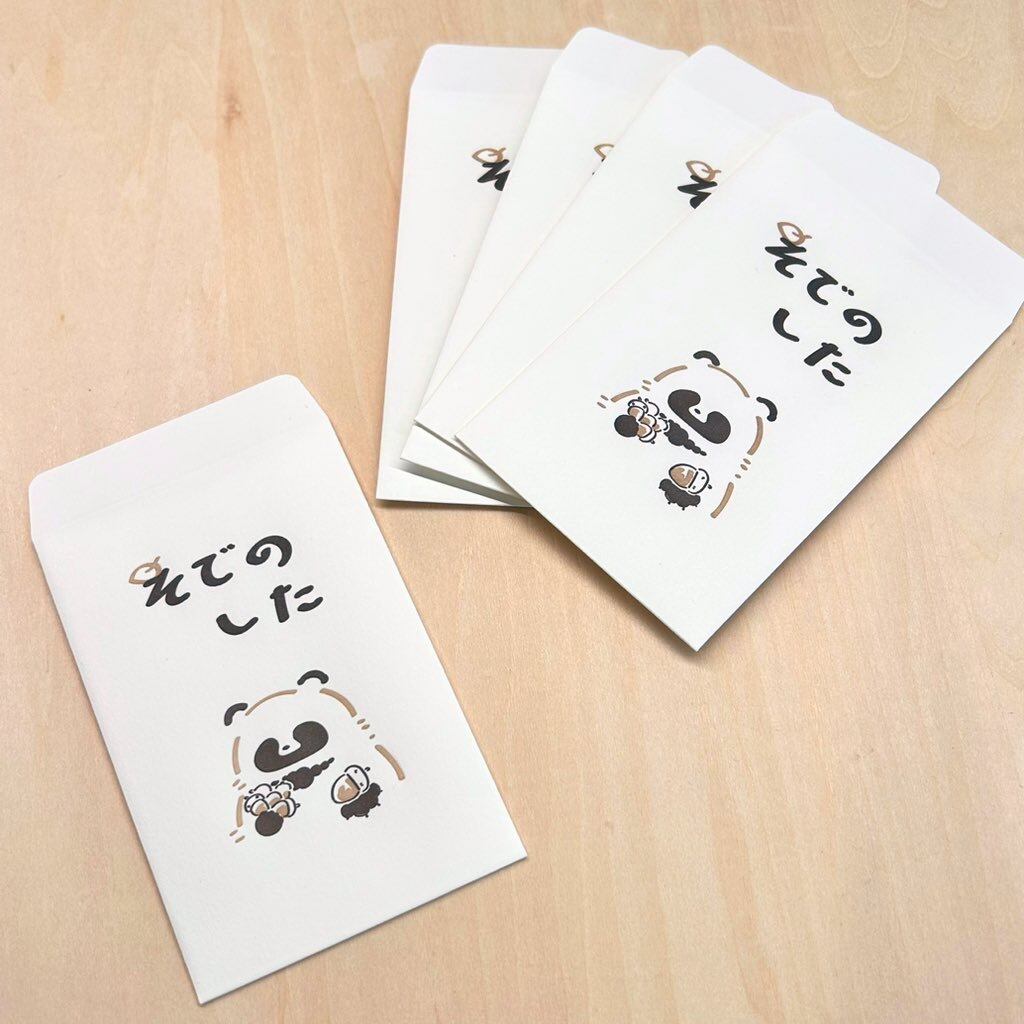 まんまるどんぐりをわいろにしているたぬきのぽち袋です