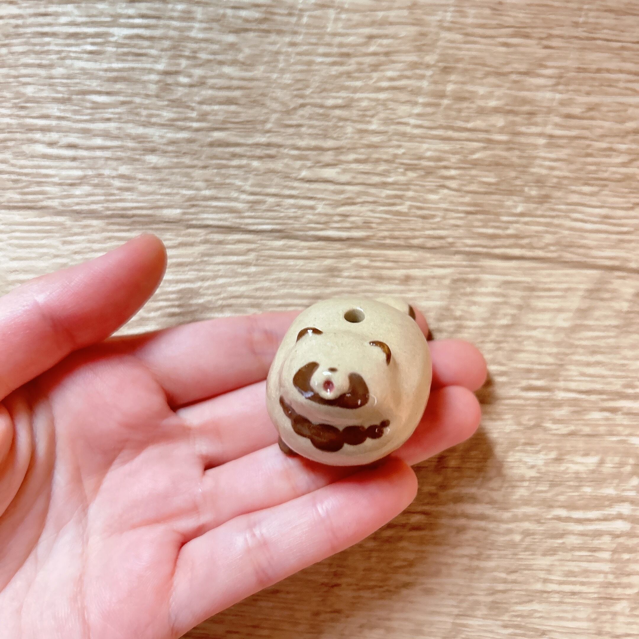 ちょもっと座ったたぬきの背にお香を立てられる穴が開いています。