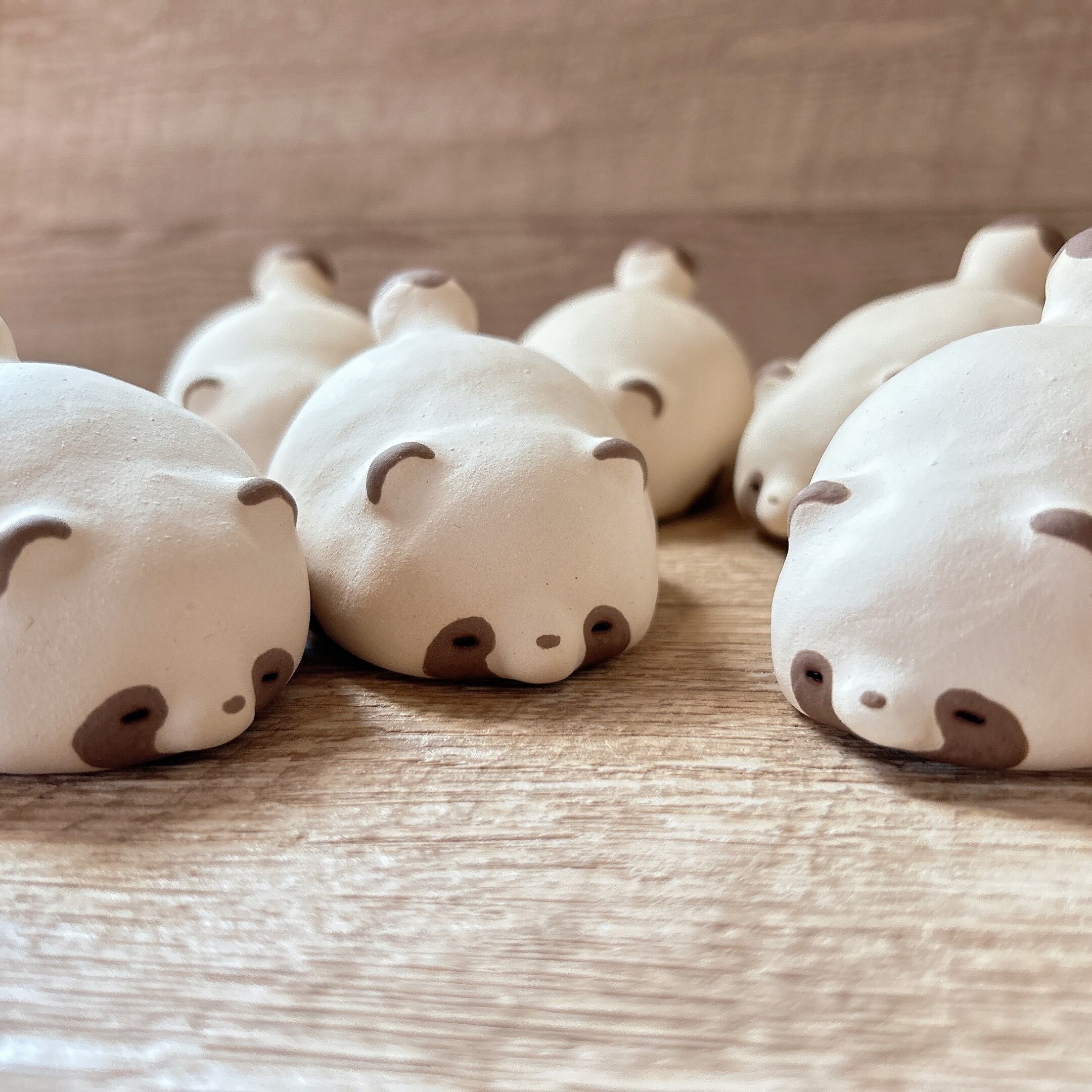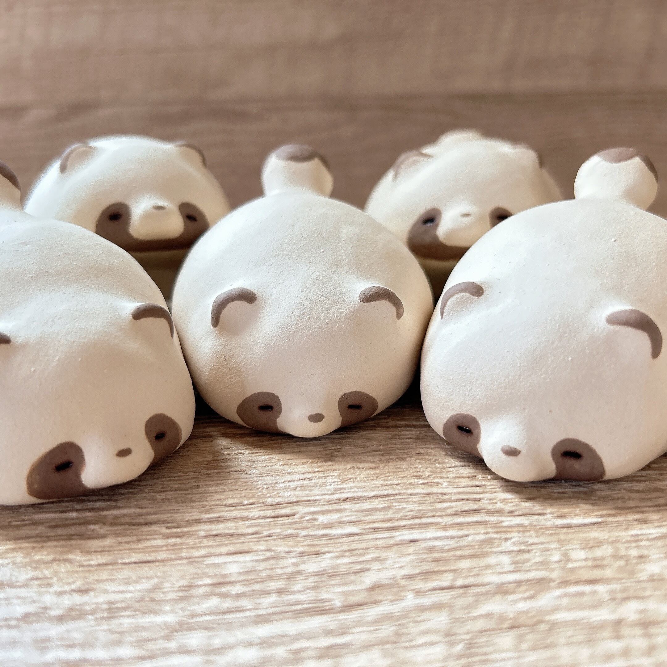 警戒心0ですやすや眠るたぬきの置き物です。