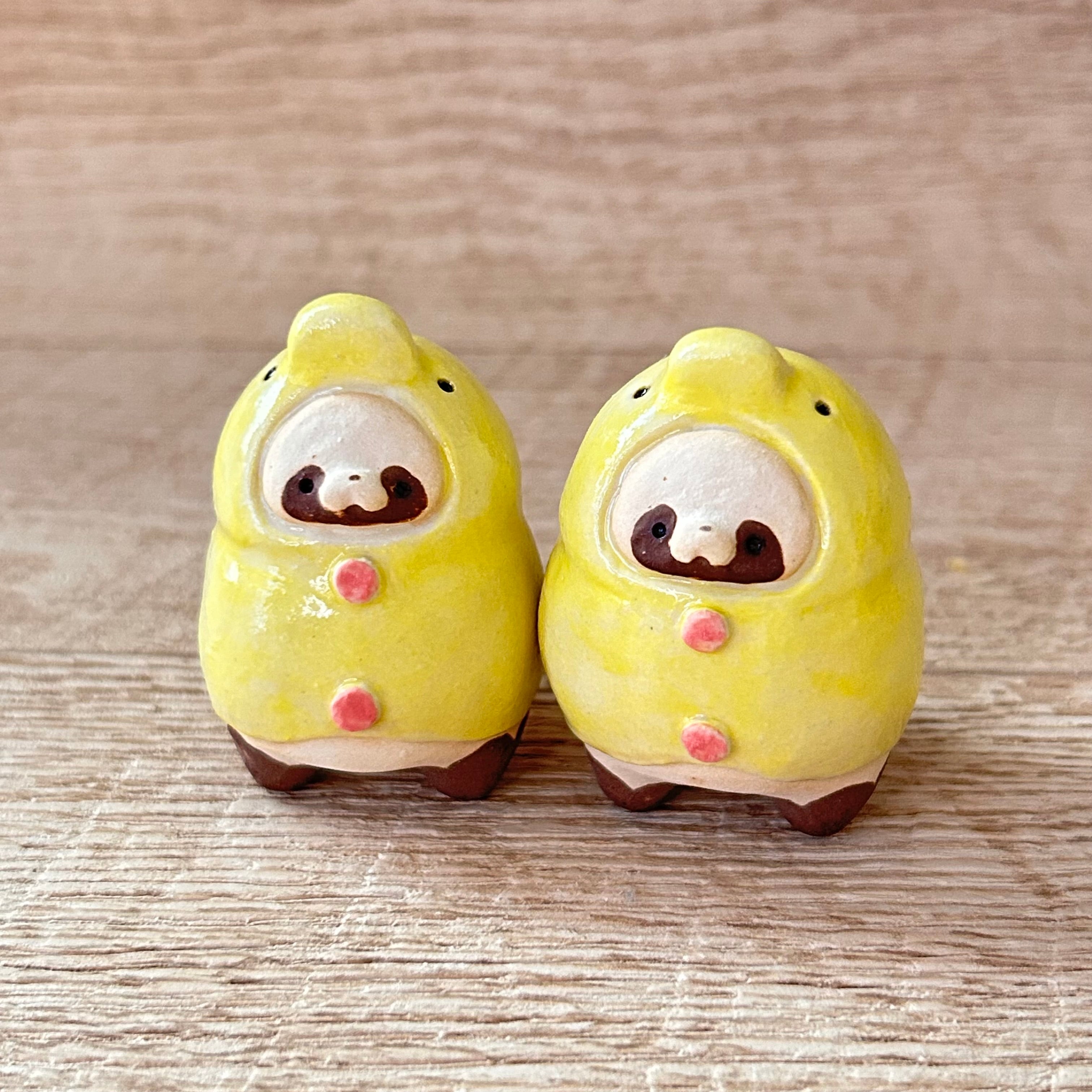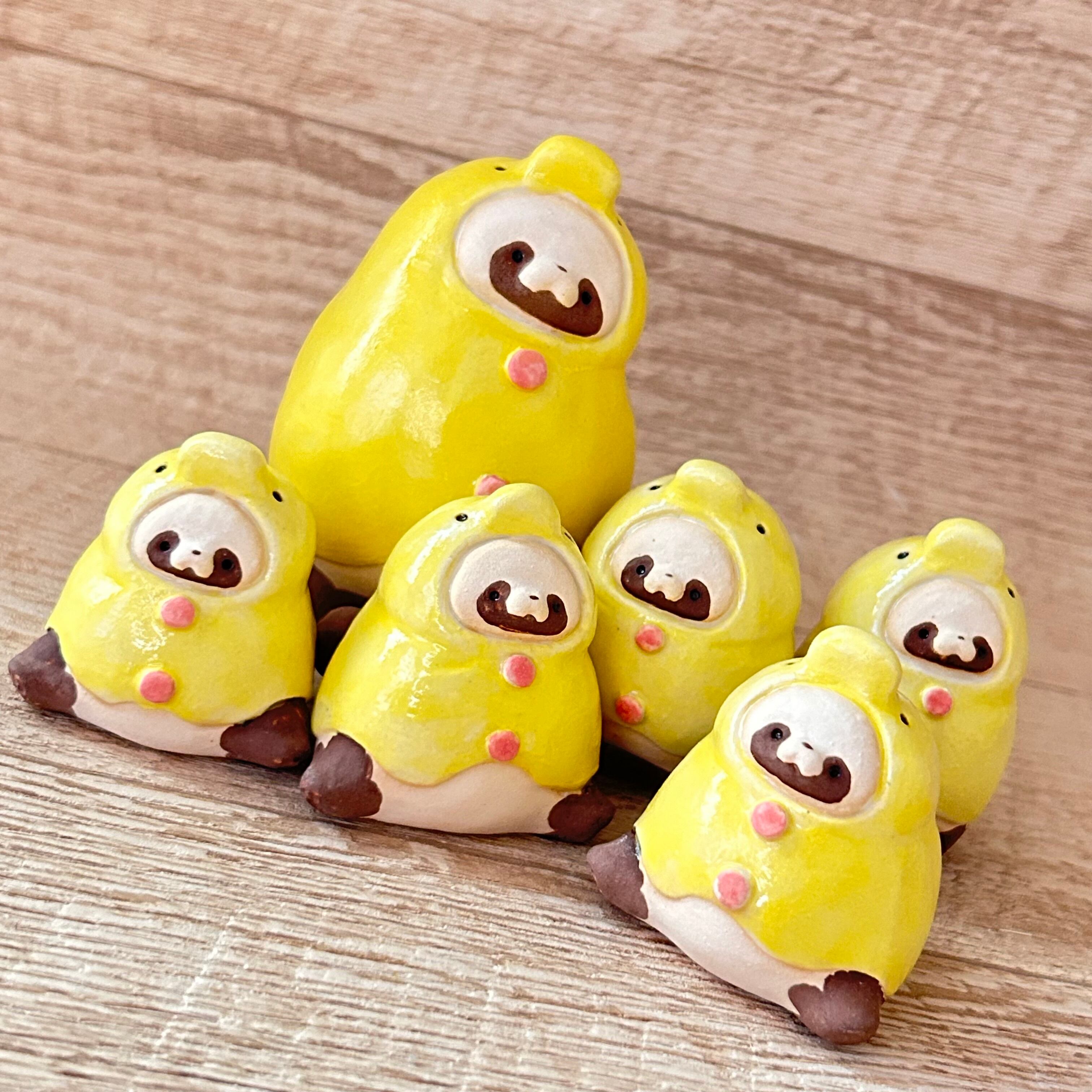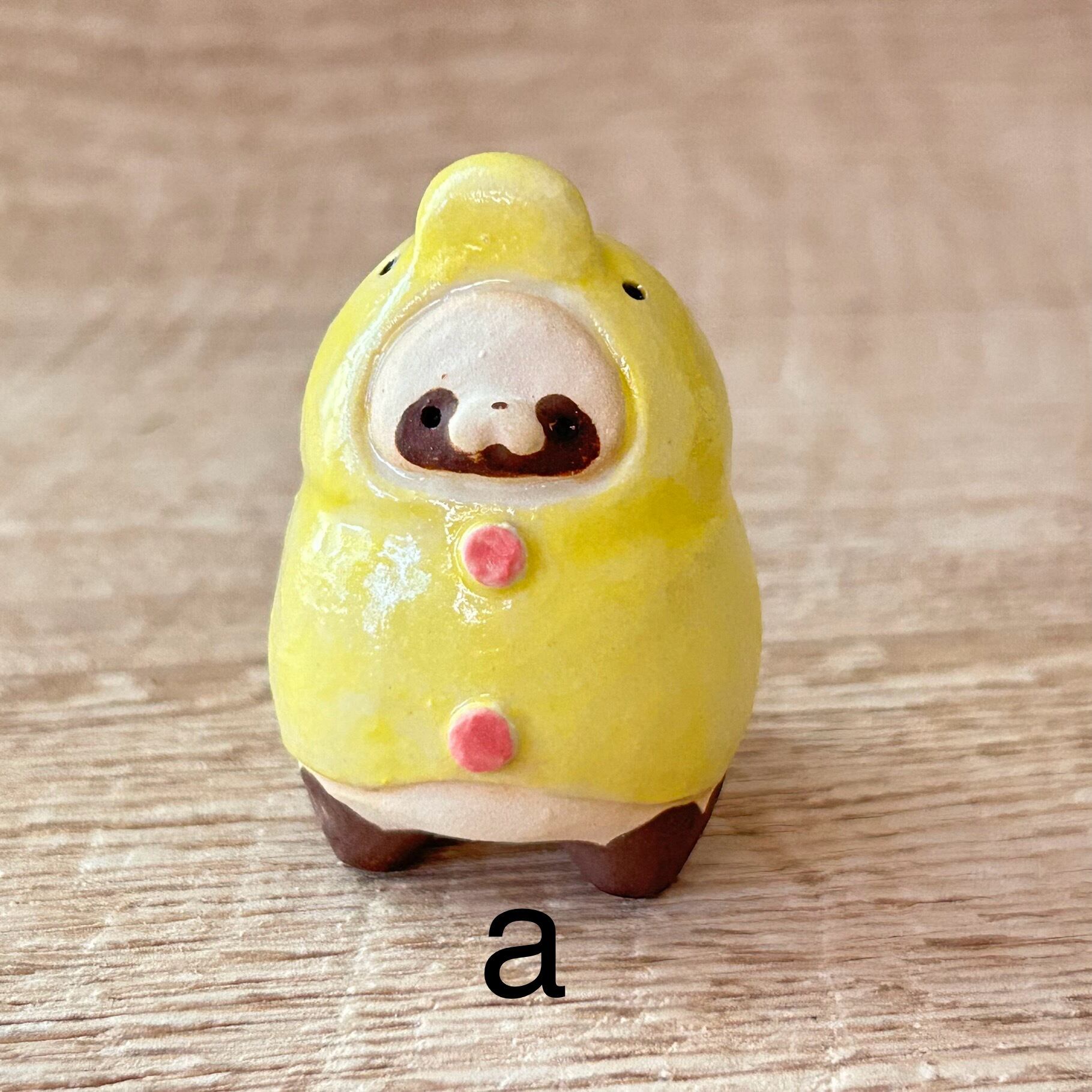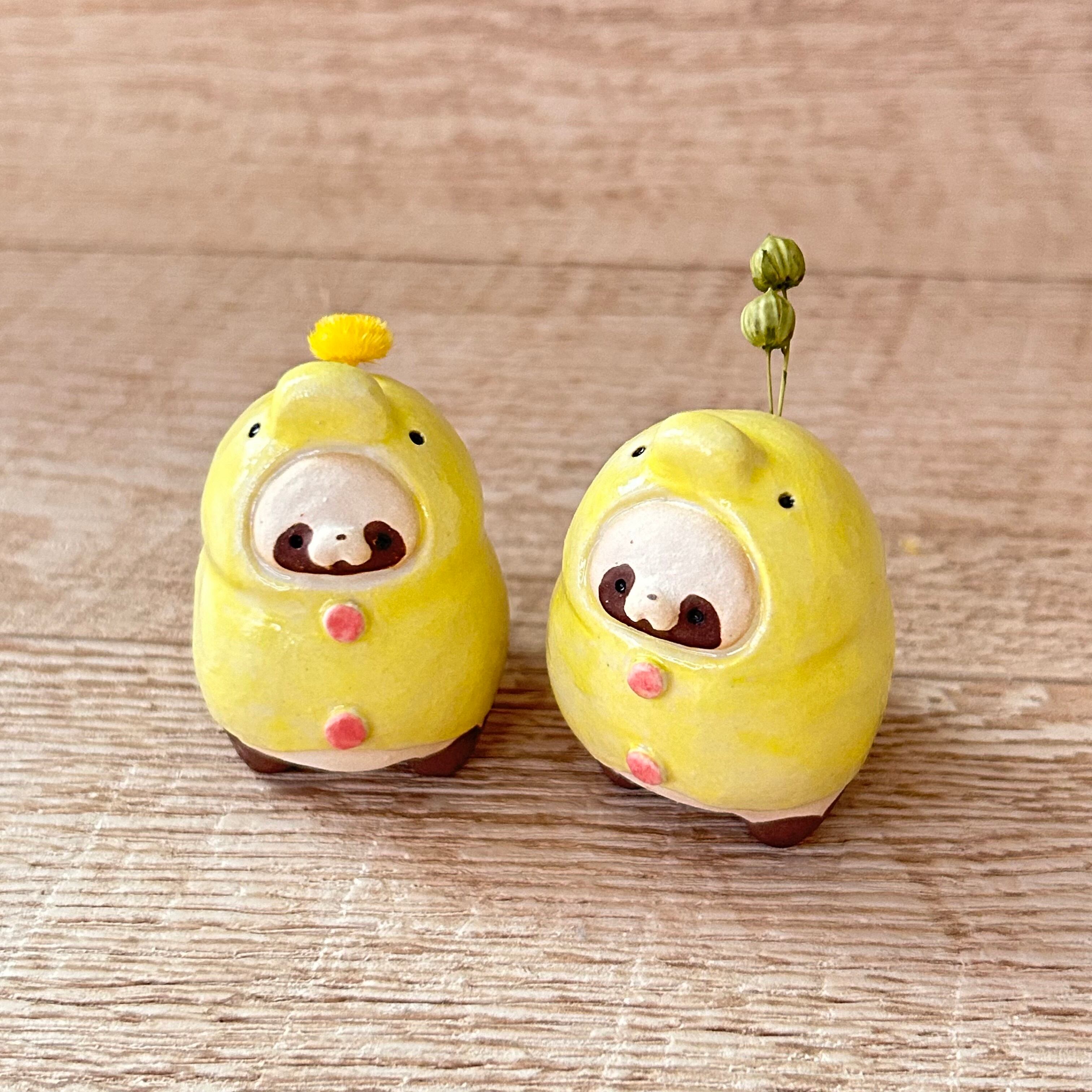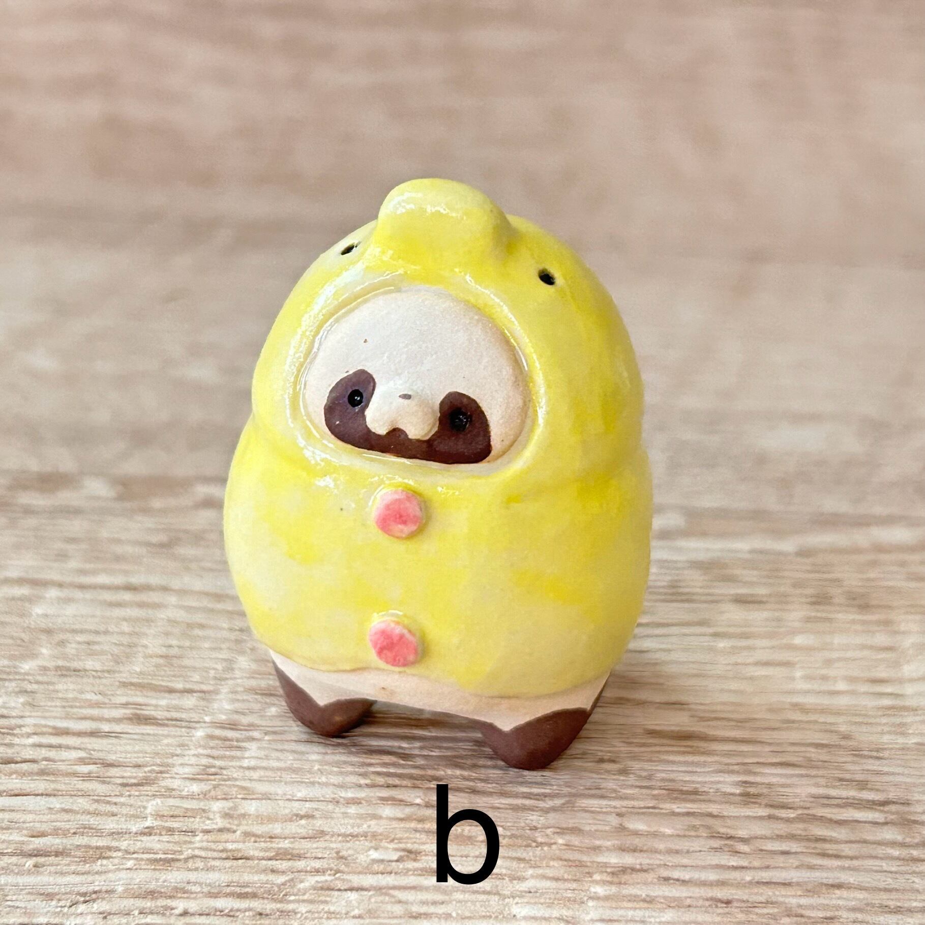 梅雨に向けてひよこのポンチョ風かっぱを手に入れた小さなたぬきです