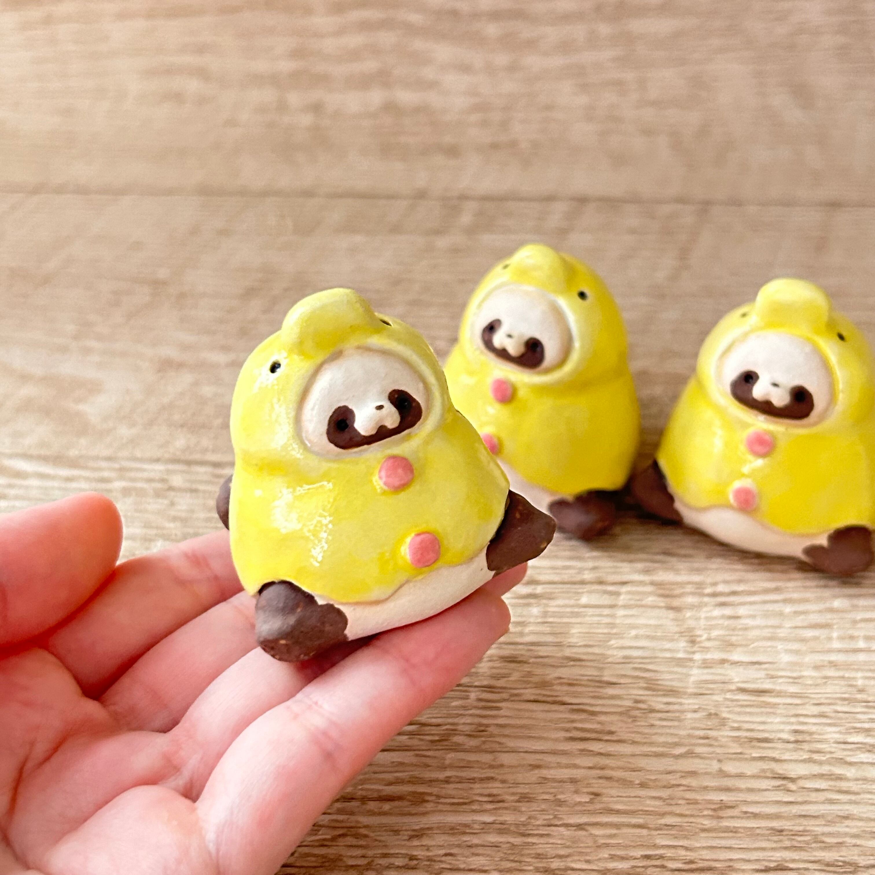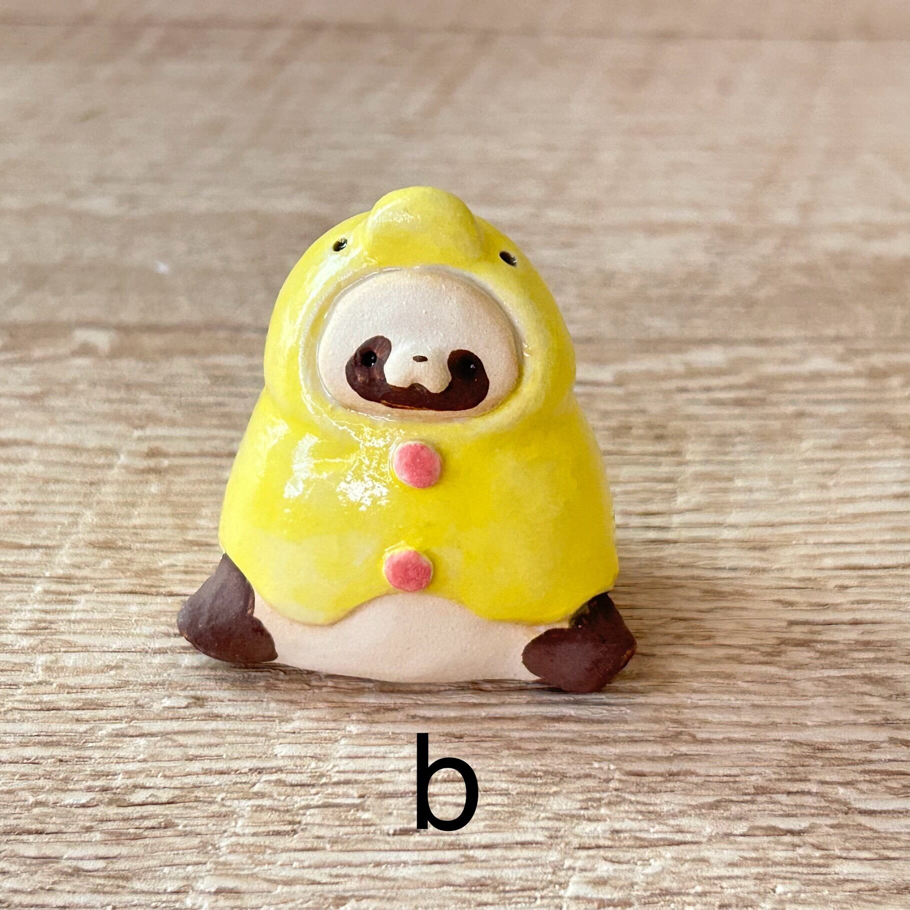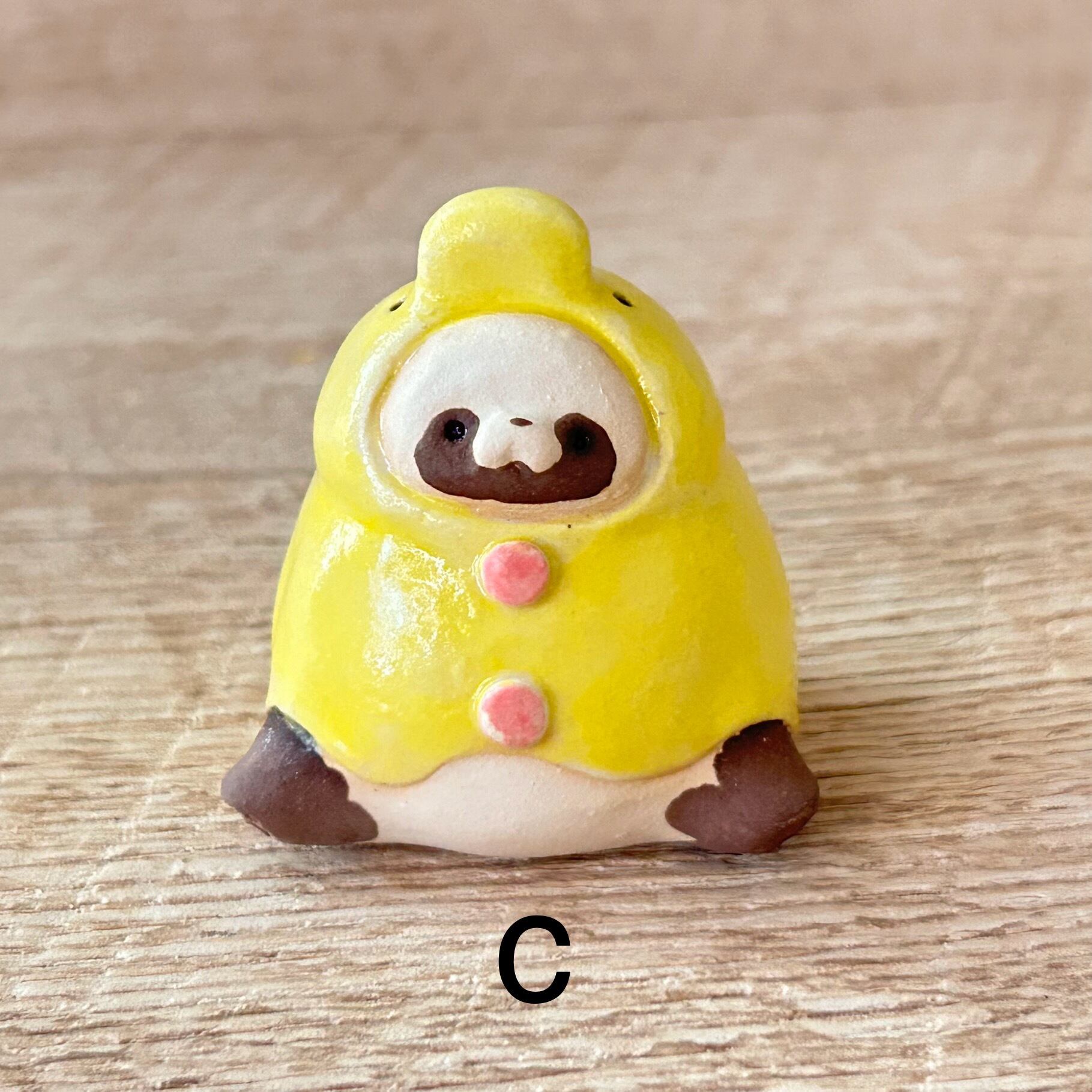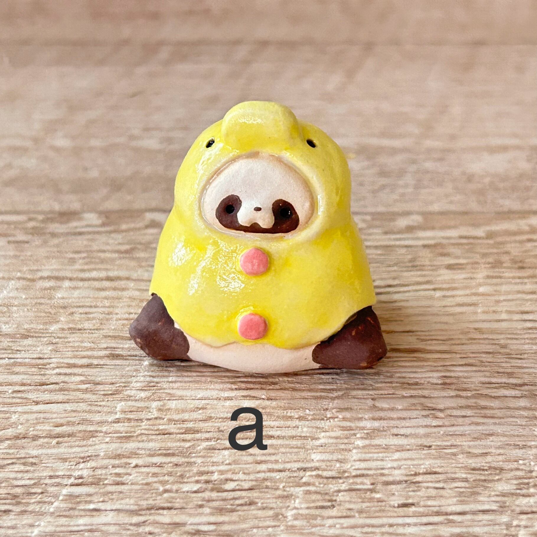 梅雨に向けてひよこのポンチョ風かっぱを手に入れた小さなたぬきです