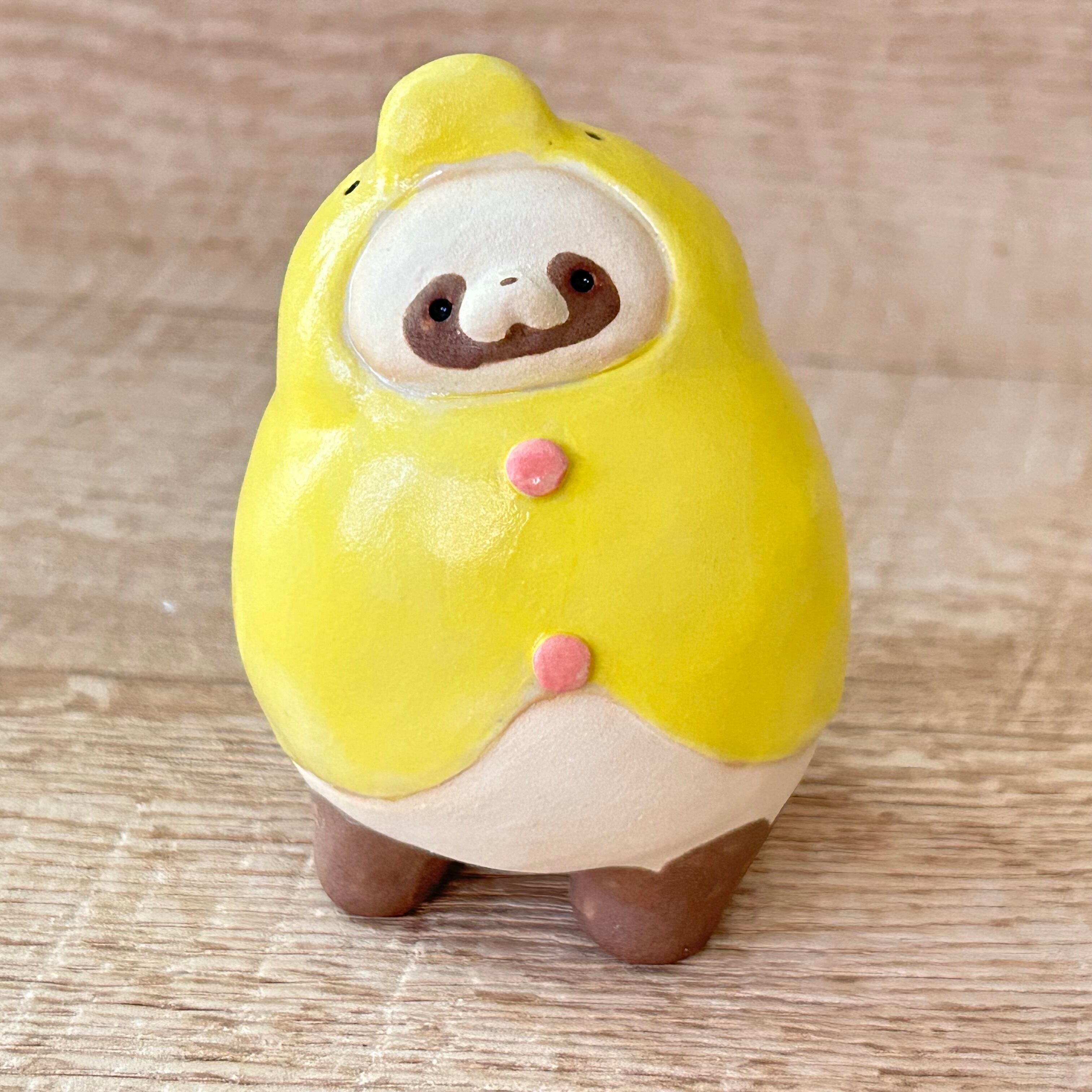 梅雨に向けてひよこのポンチョ風かっぱを手に入れた大きめたぬきです