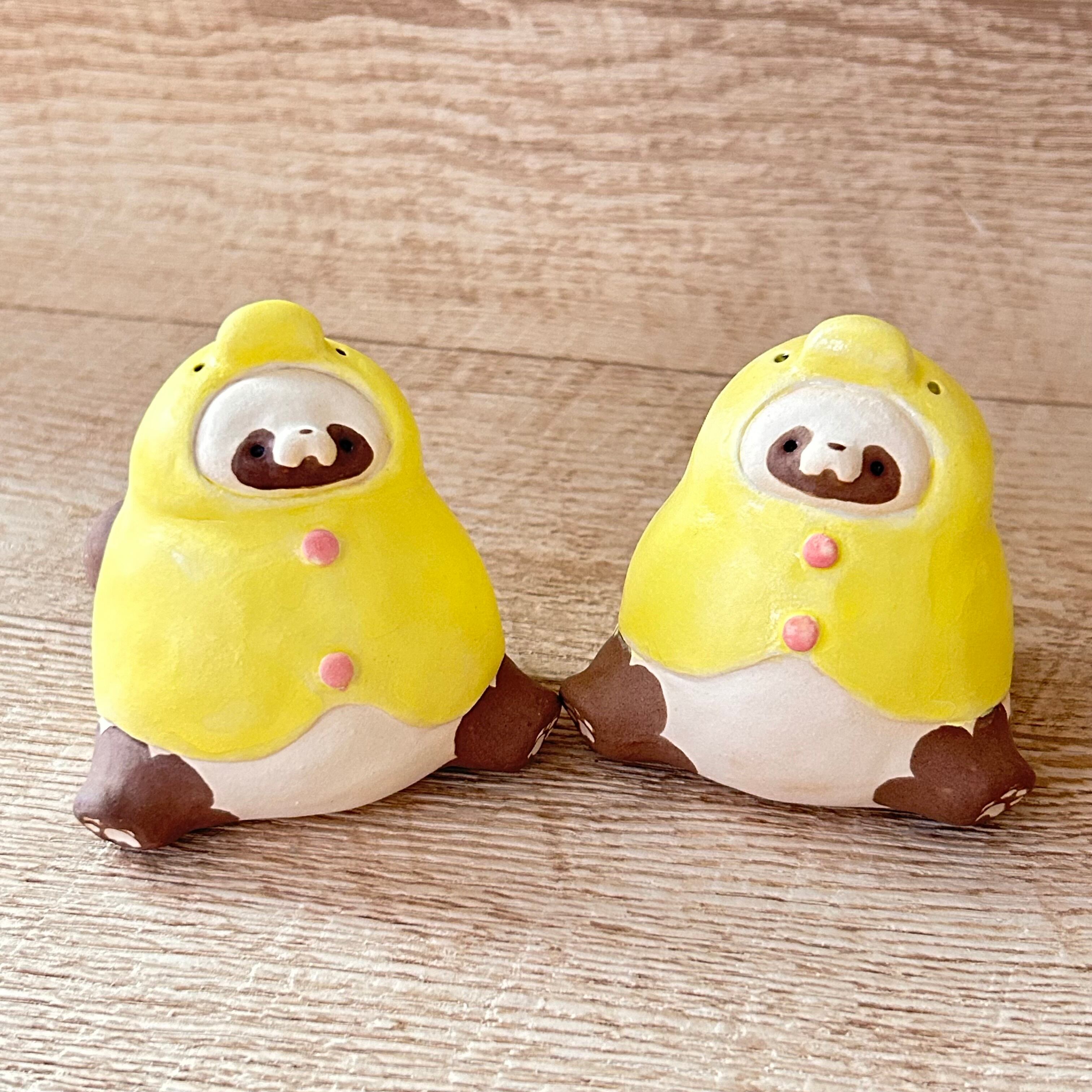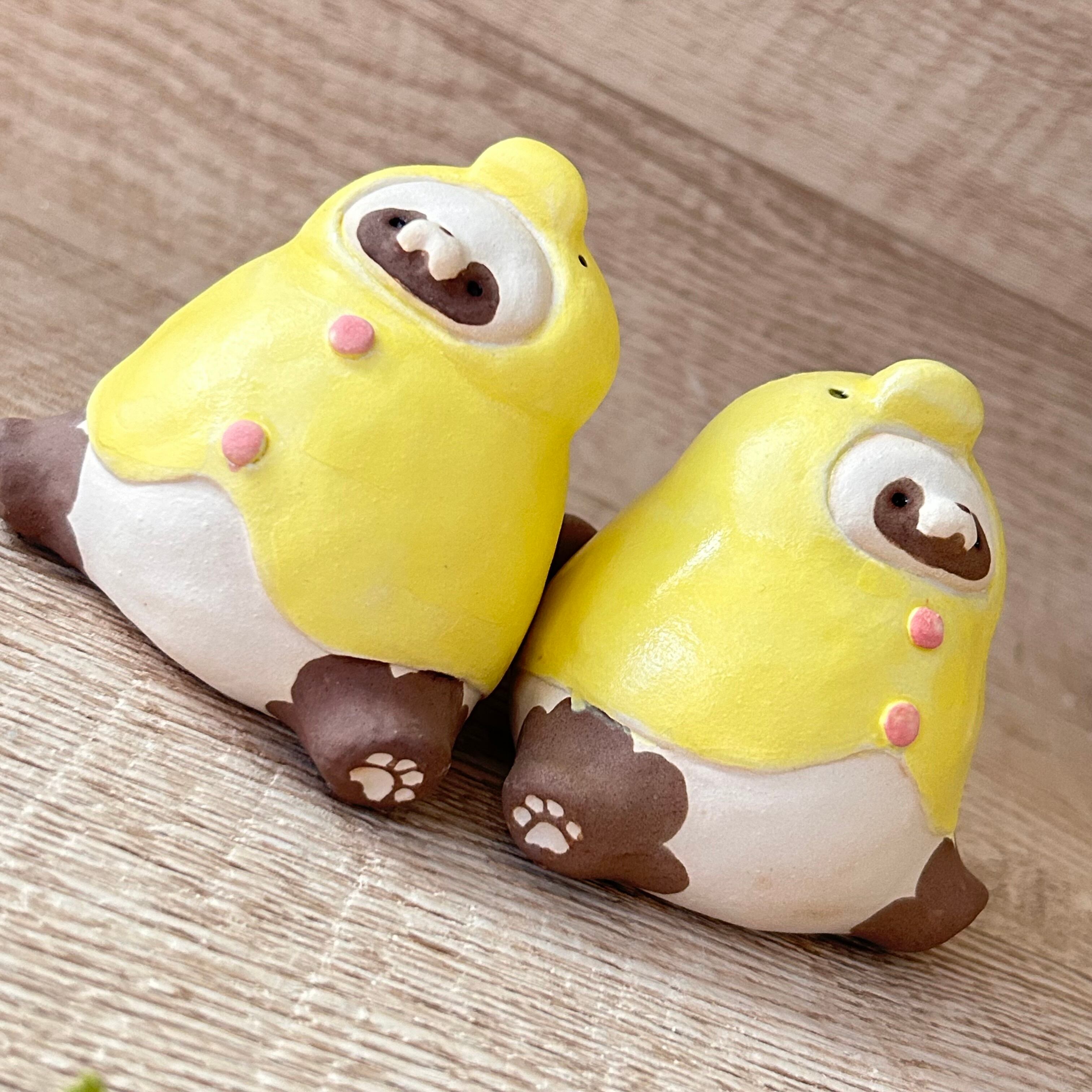 ひよこかっぱたぬきのおすわり置き物