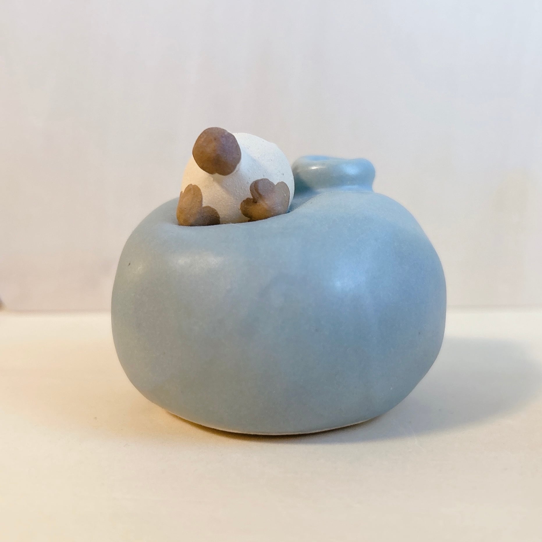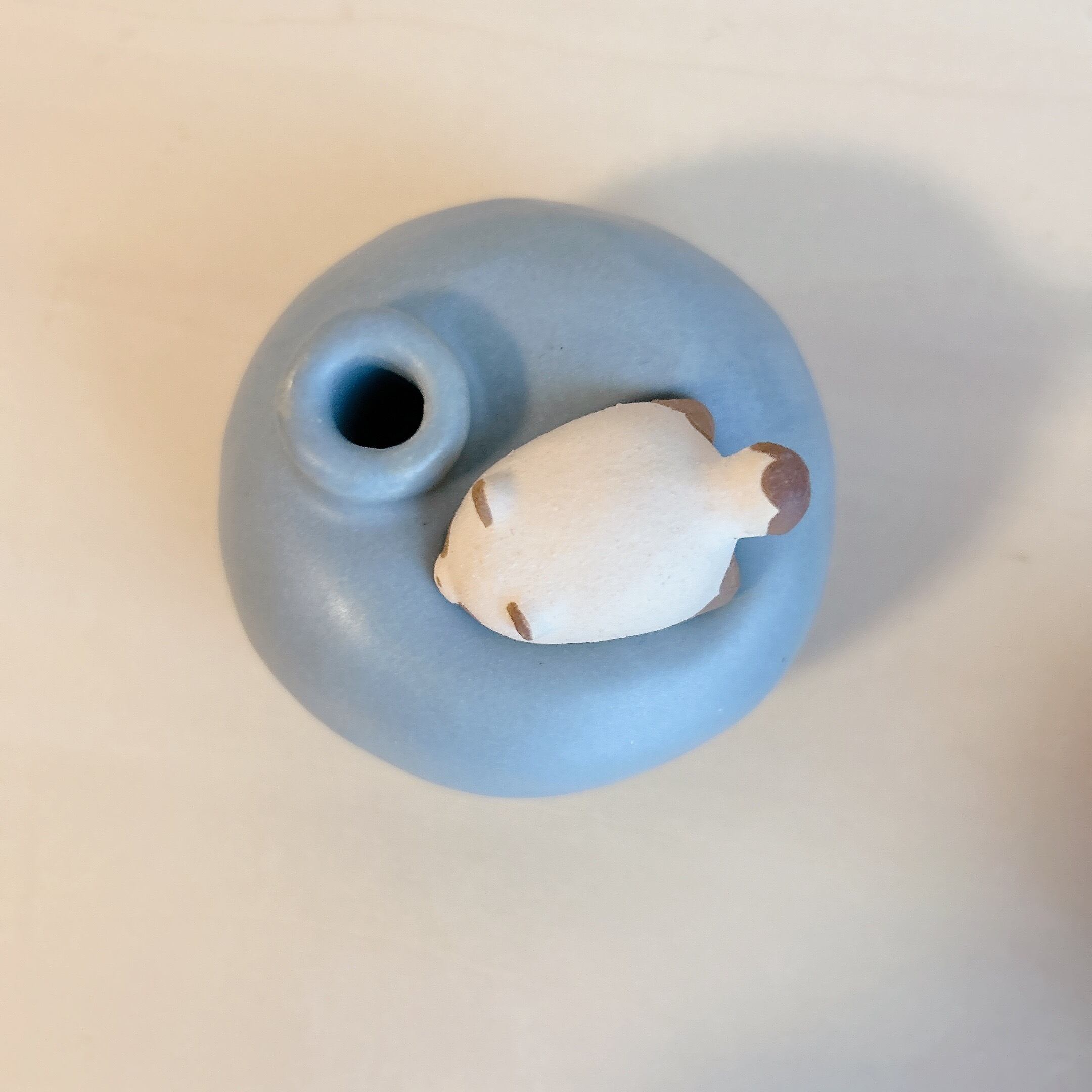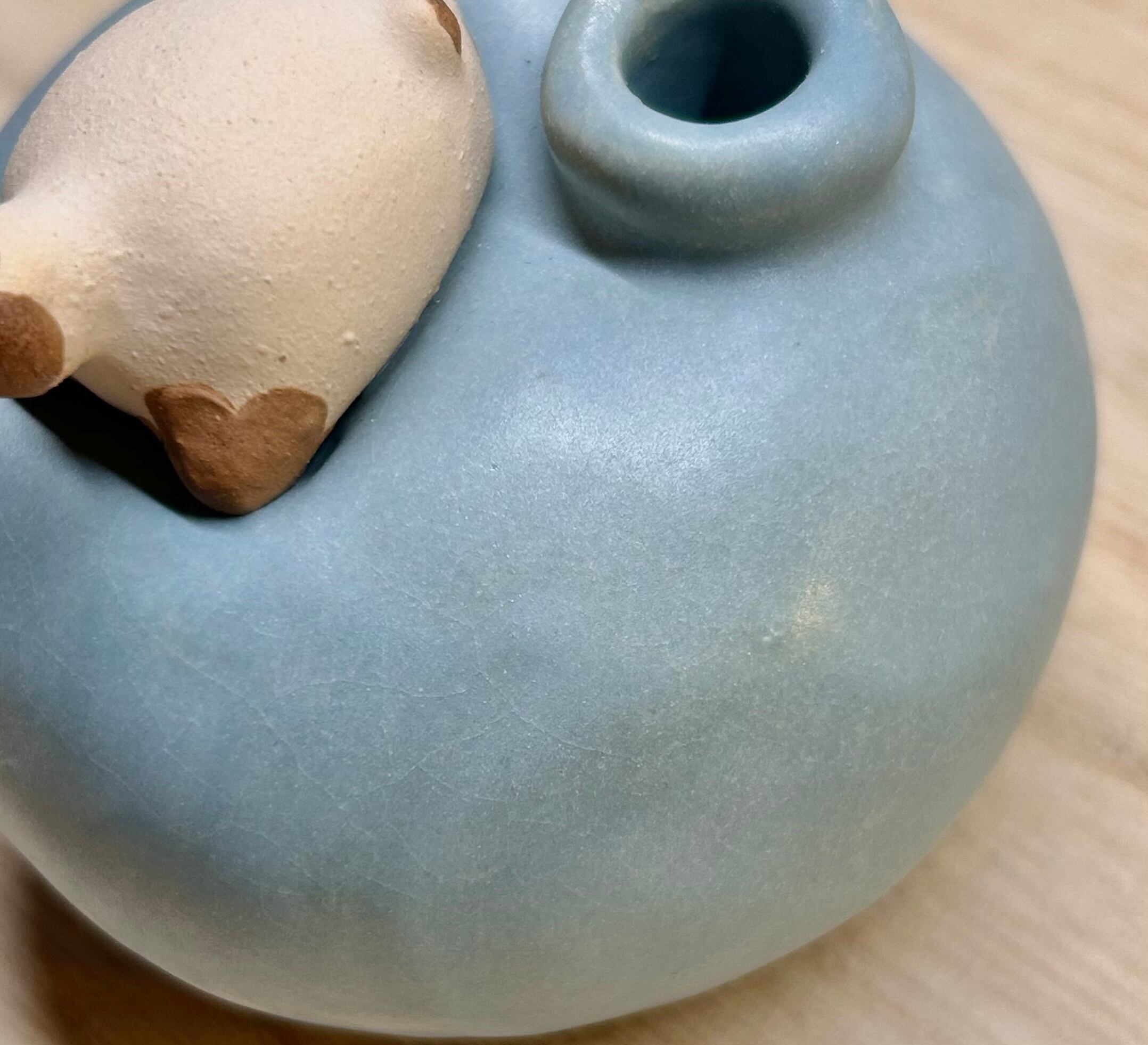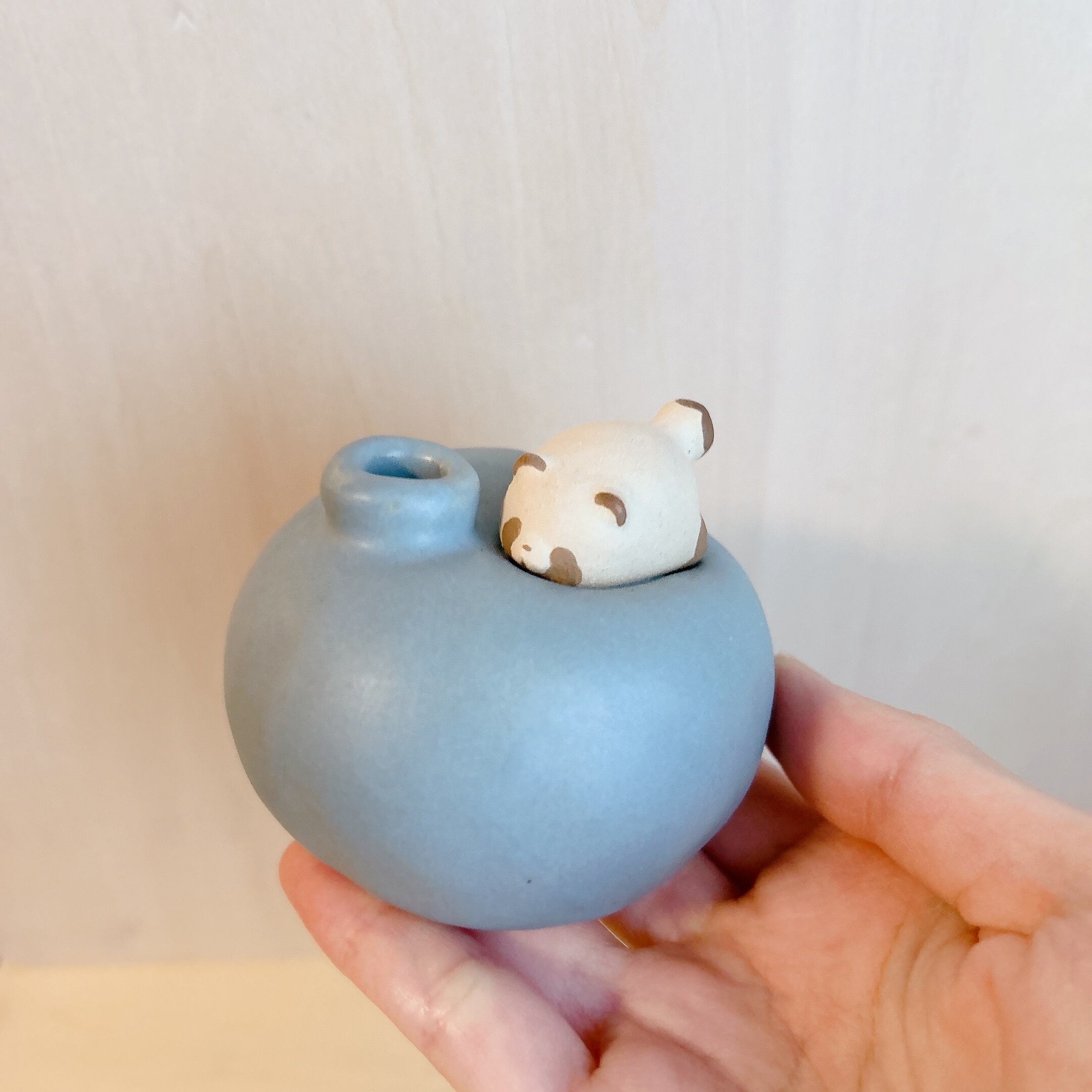 むにっとやわらかそうな花瓶でおやすみ中のたぬき