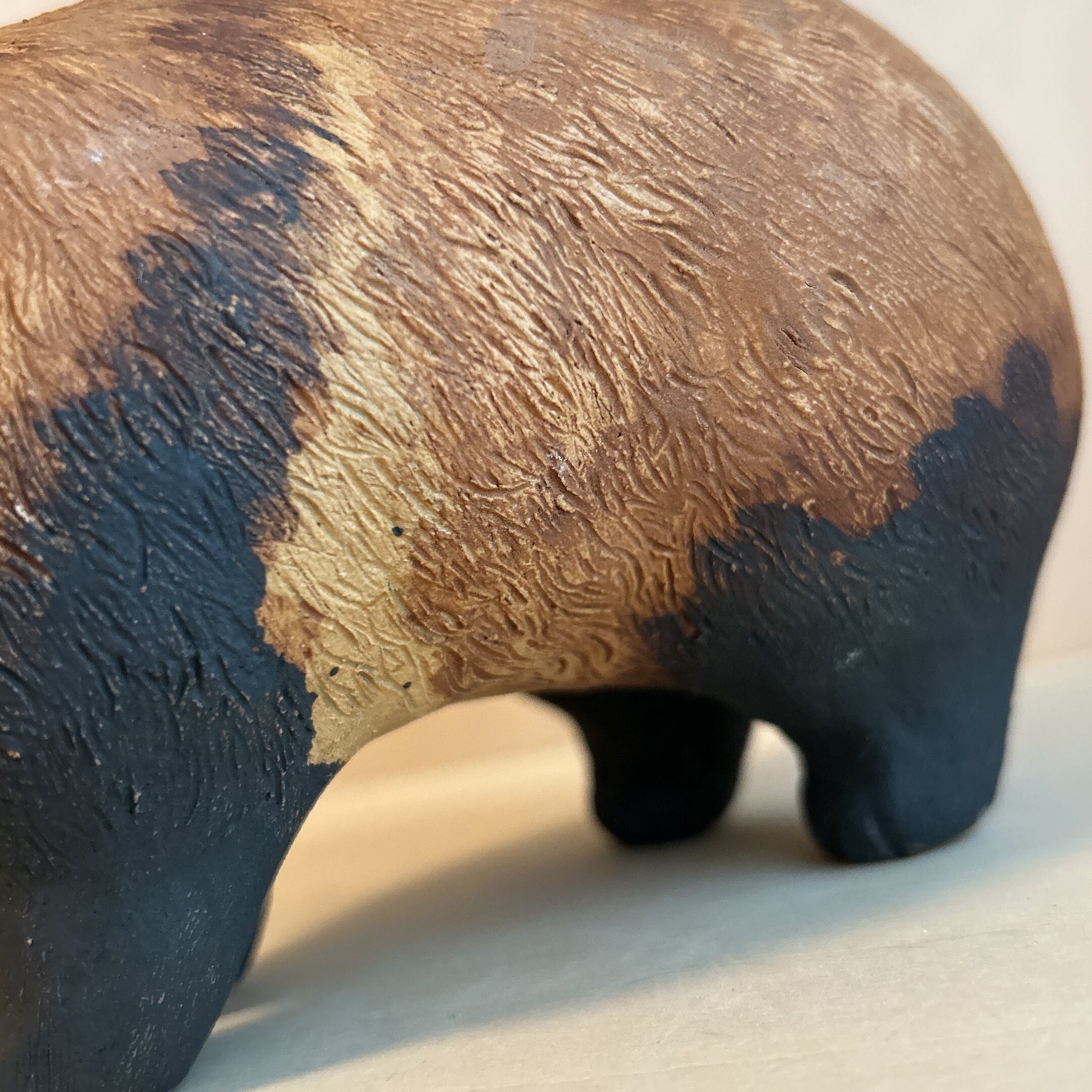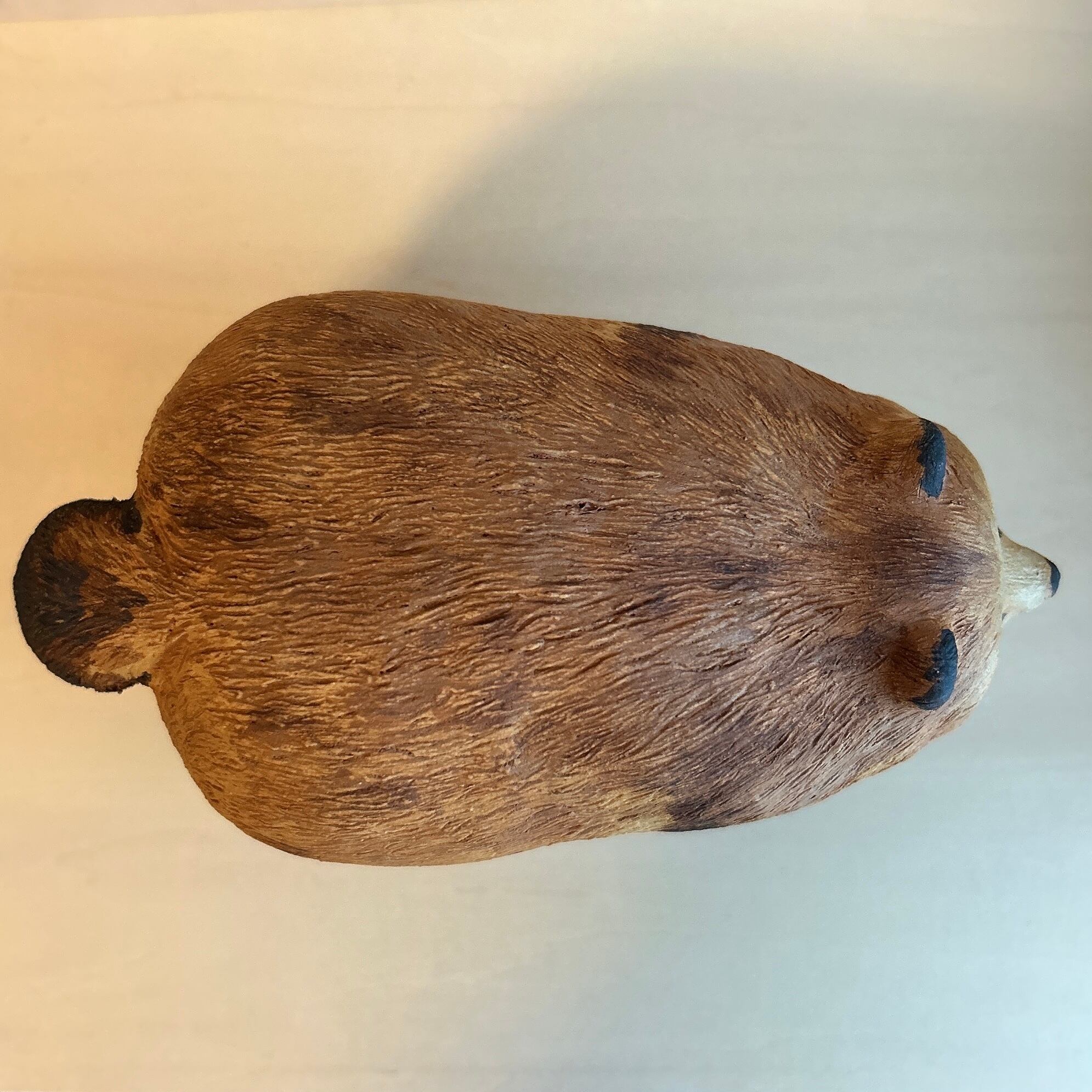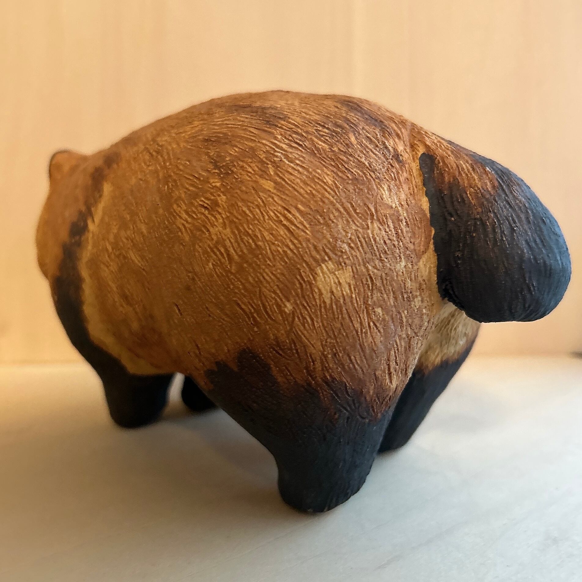 冬毛のたぬきがもすもす歩く姿の置き物です。