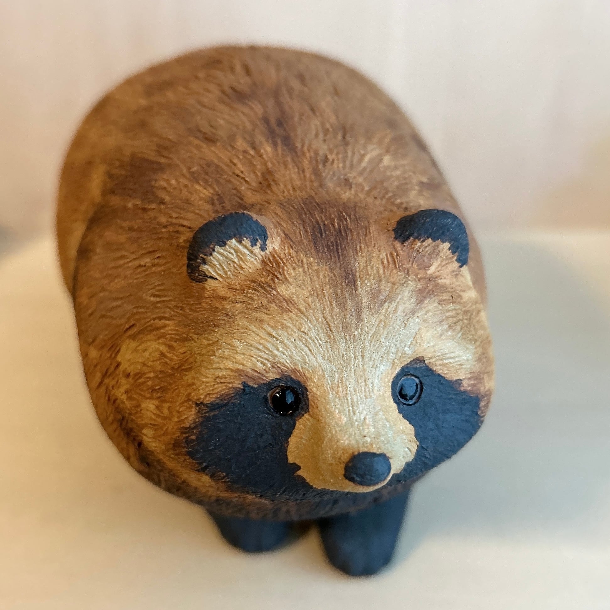 たぬきの特徴的で個性あふれる柄をできる限り再現して制作しました。